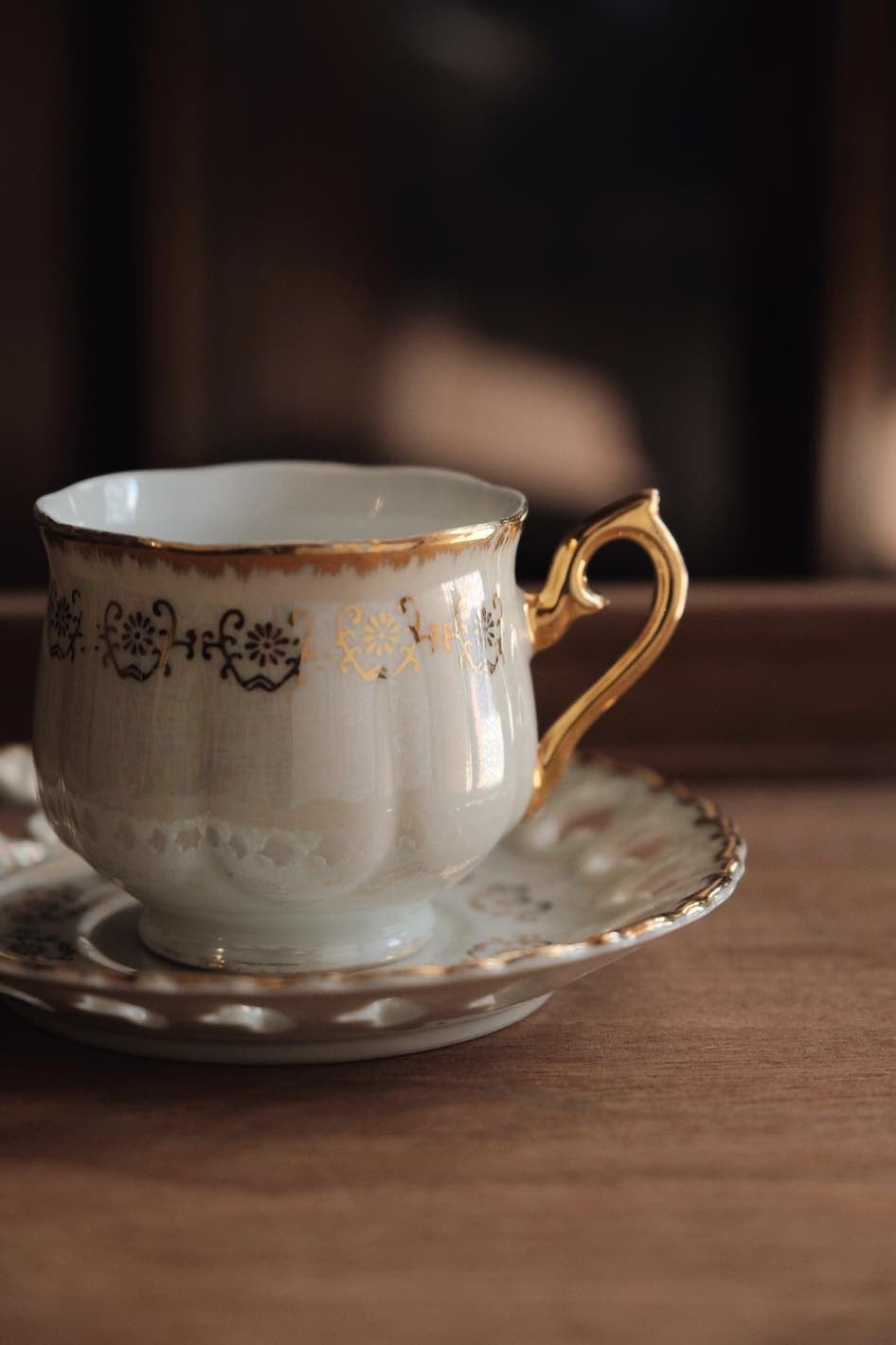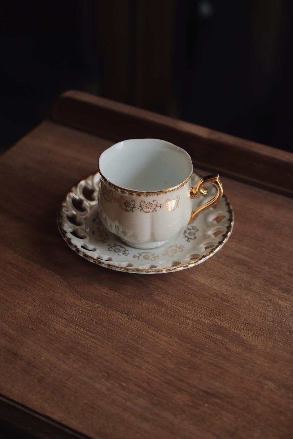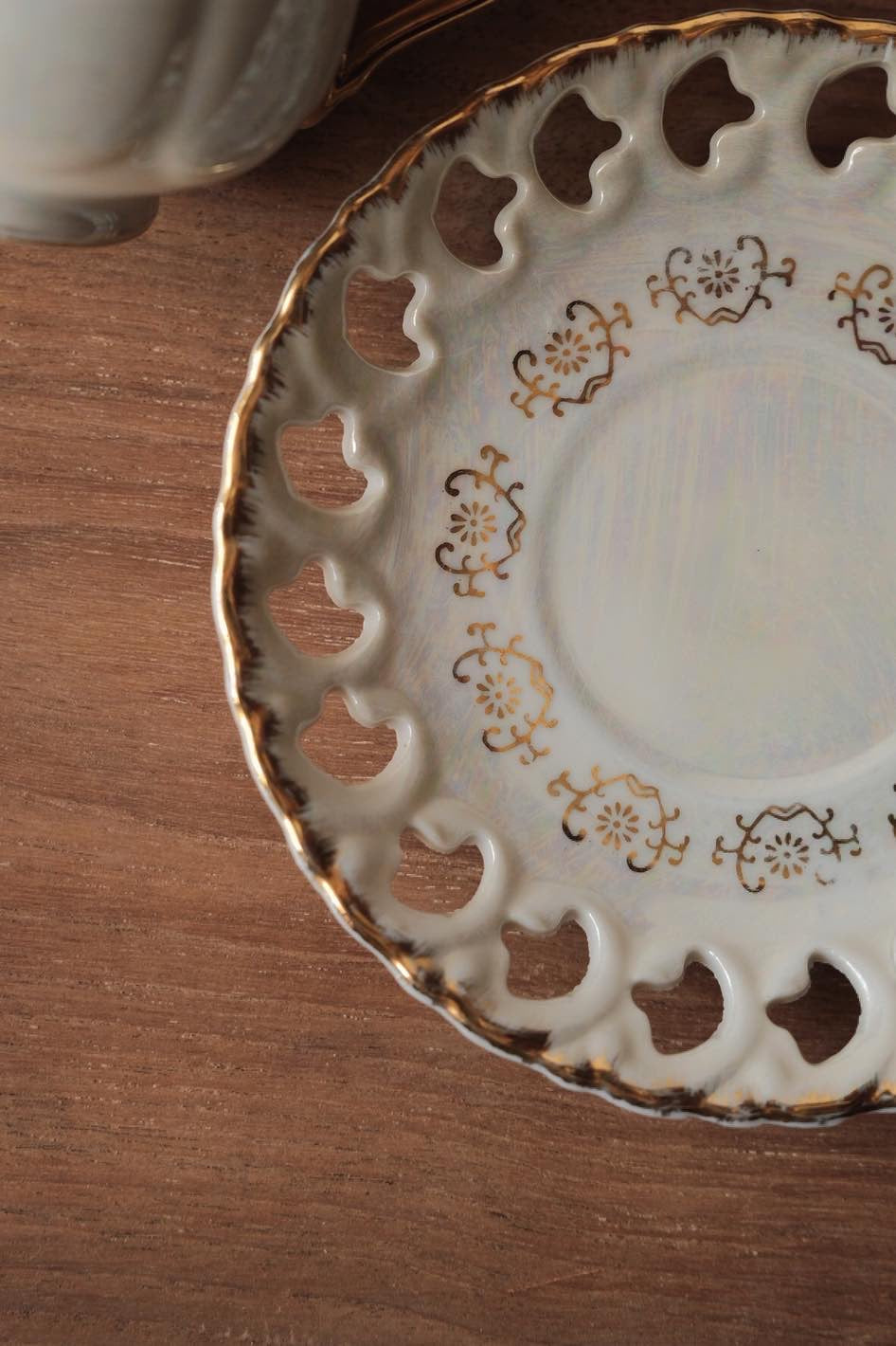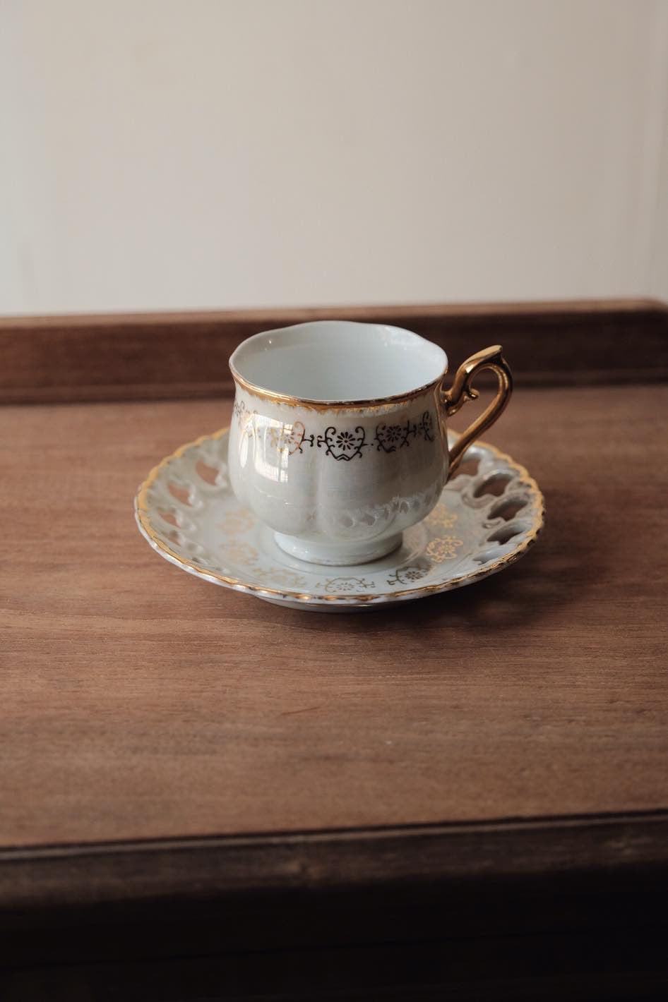 日本製·鏤空貝殼釉骨瓷描金咖啡杯
