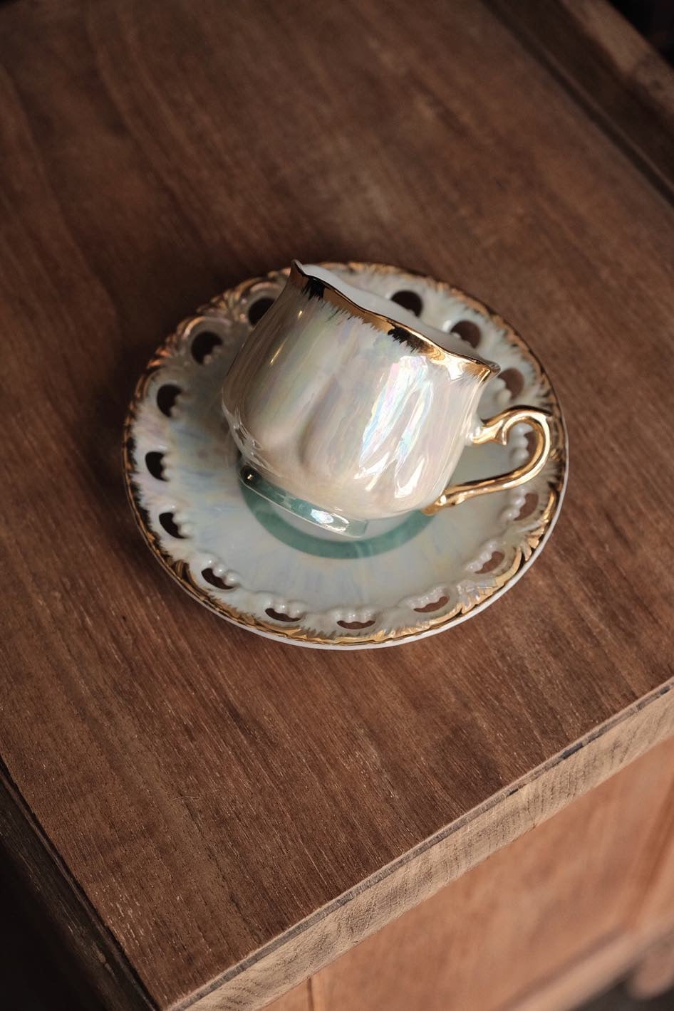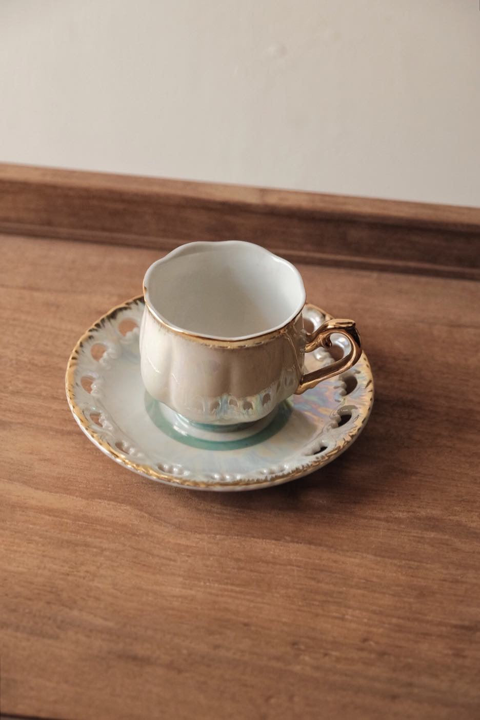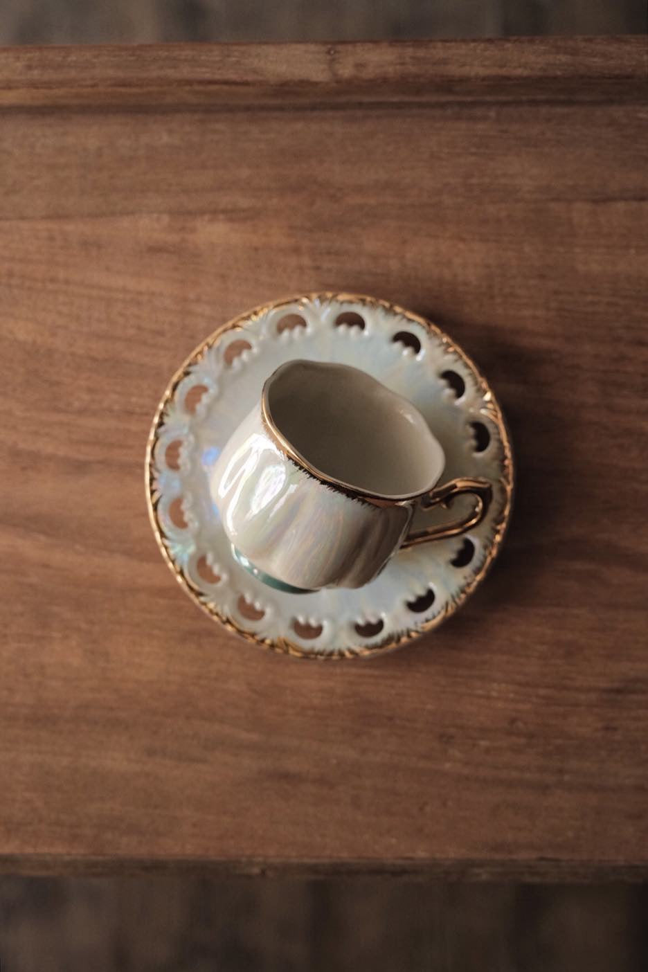 日本製·鏤空貝殼釉骨瓷描金咖啡杯