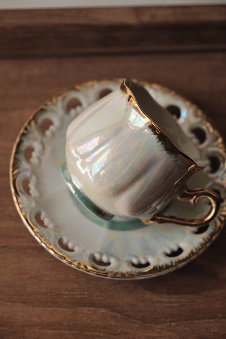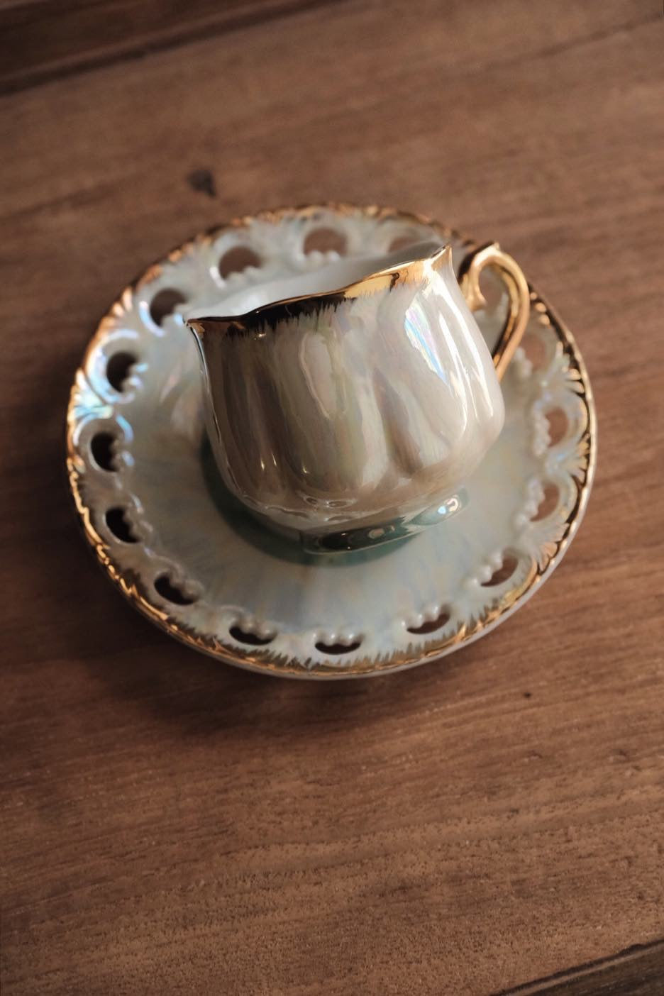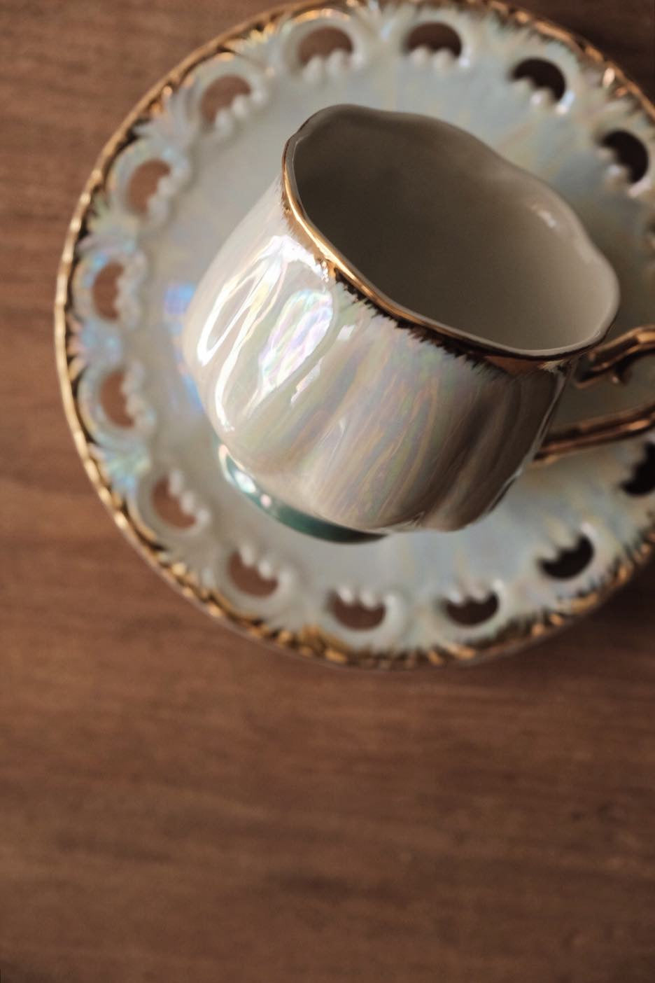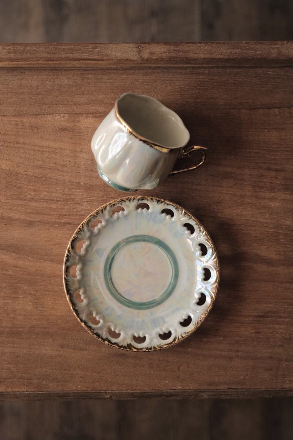 日本製·鏤空貝殼釉骨瓷描金咖啡杯