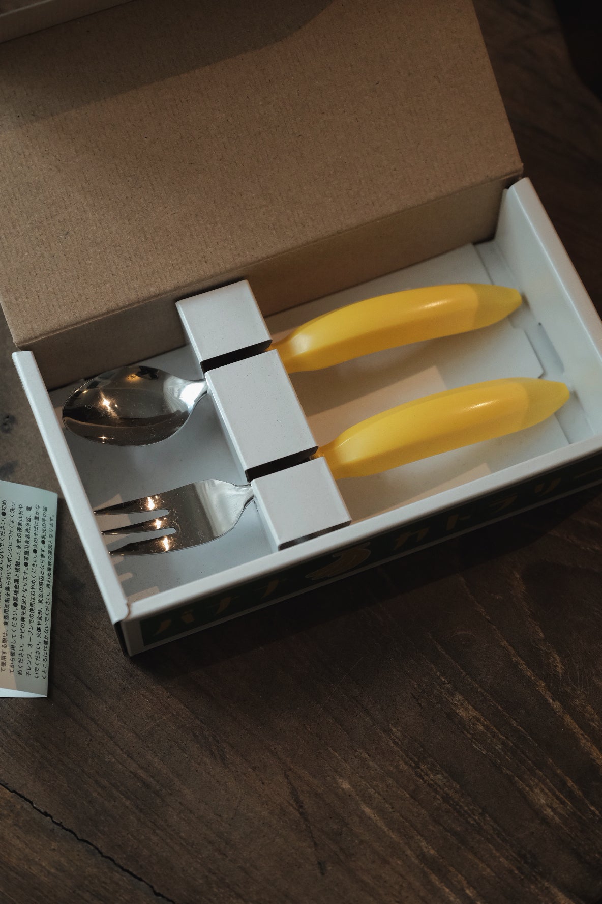 本次為大家推薦這款餐具套裝造型超級・吸睛!! 就連包裝設計也極具玩味,模仿著物流用的香蕉包裝盒子