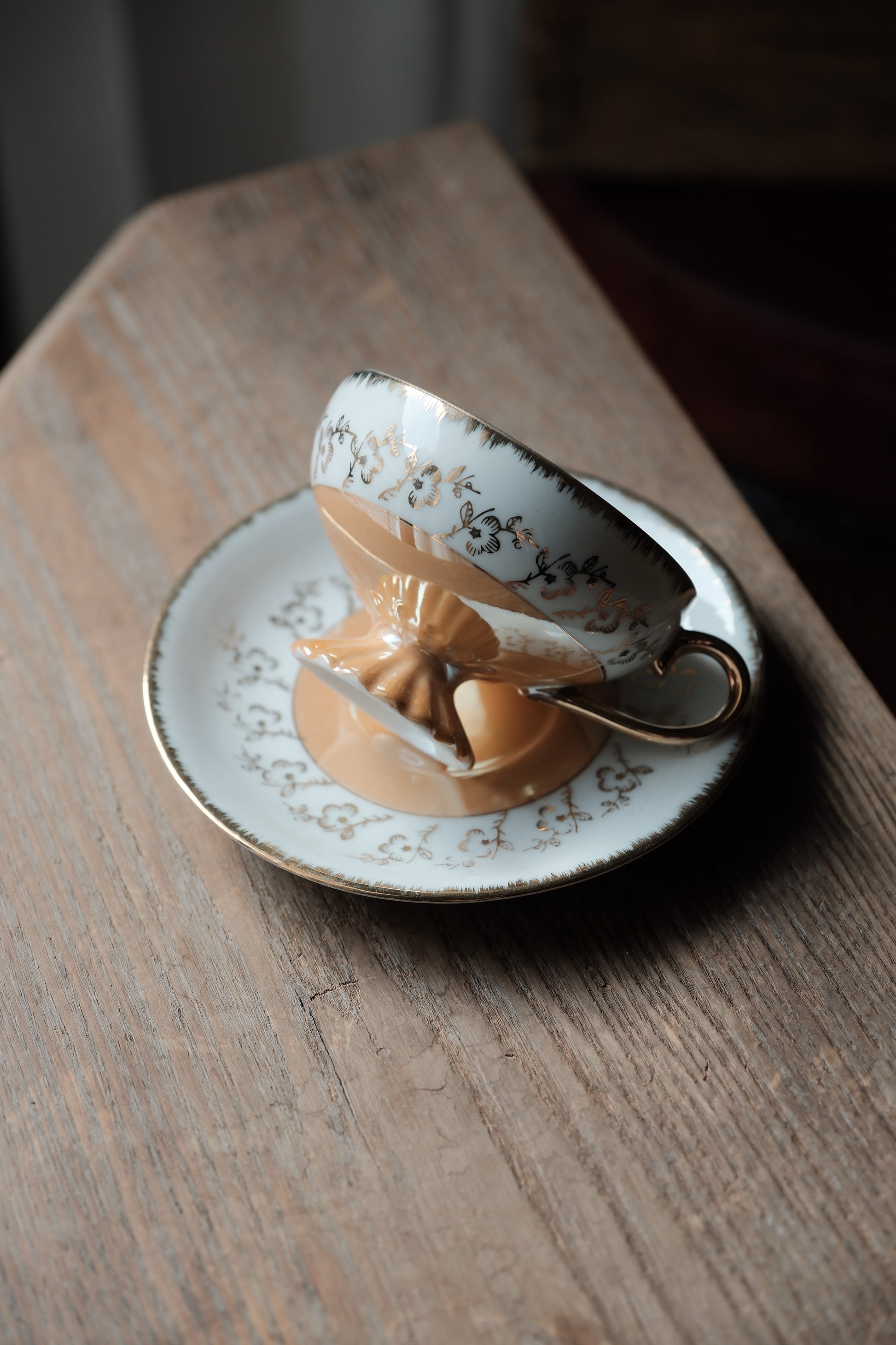 咖啡杯把手套有精緻描金,洋溢著優雅美感,