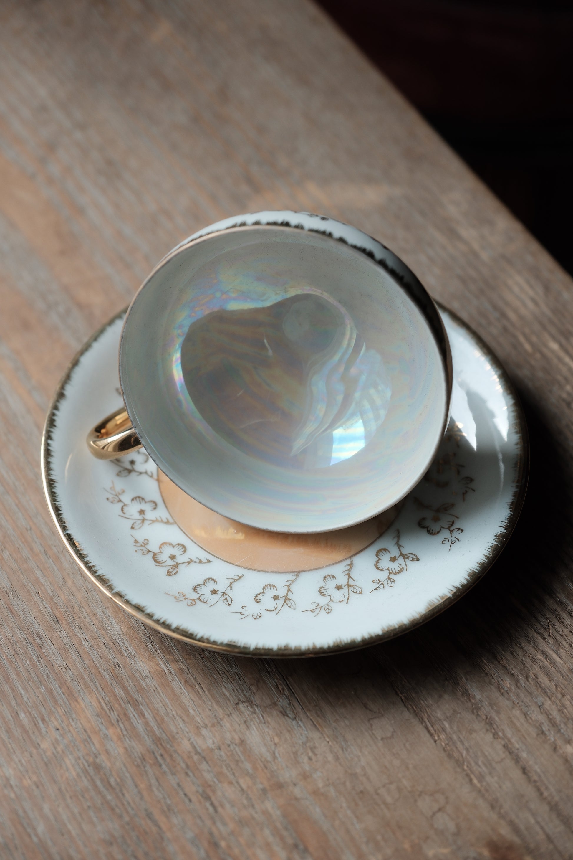 日本製·高足貝殼釉描金花卉茶杯(200ml)