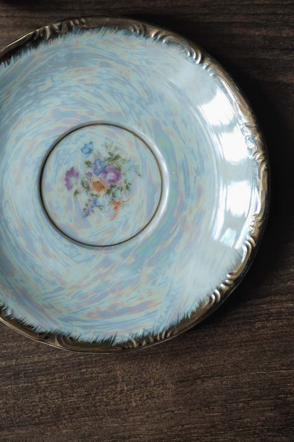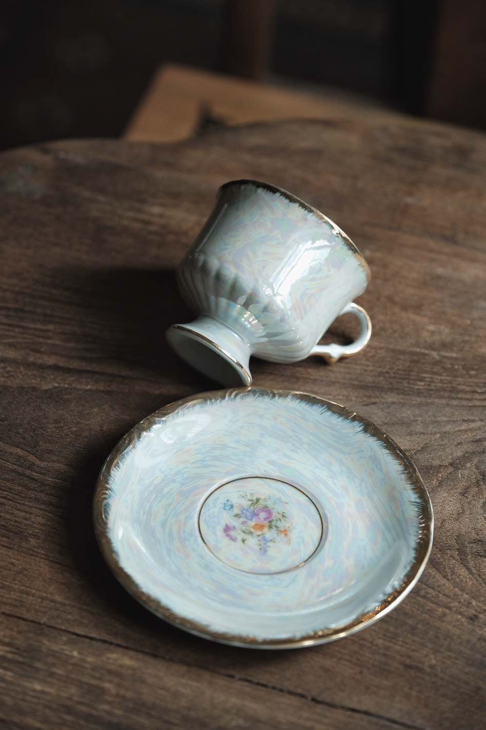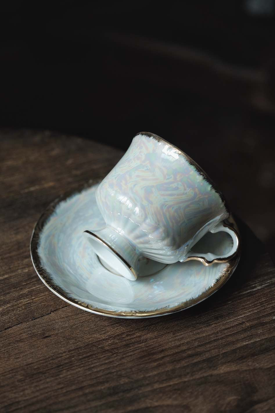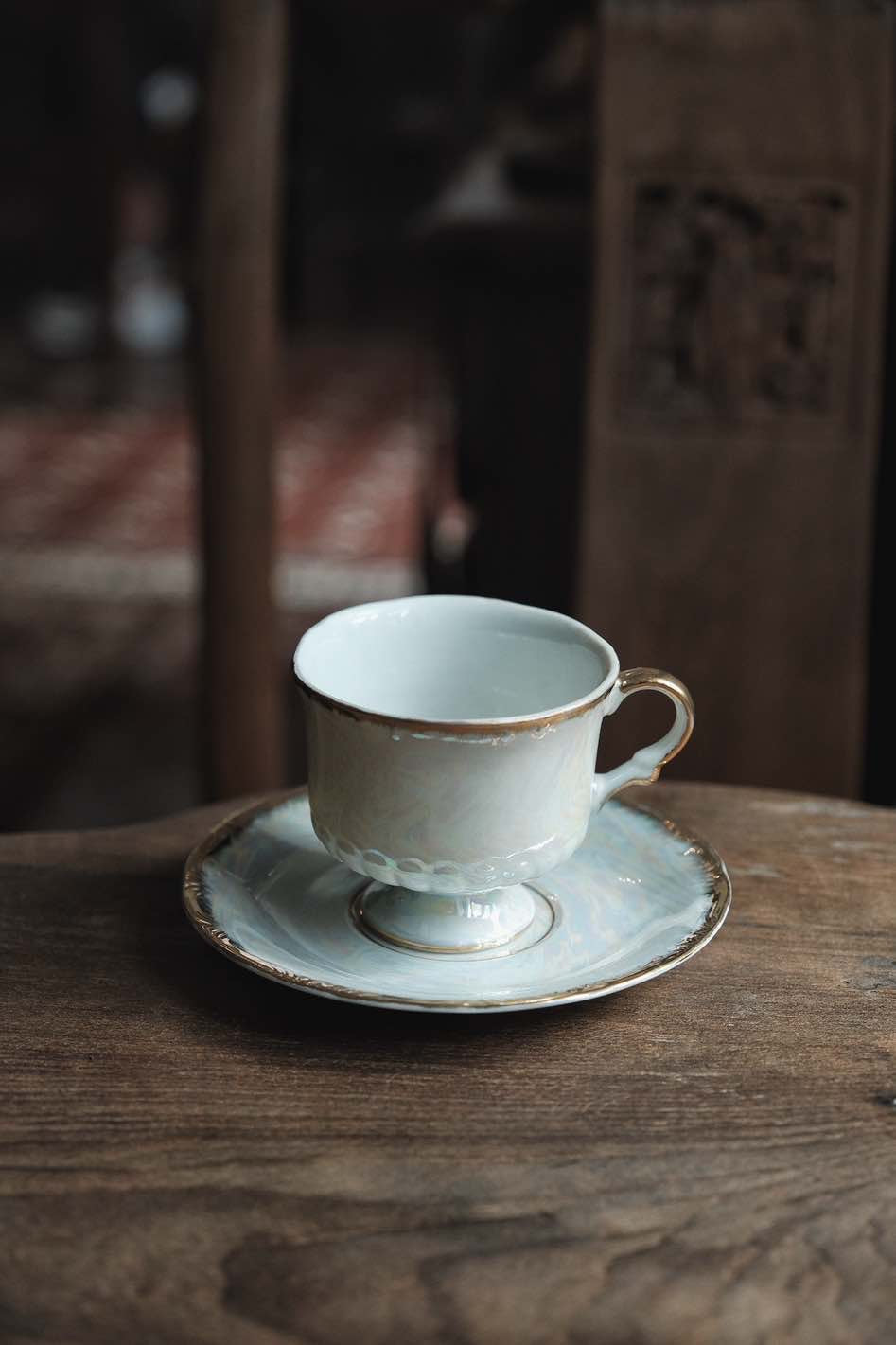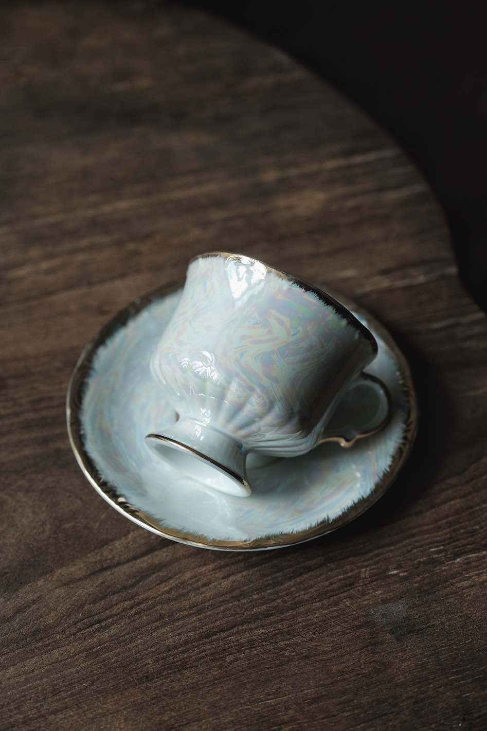 日本製·高足貝殼釉浮雕描金杯連碟(200ml)