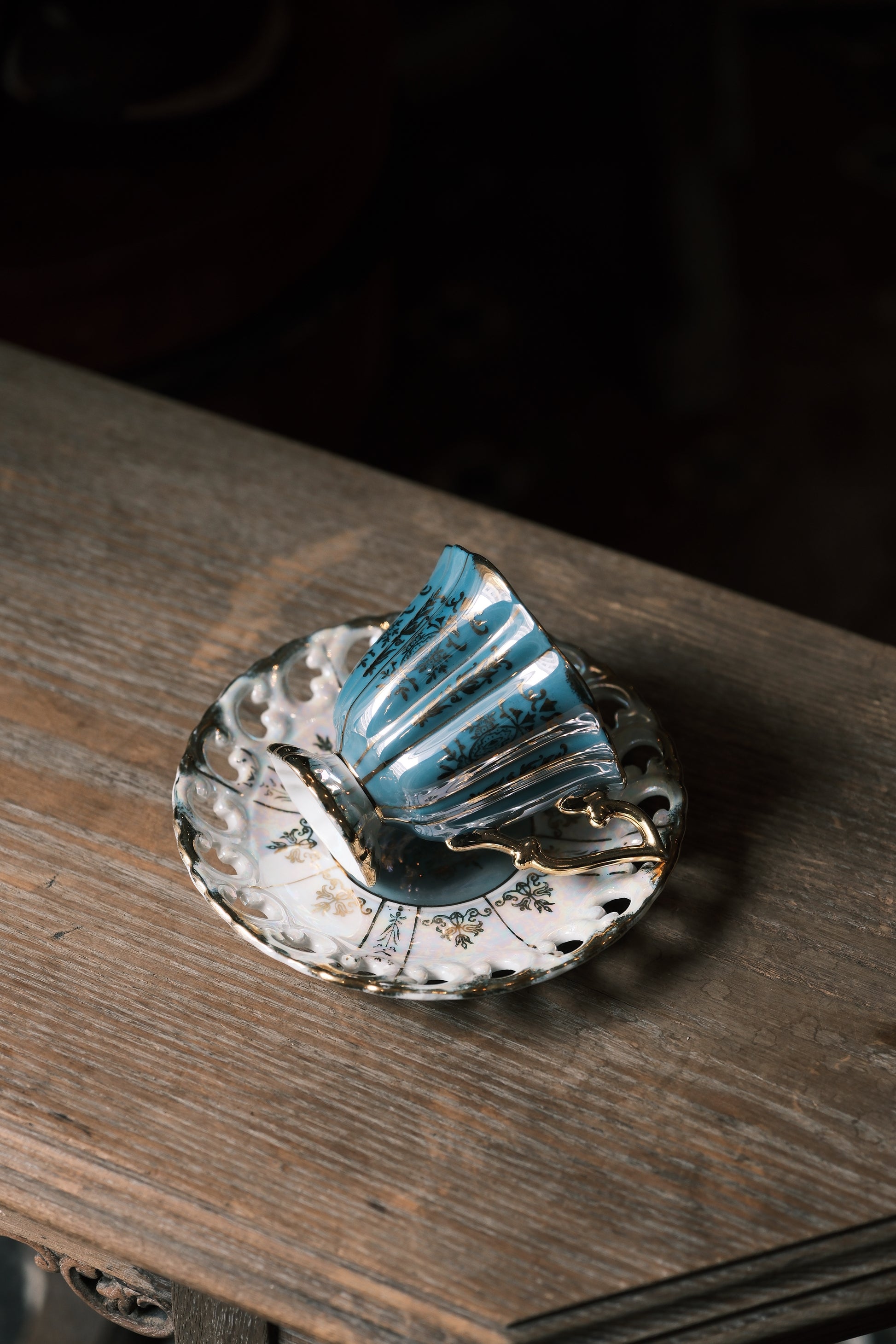 咖啡杯把手套有精緻描金,浮雕圖紋立體