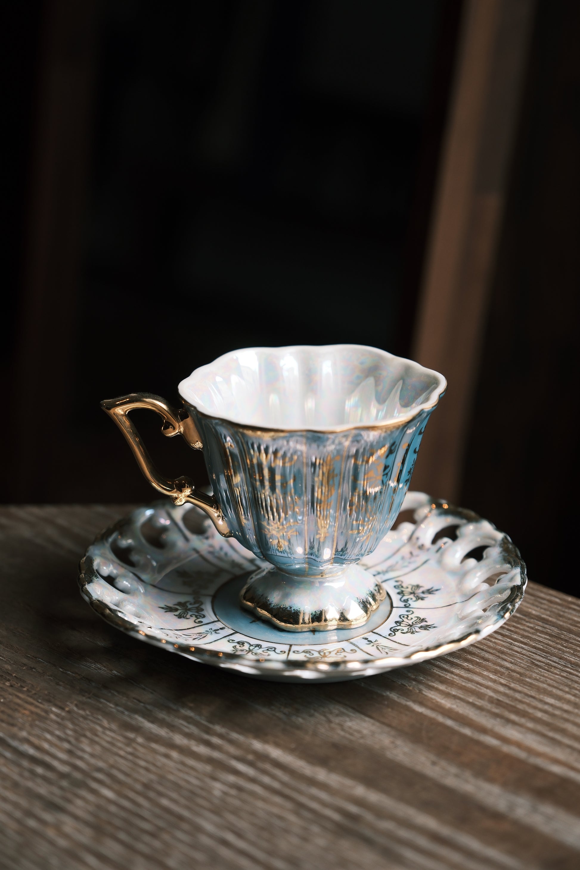 高足杯身花茶擴香,立體杯身法式宮廷風格,可用作收藏,喜歡不要錯過