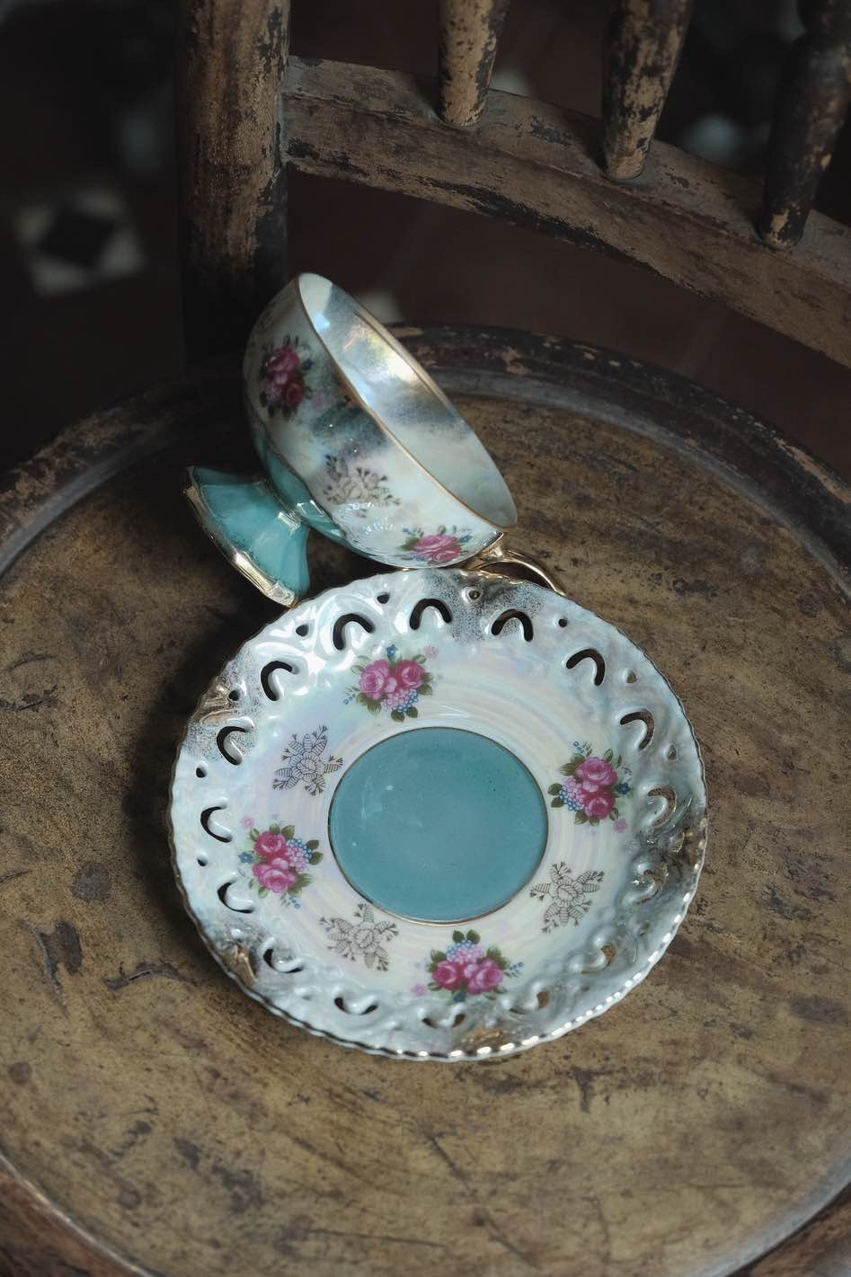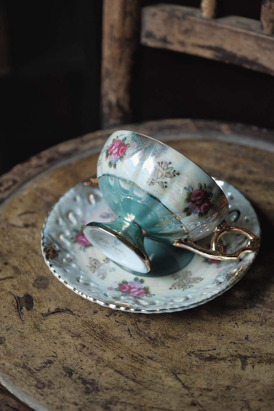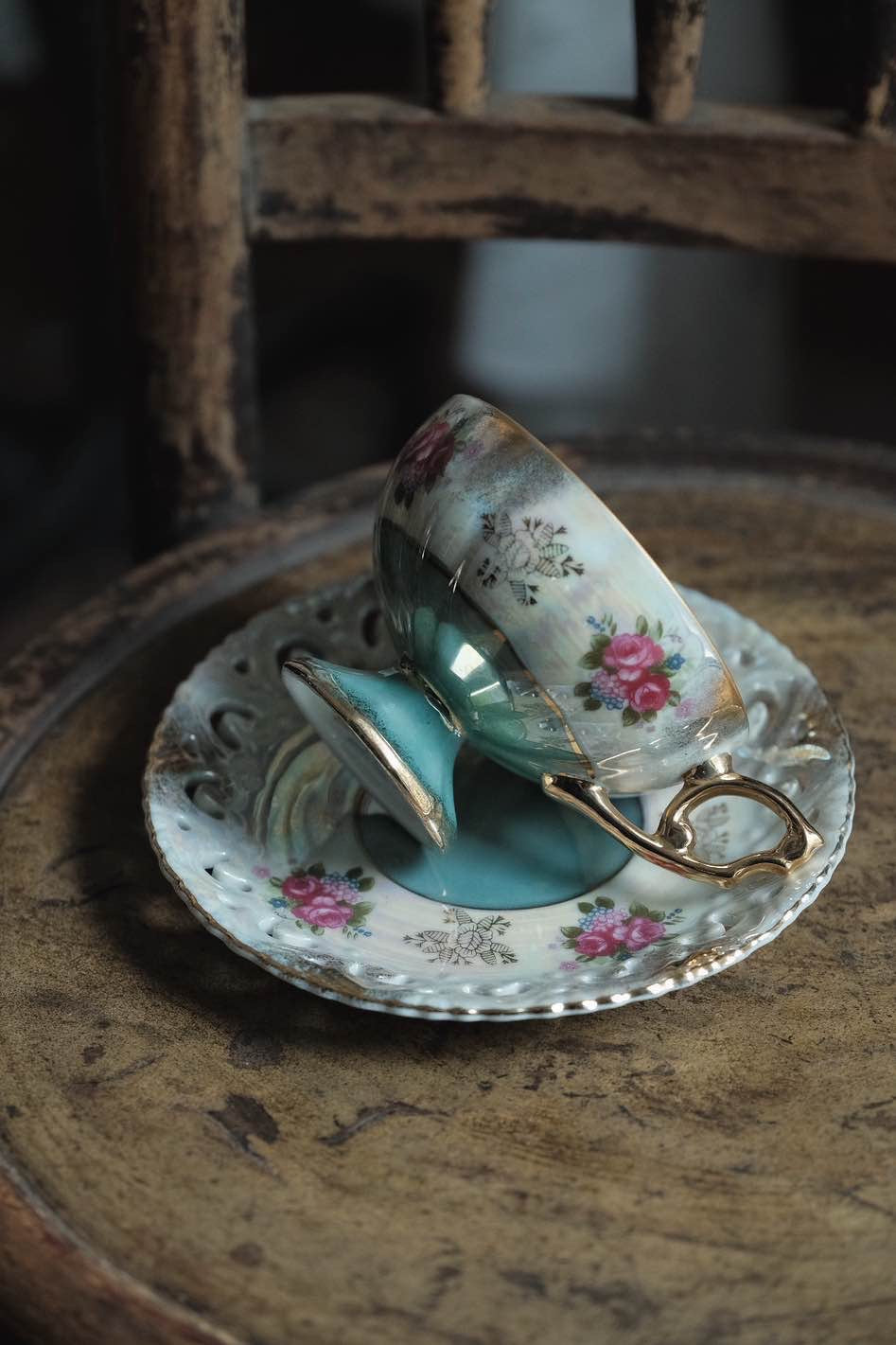 較少有的版本,高足矮型杯身花茶擴香,杯內也有花卉圖,立體杯身法式宮廷風格,可用作收藏,喜歡不要錯過