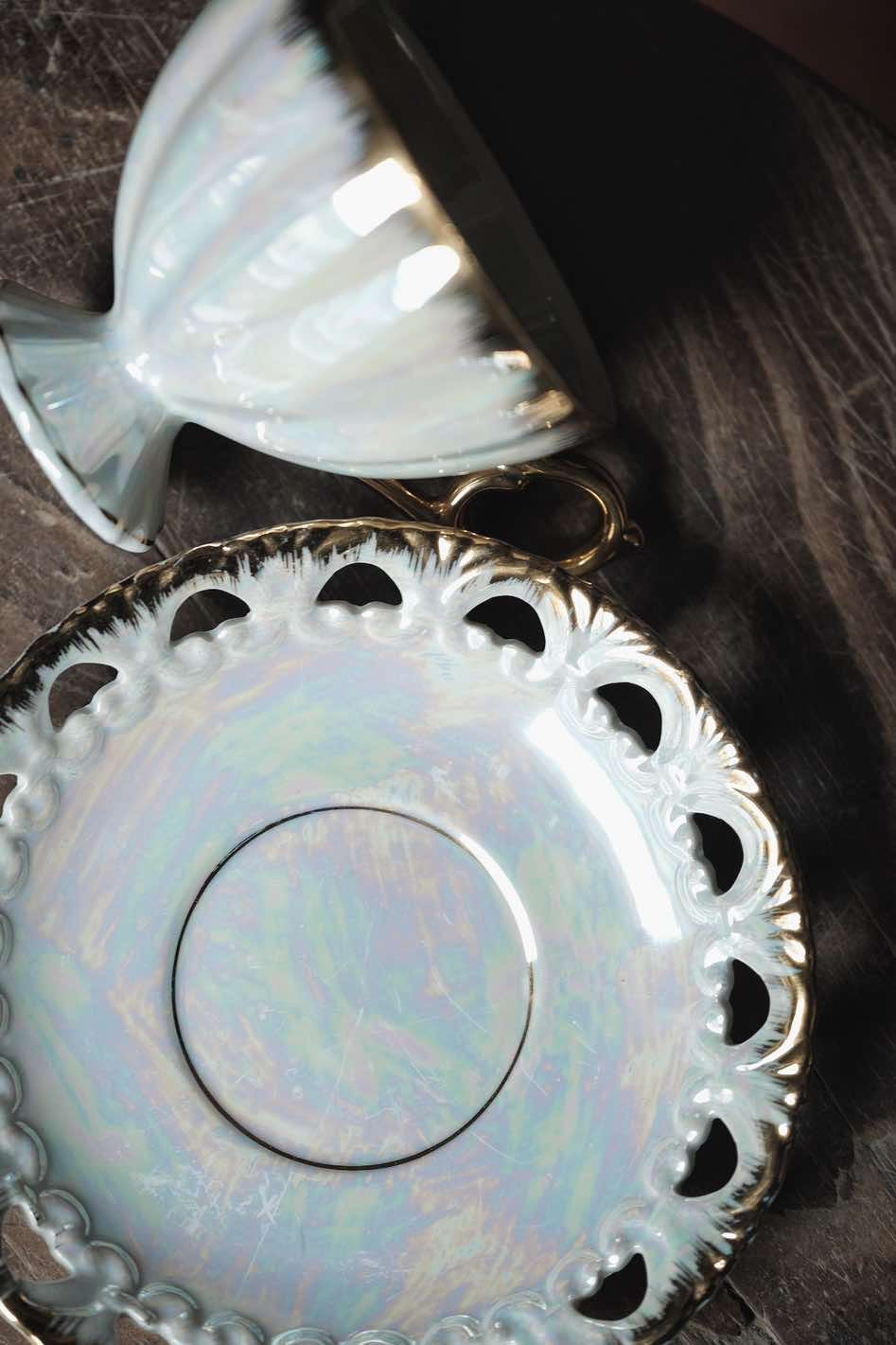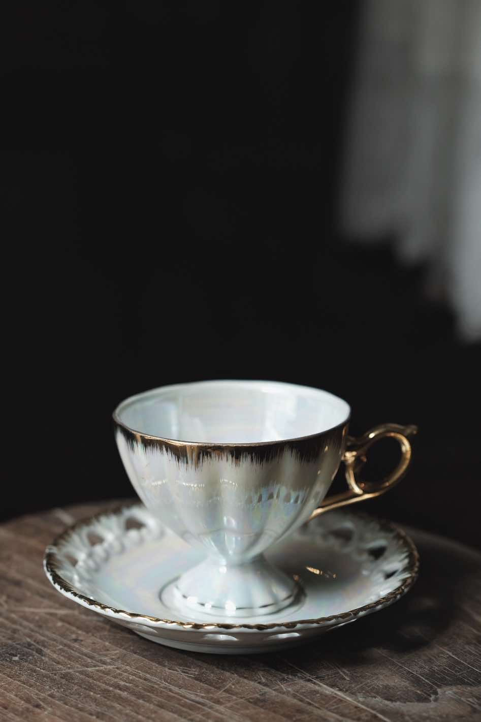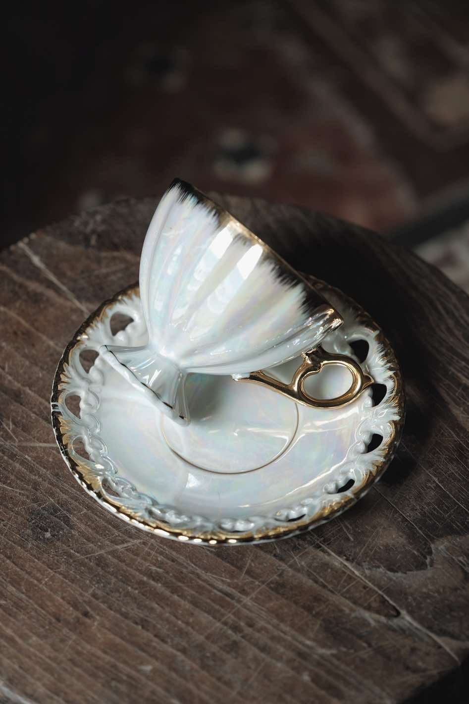 日本製·高足貝殼釉浮雕描金花茶紅茶杯(160ml)