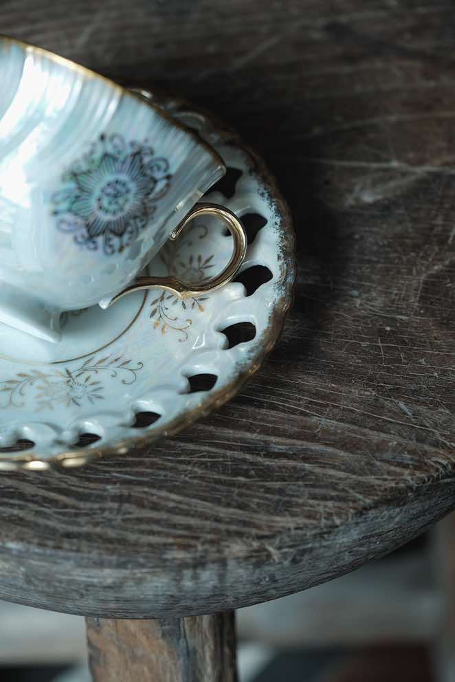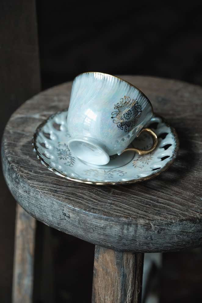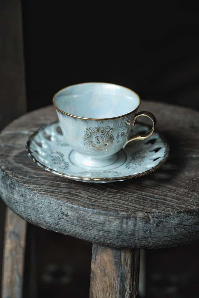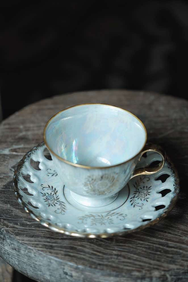 日本製·高足貝殼釉浮雕描金花茶紅茶杯(180ml)