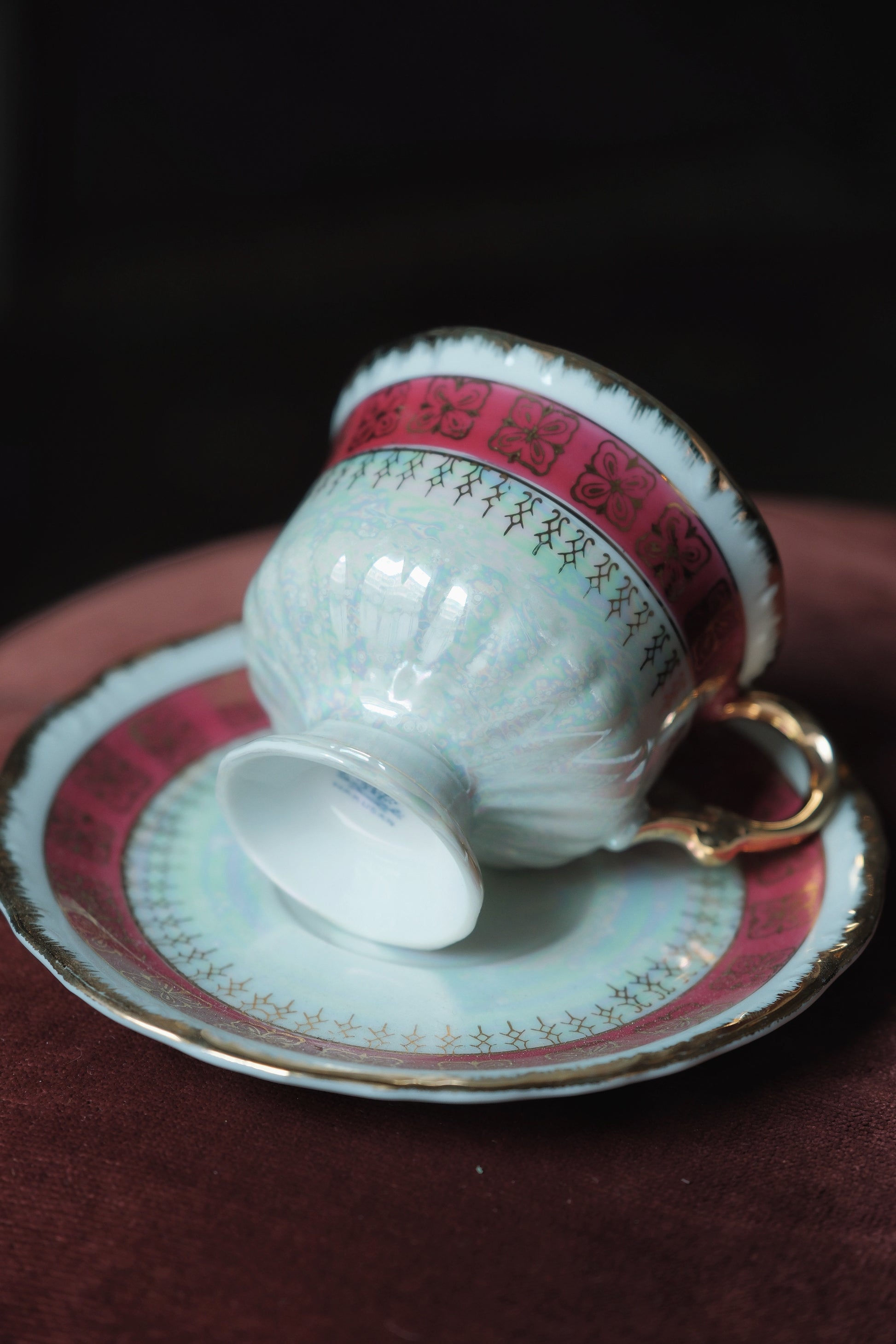 日本製·高足貝殼釉花卉茶杯(200ml)
