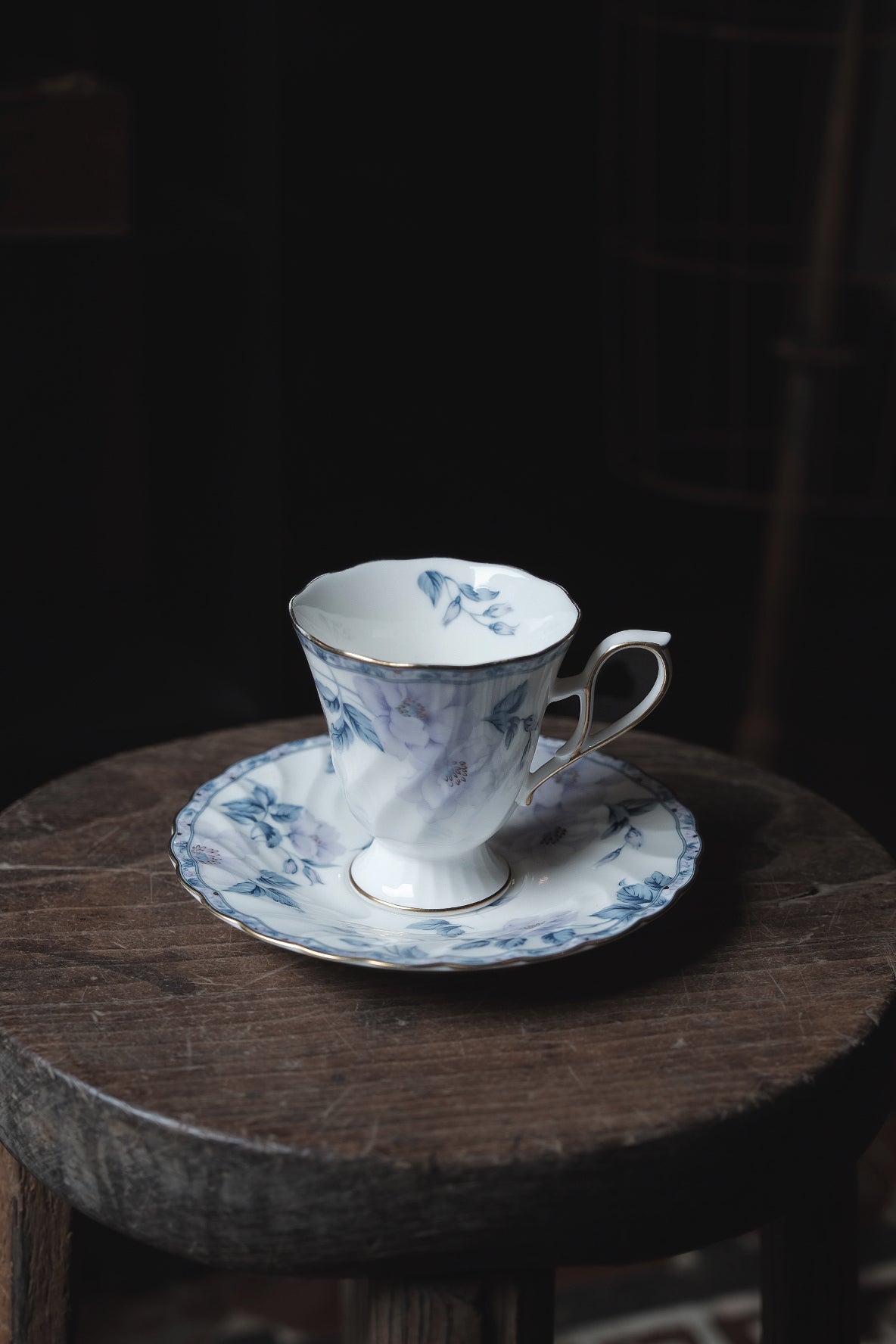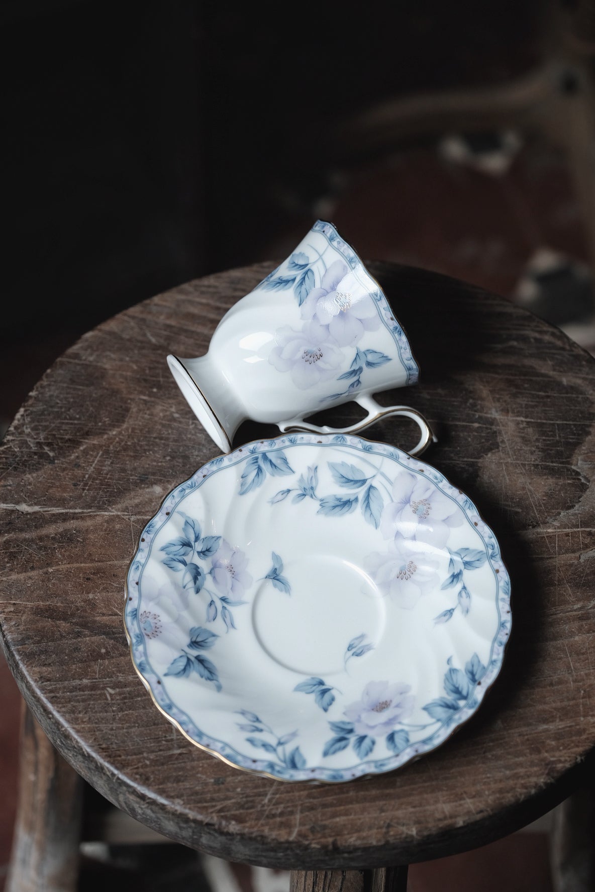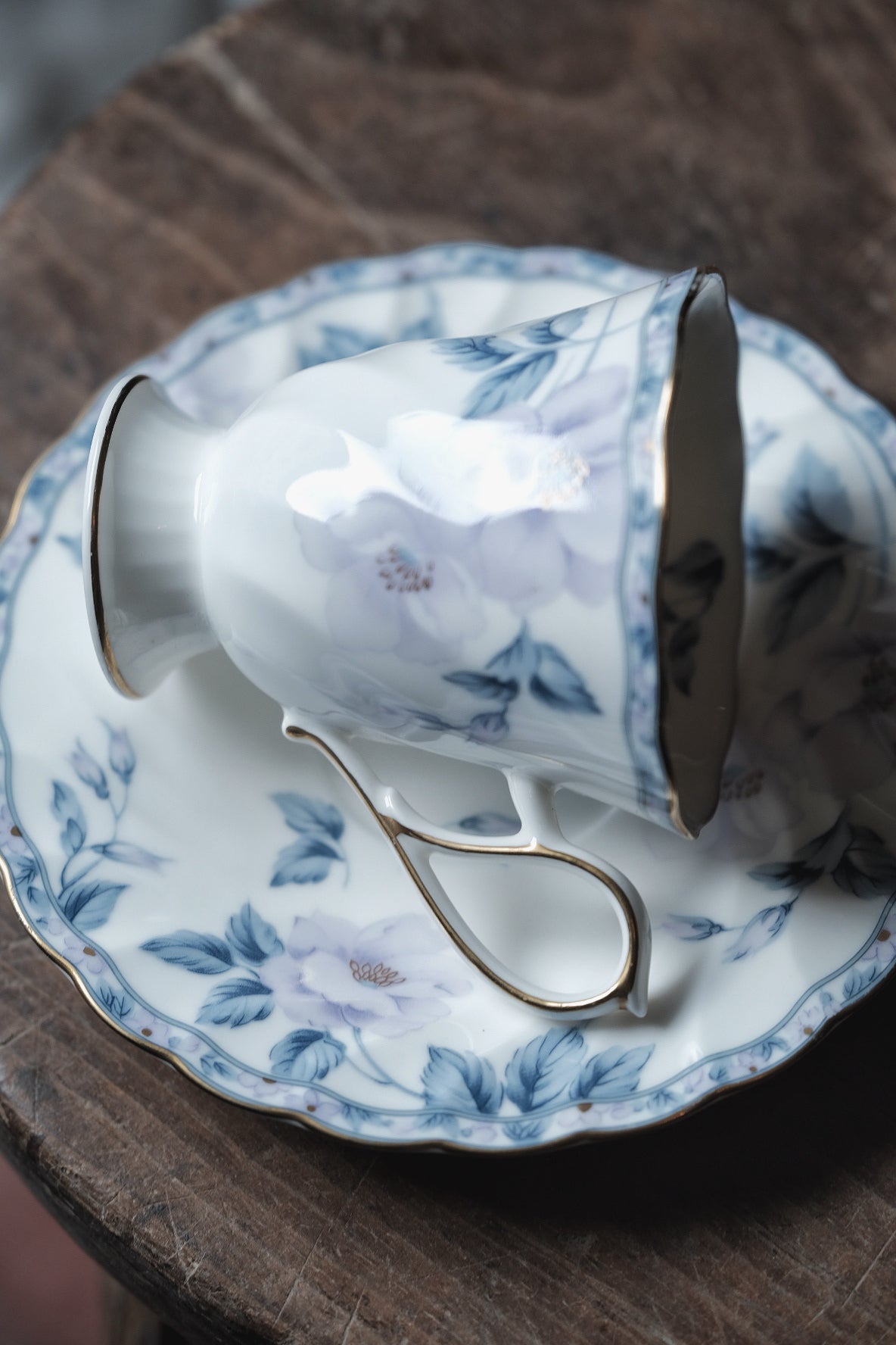 日本製·Hoya山茶花高足骨瓷杯連碟