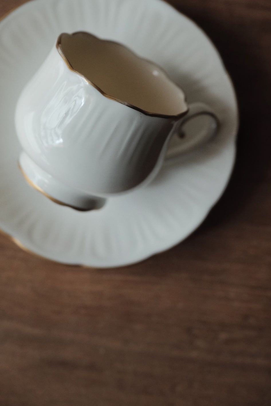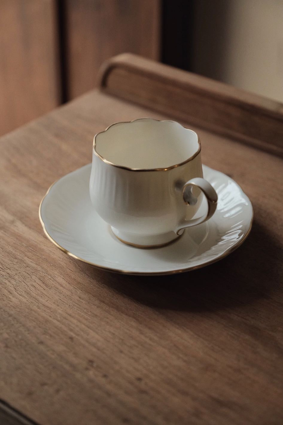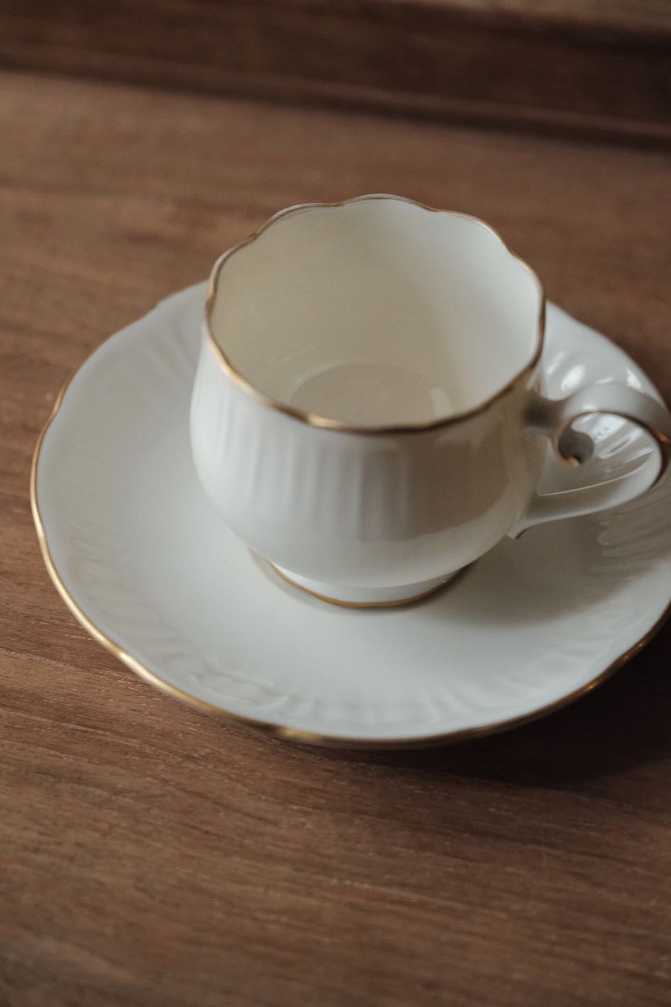 咖啡杯把手及杯口套有精緻描金,