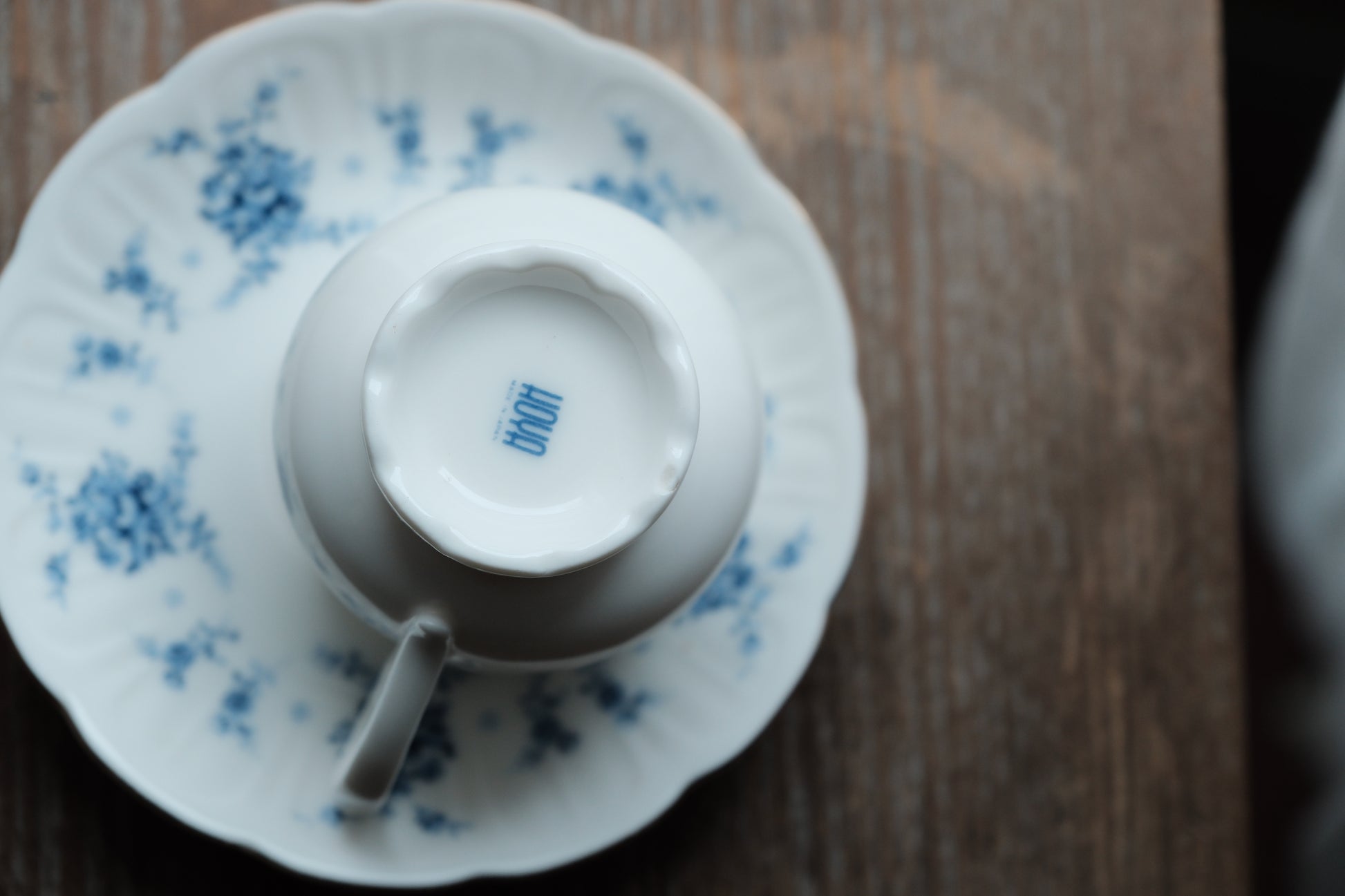 Hoya 自家花朵杯型,線條圓潤典雅,瓷色奶白,碟邊有浮雕圖令整杯更立體浮動,杯內有內繪,整體平衡感强,店主十分十分推薦購入ʕ •ᴥ•ʔ