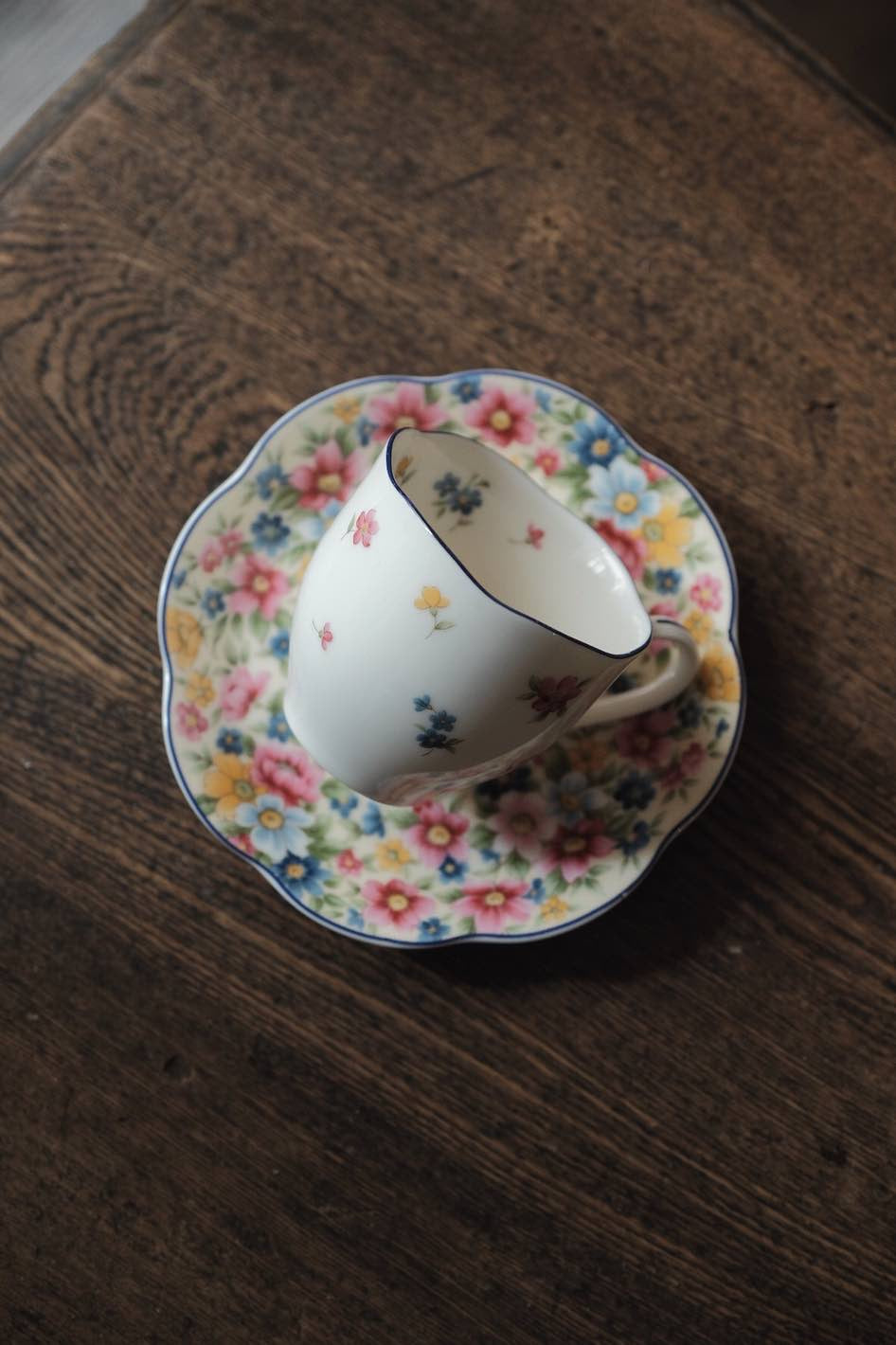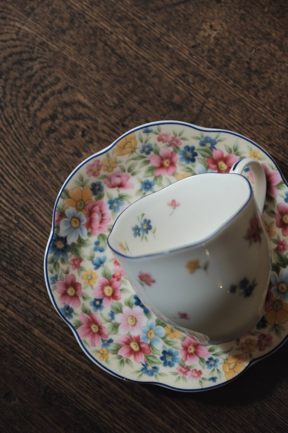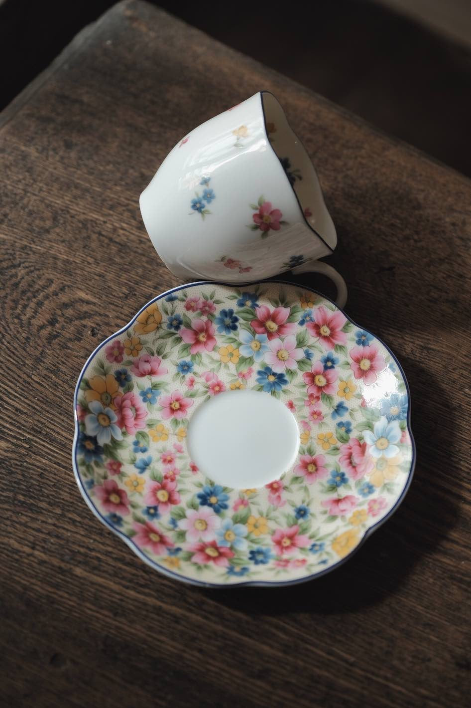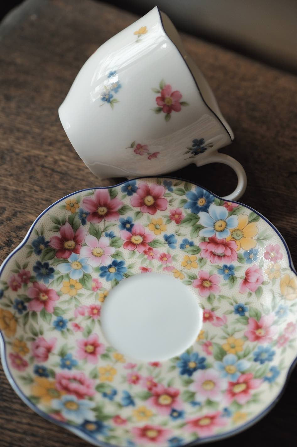 碟身百花繁花圖,杯身則是使用留白的演繹方法,滿彩中點白,個人很喜歡的一套