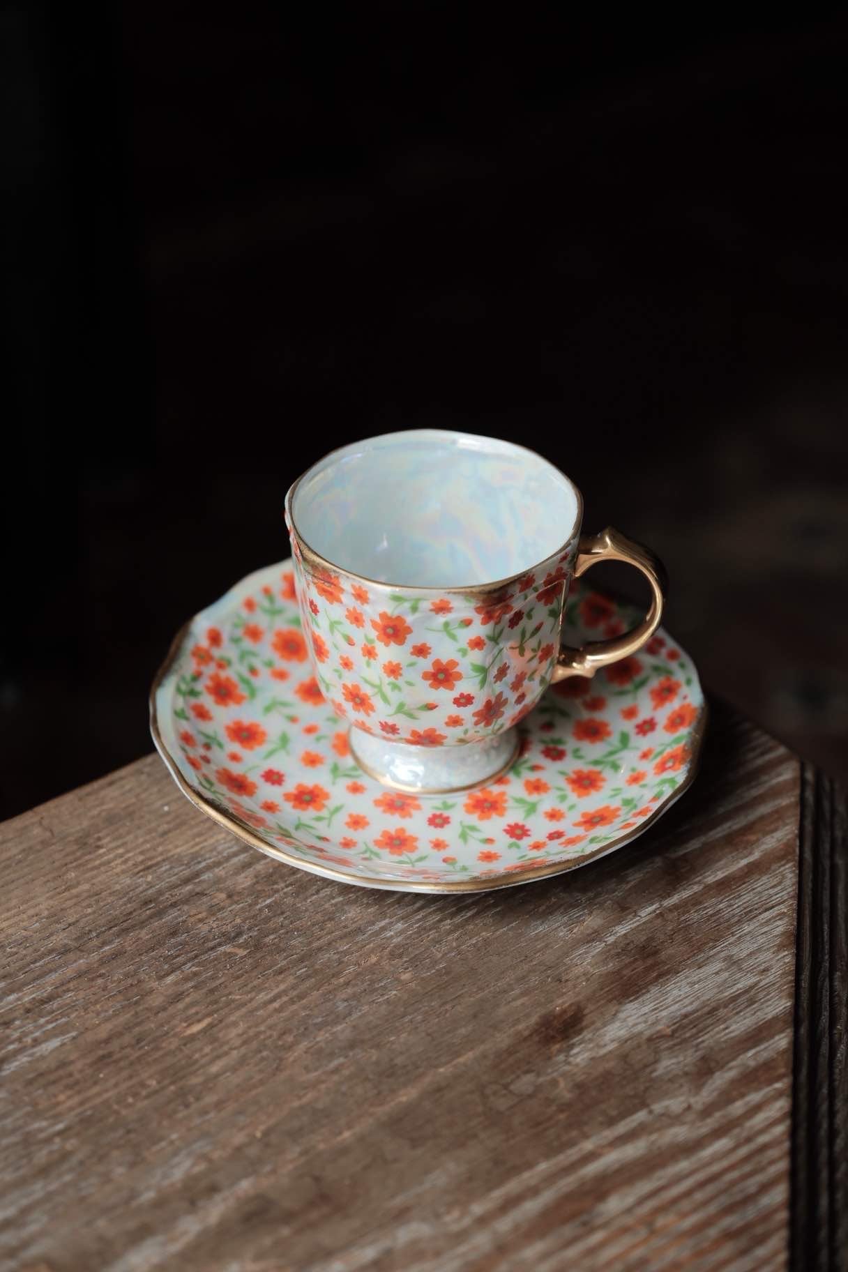 日本製·Sango高足滿花貝殼釉浮雕描金茶杯(170ml)