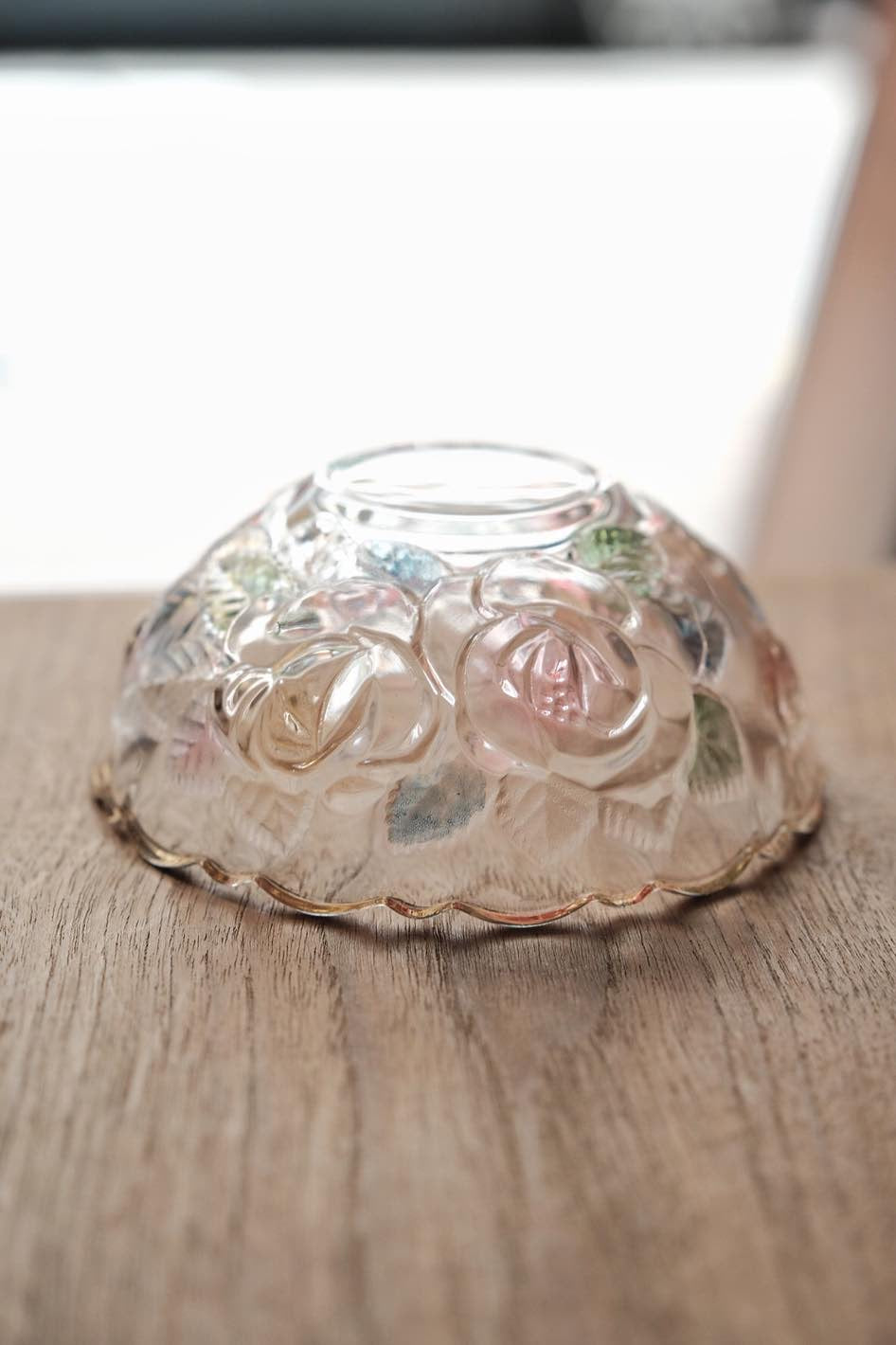 花型描金,彩雕花型圖案配上切割玻璃的折射光線非常漂亮。