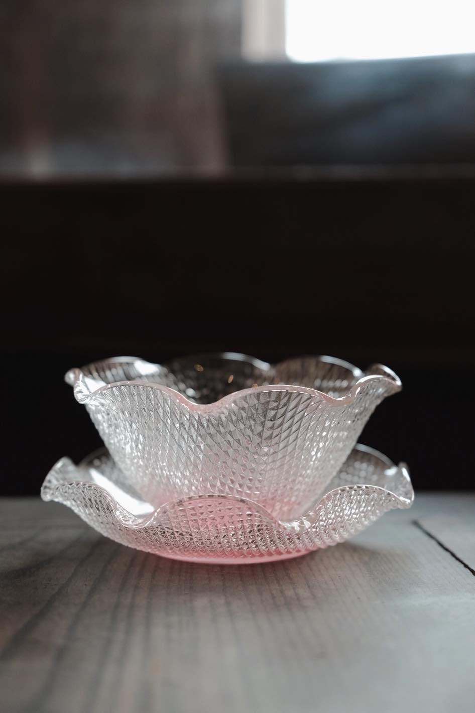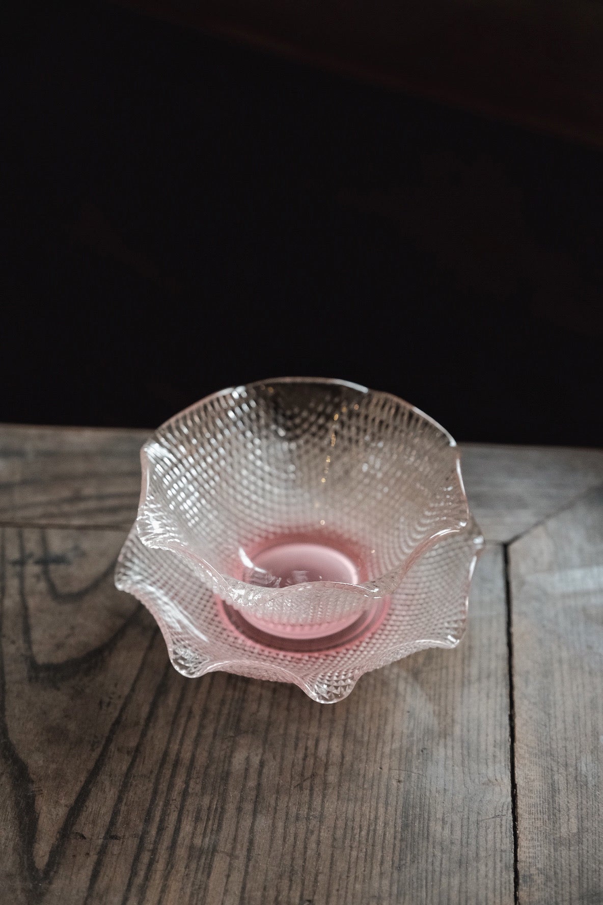 日本製 · SY FASHION GLASS 昭和琉璃馬卡龍漸變桃紅色波浪口甜品碗