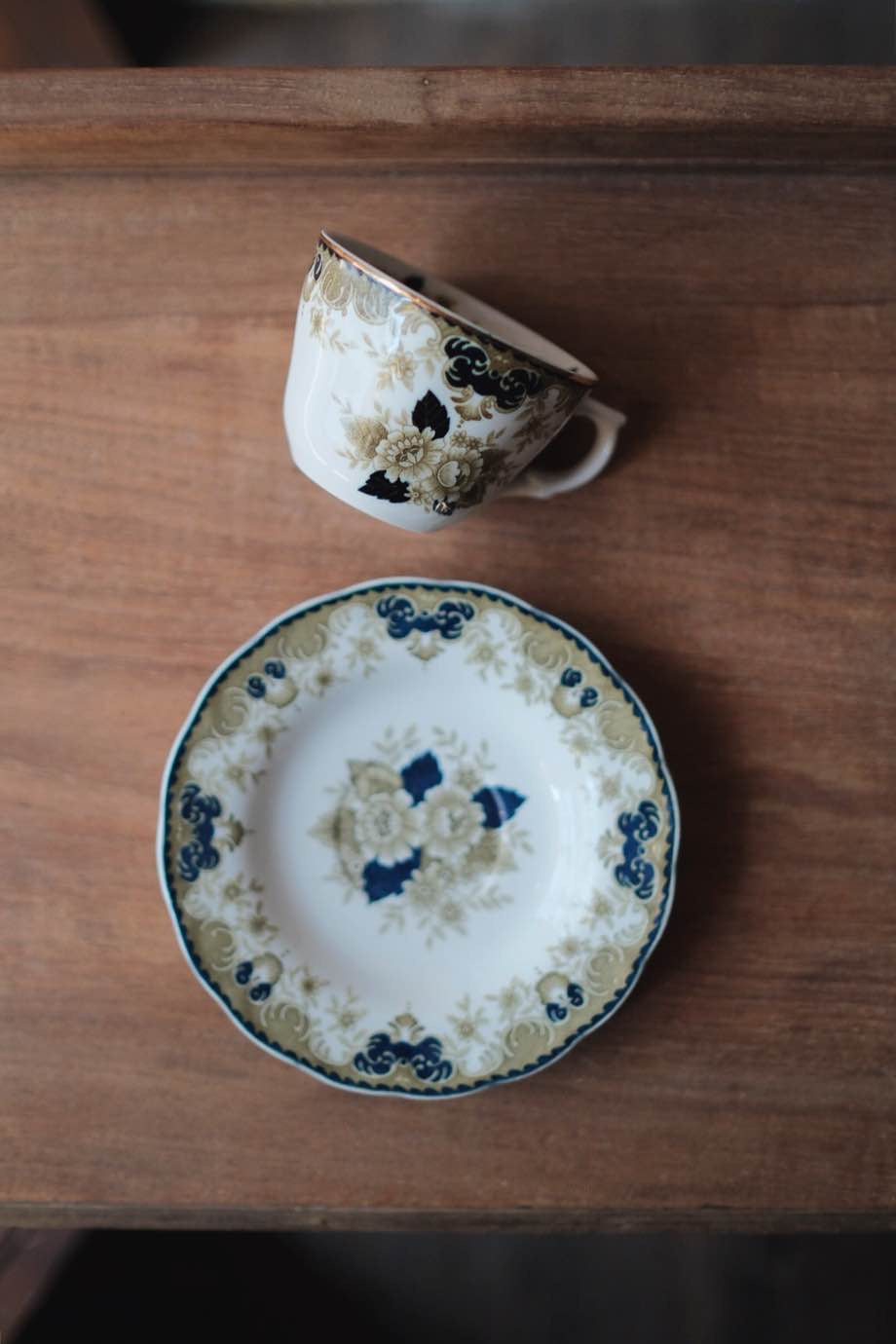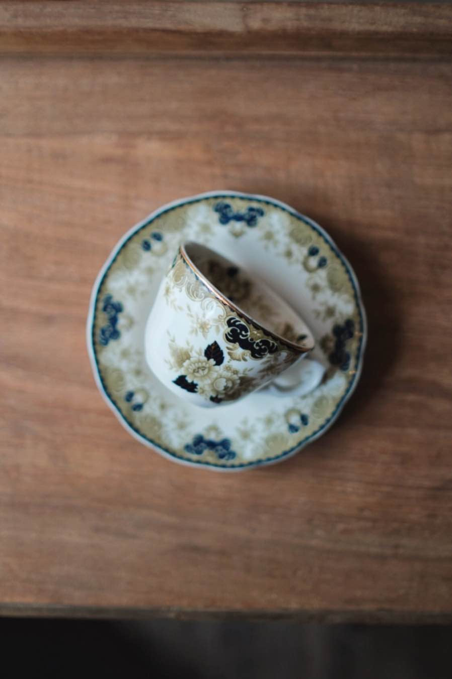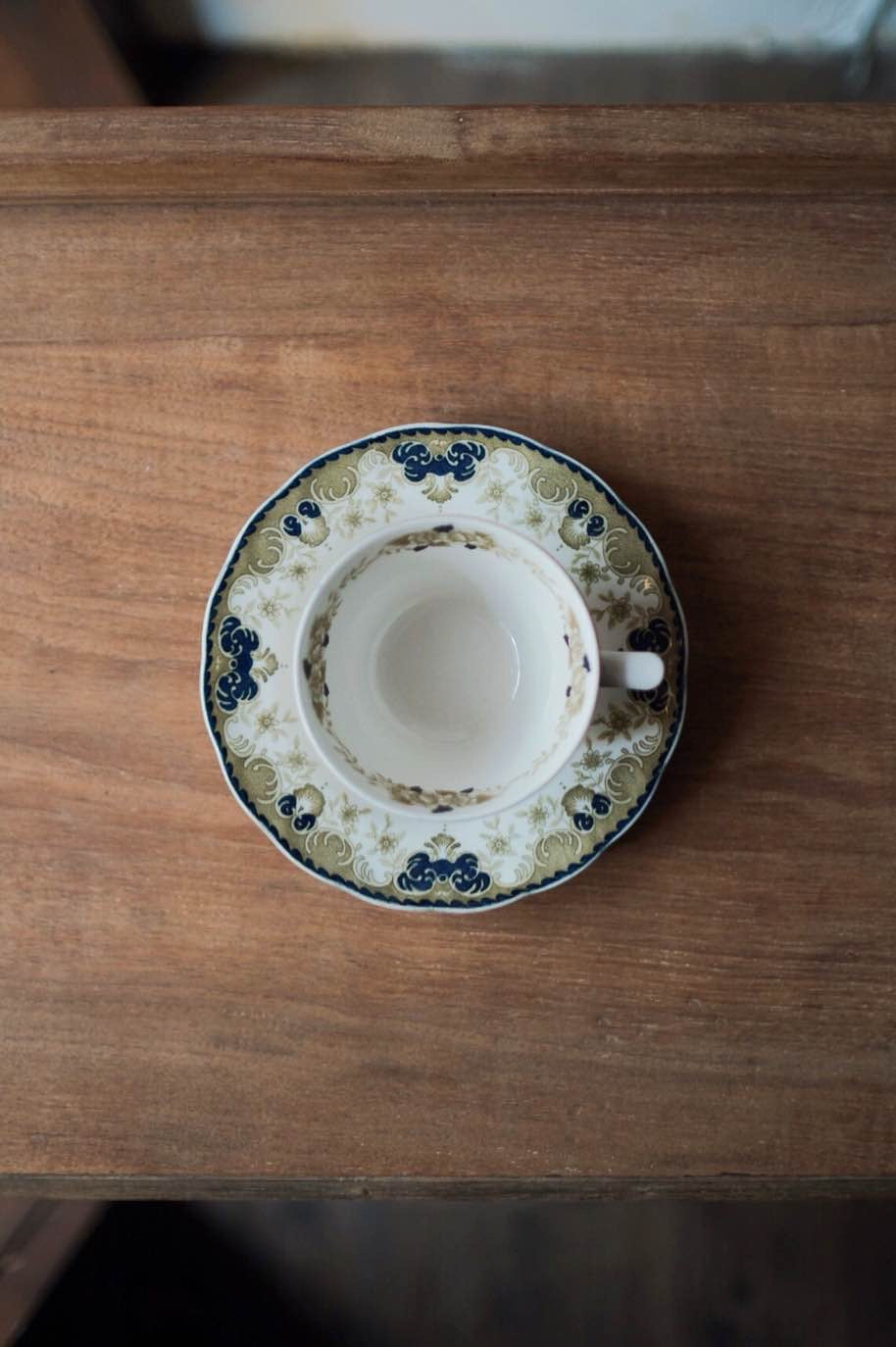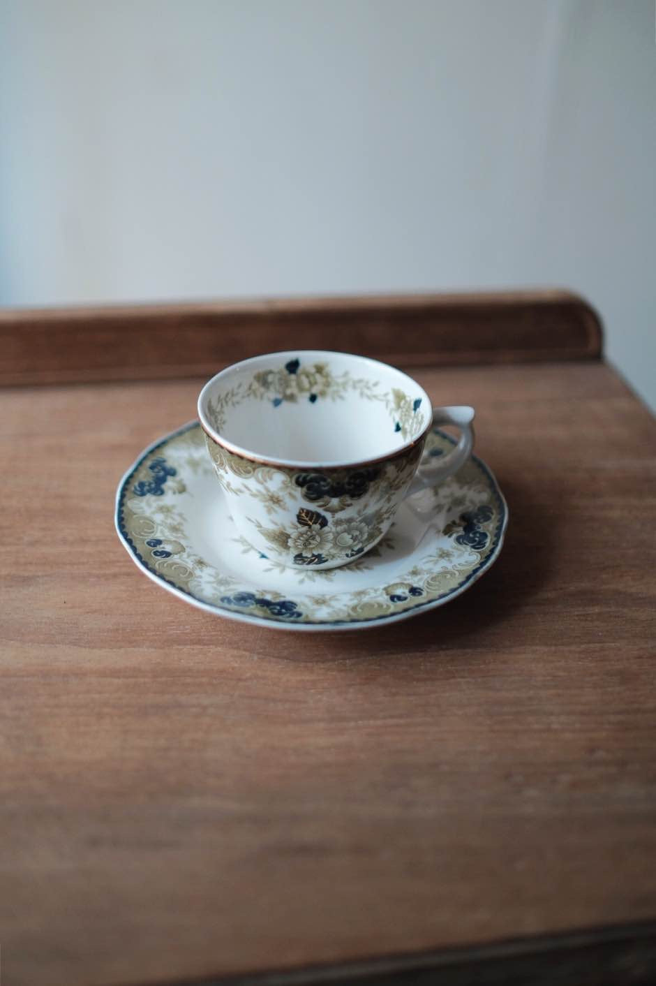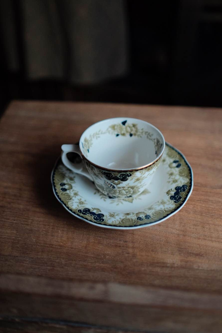 日本製NIKKO描金橄欖綠野玫瑰咖啡杯