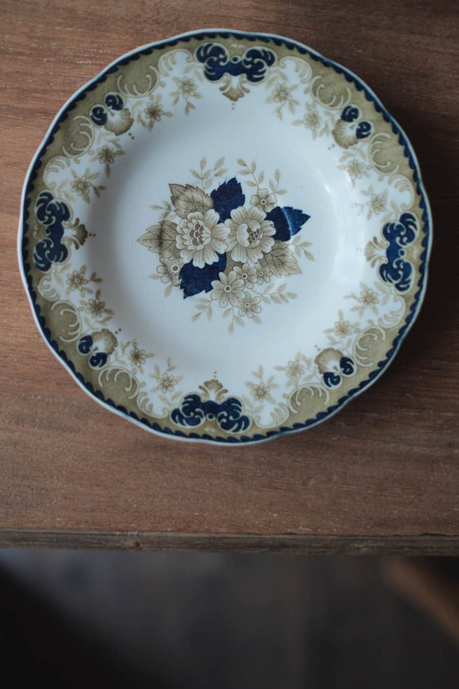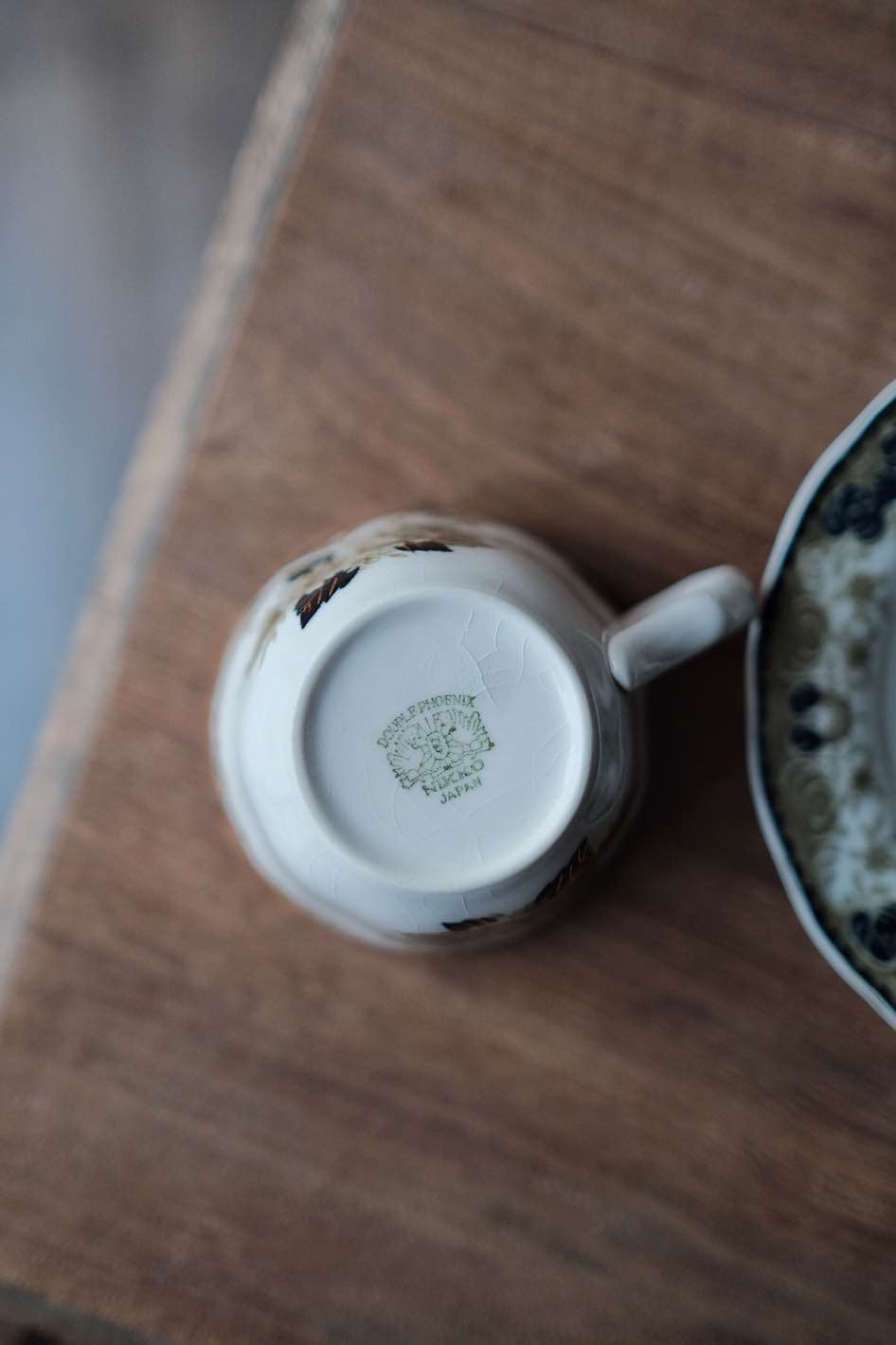 描金邊,年代物,有Nikko特有的低温陶開片特徵冰裂紋。