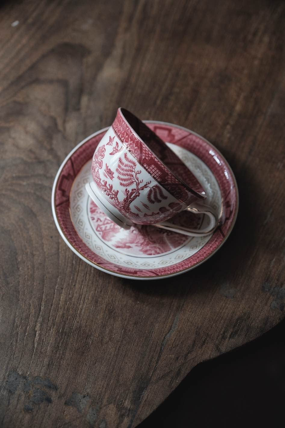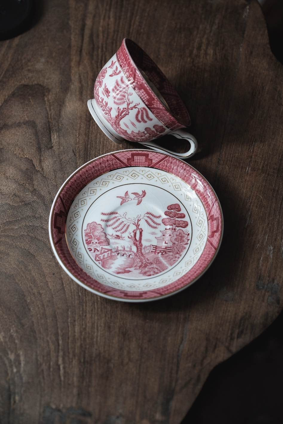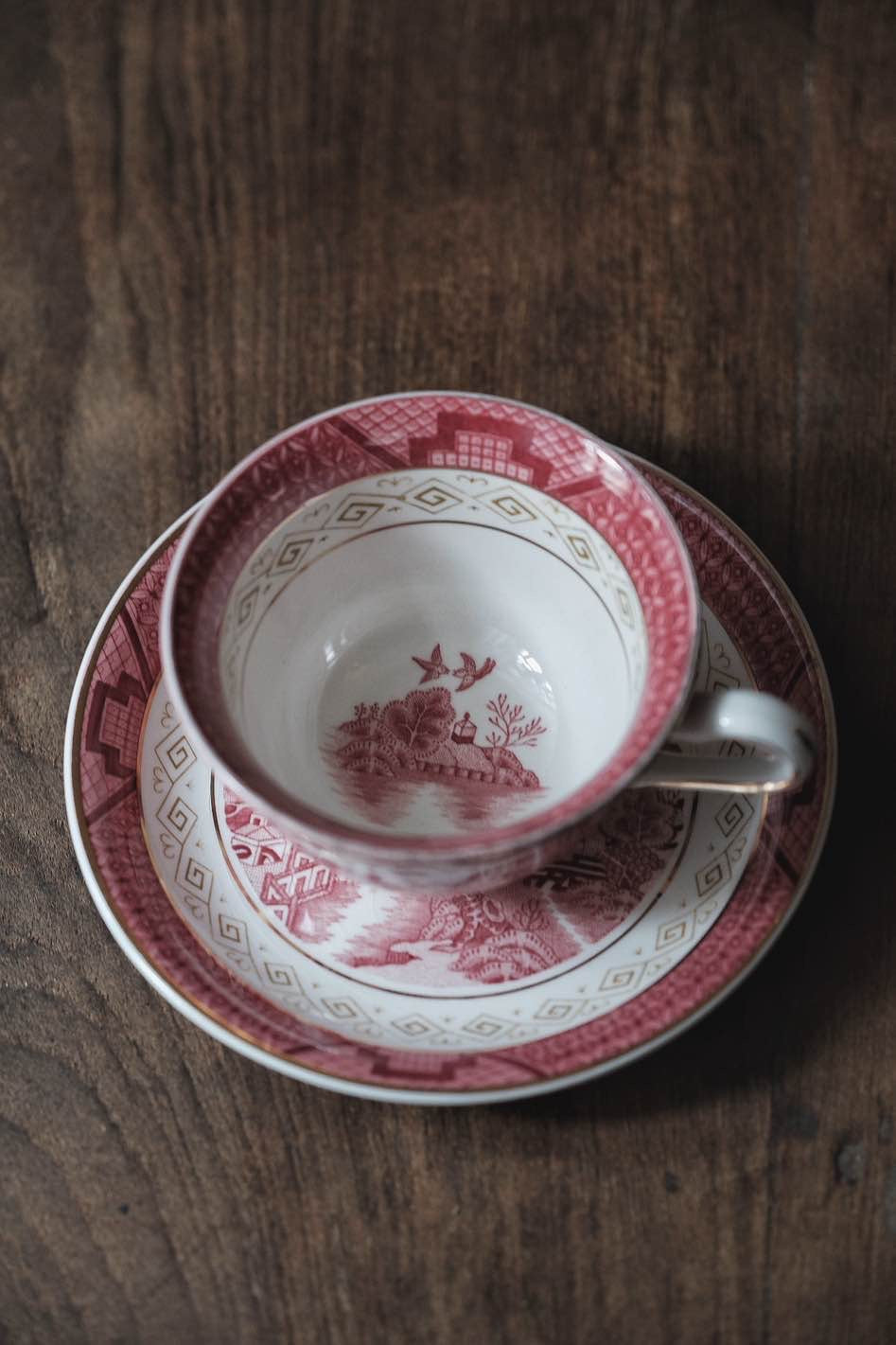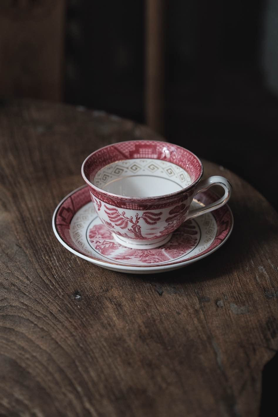 可作日常杯使用,柳山水紅色,舊底標,已收入藍色不妨也把紅帶回家