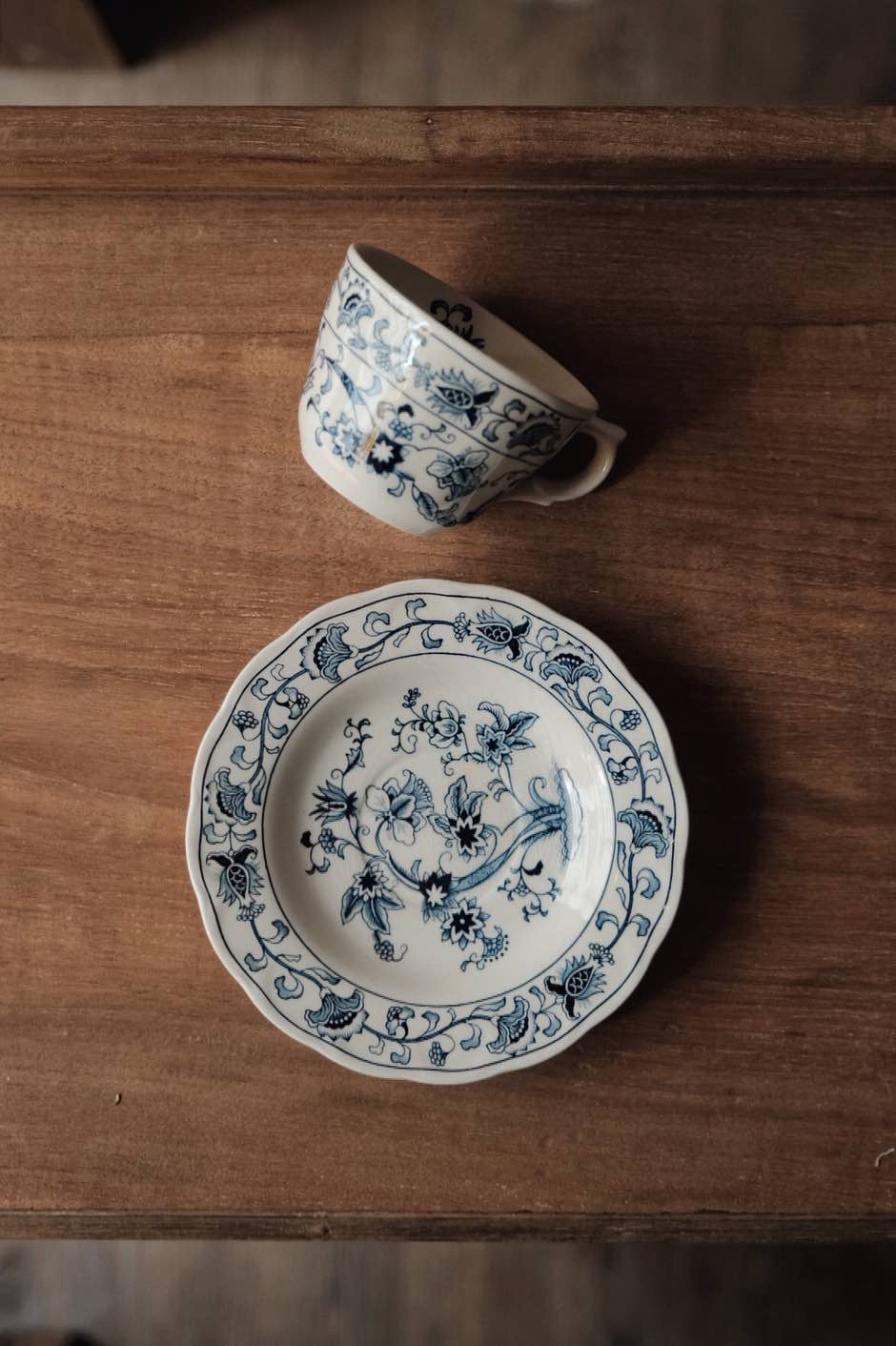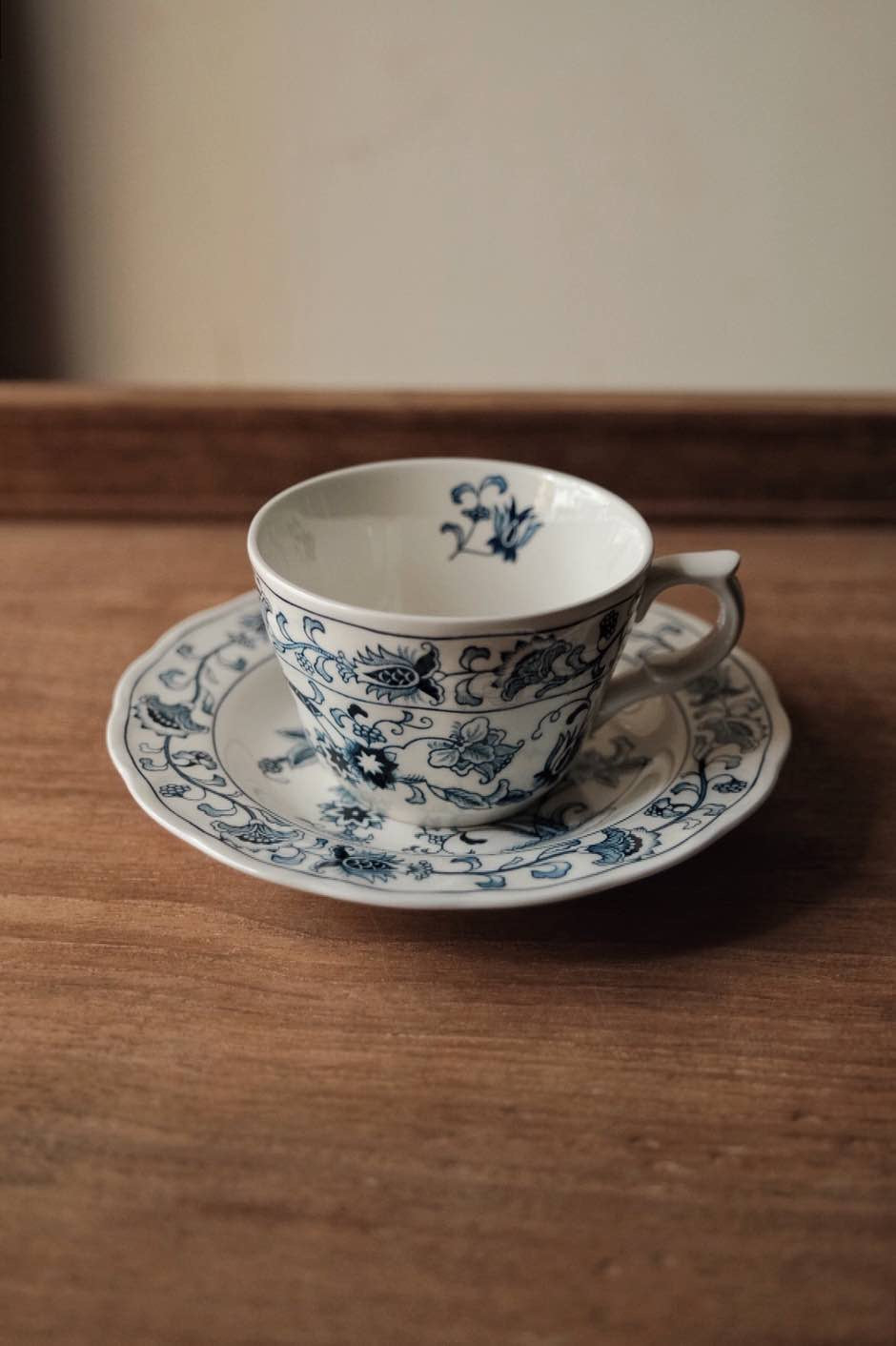 日本製NIKKO骨瓷青付青花付染咖啡杯