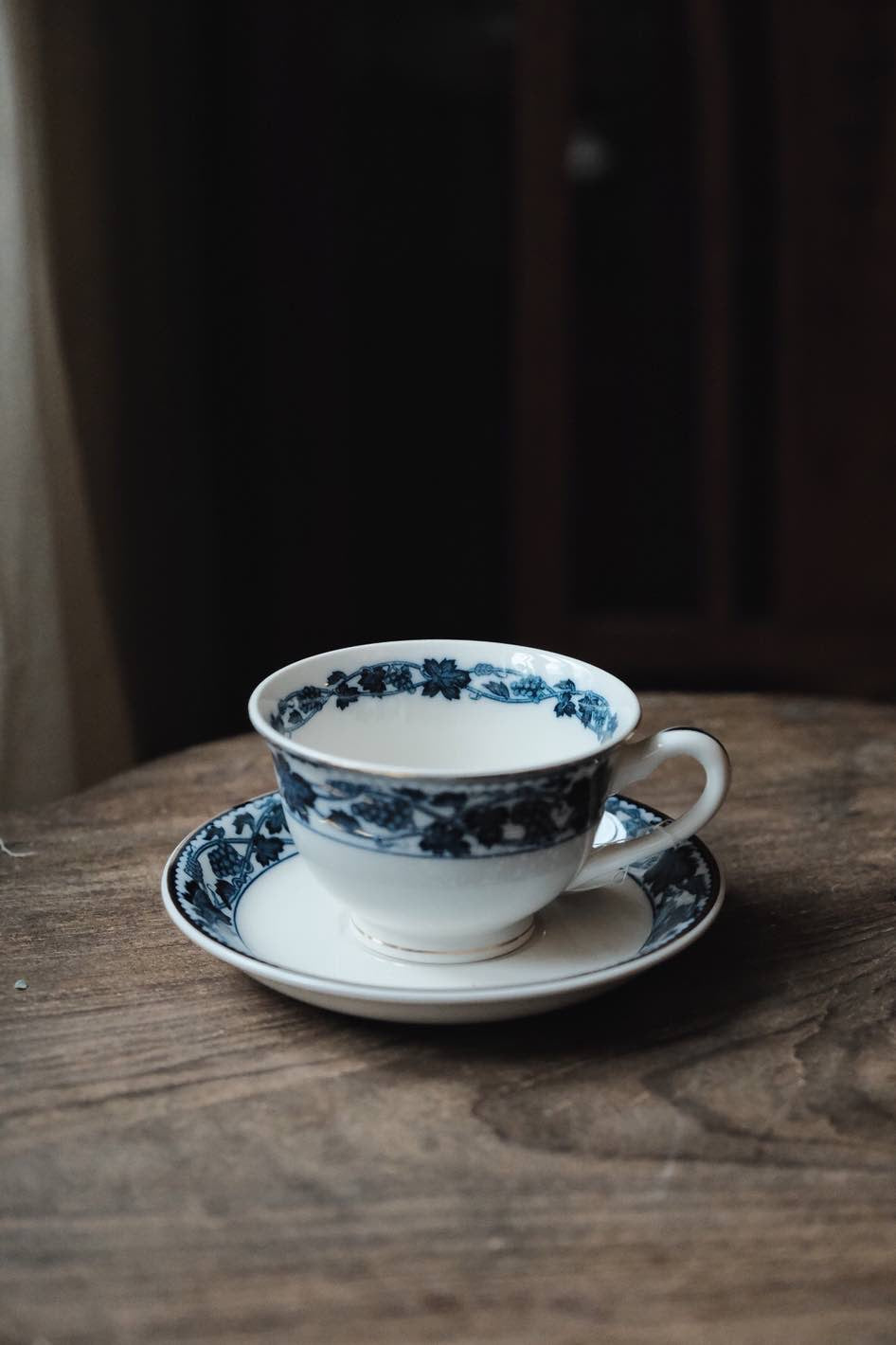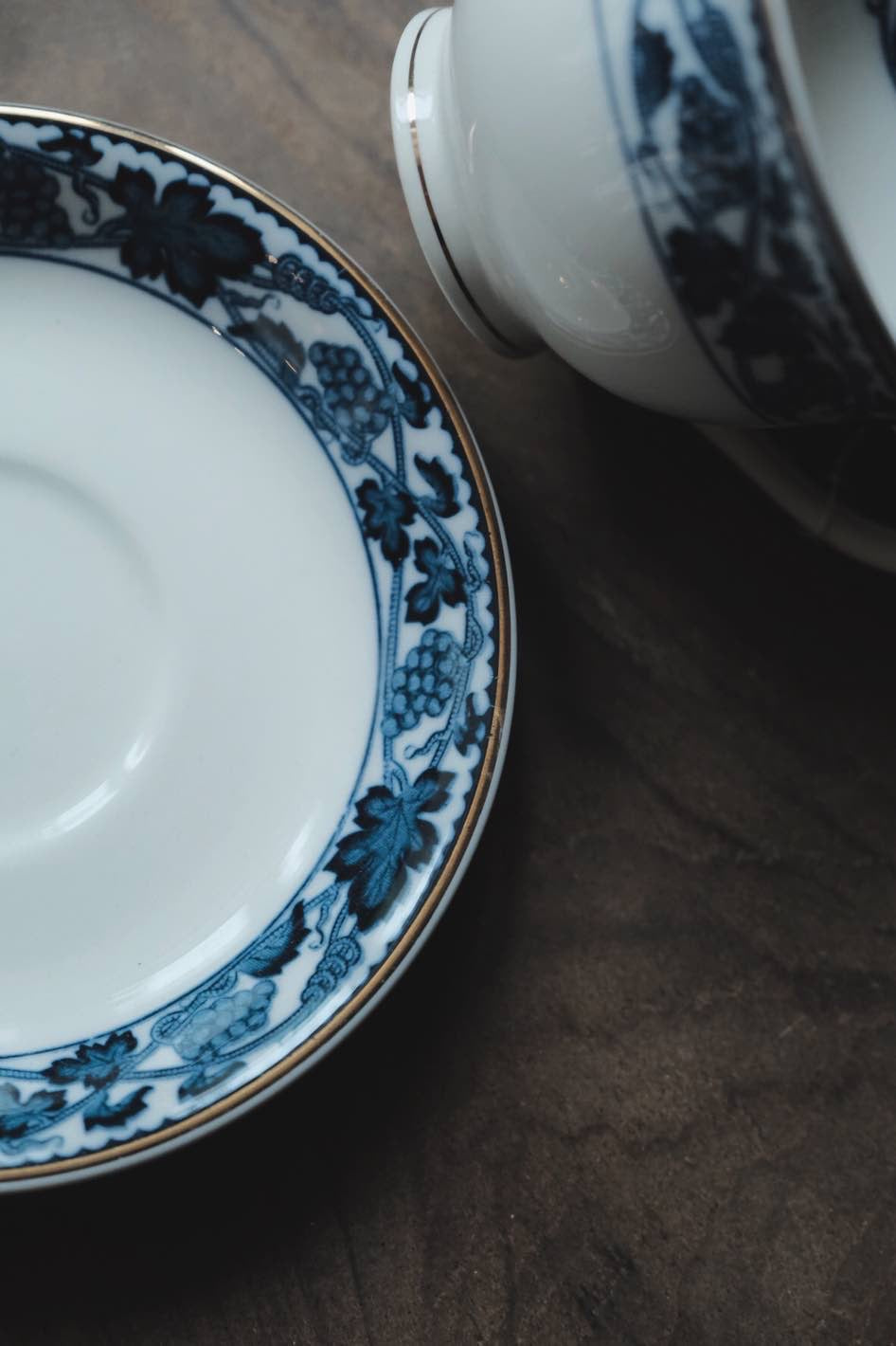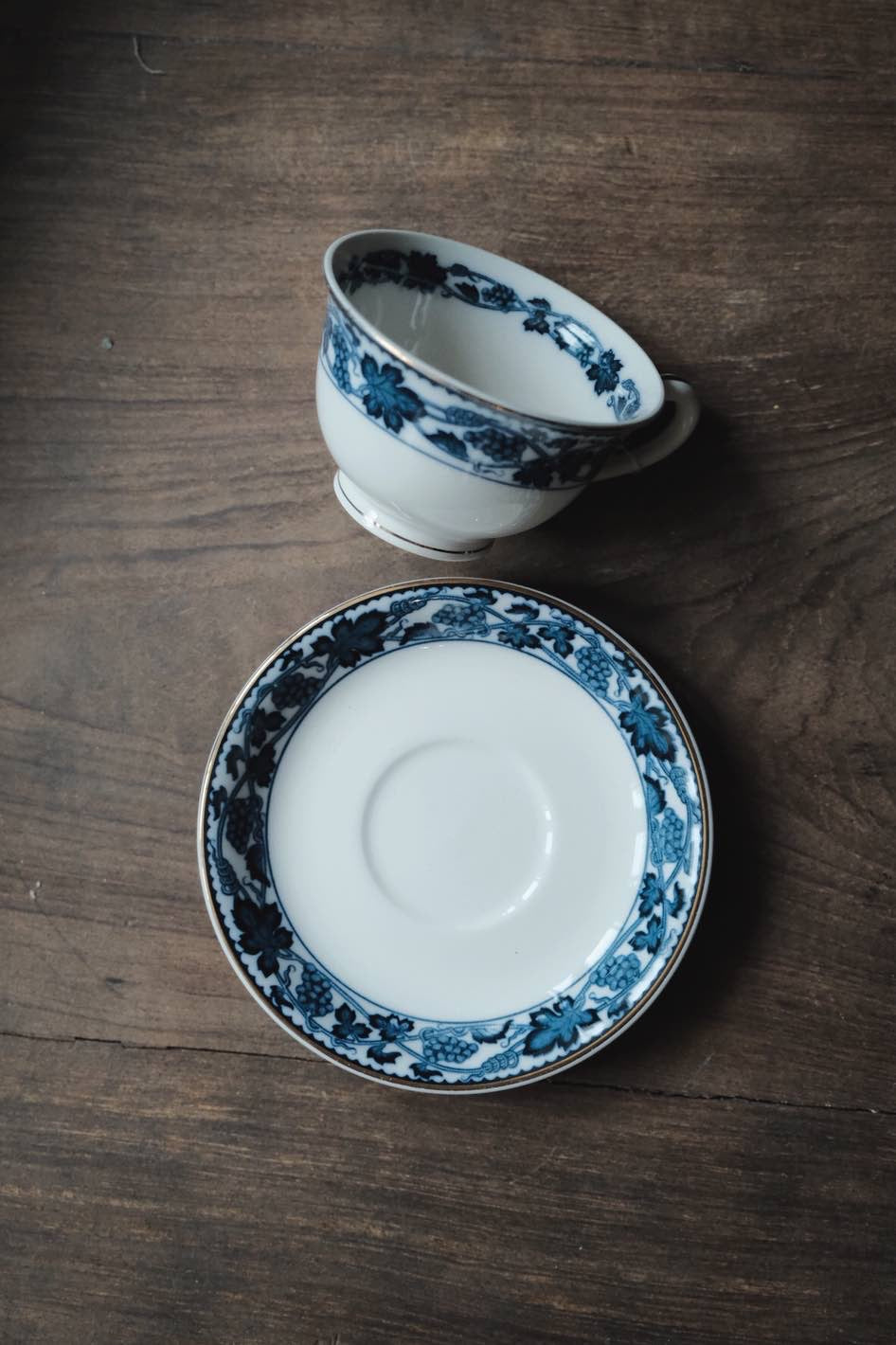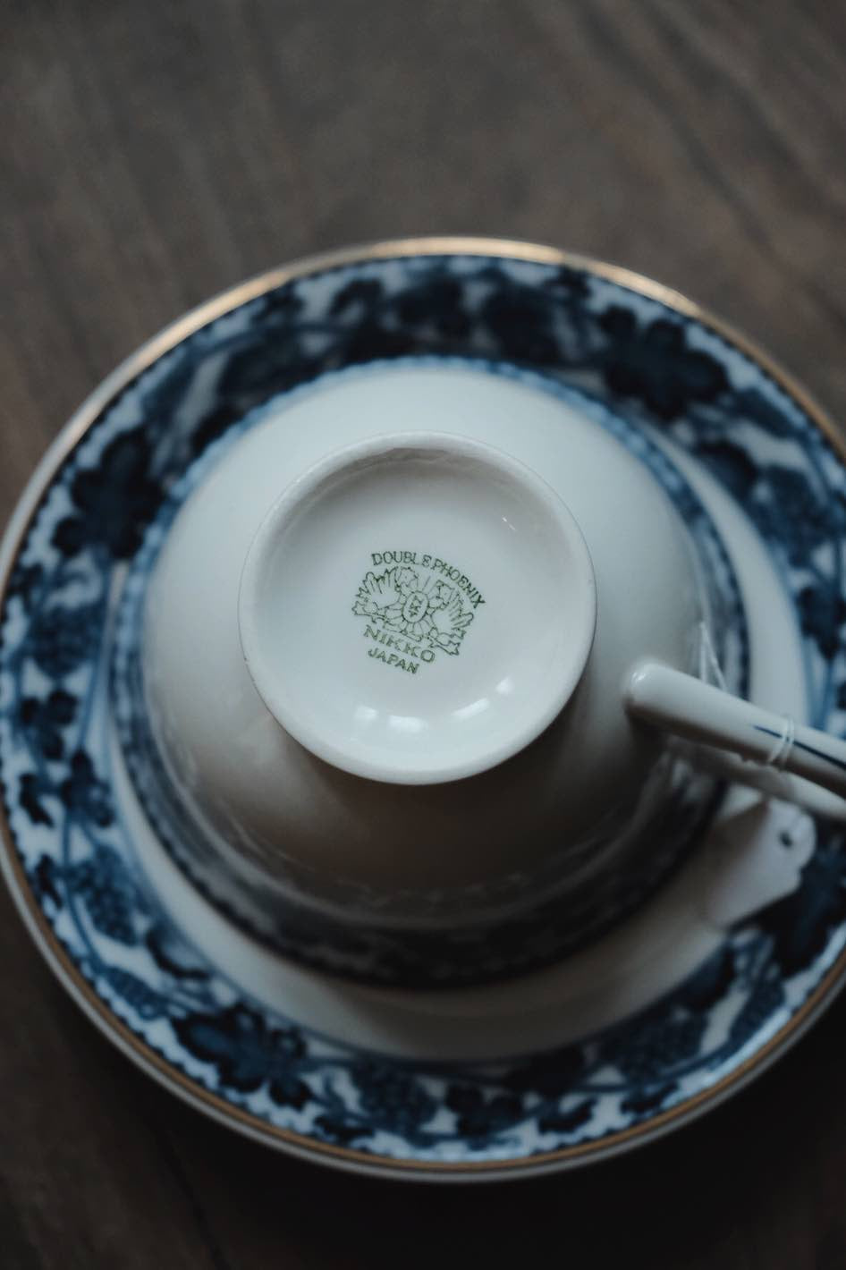 日本製NIKKO骨瓷青付青花付染葡萄藤描金咖啡杯