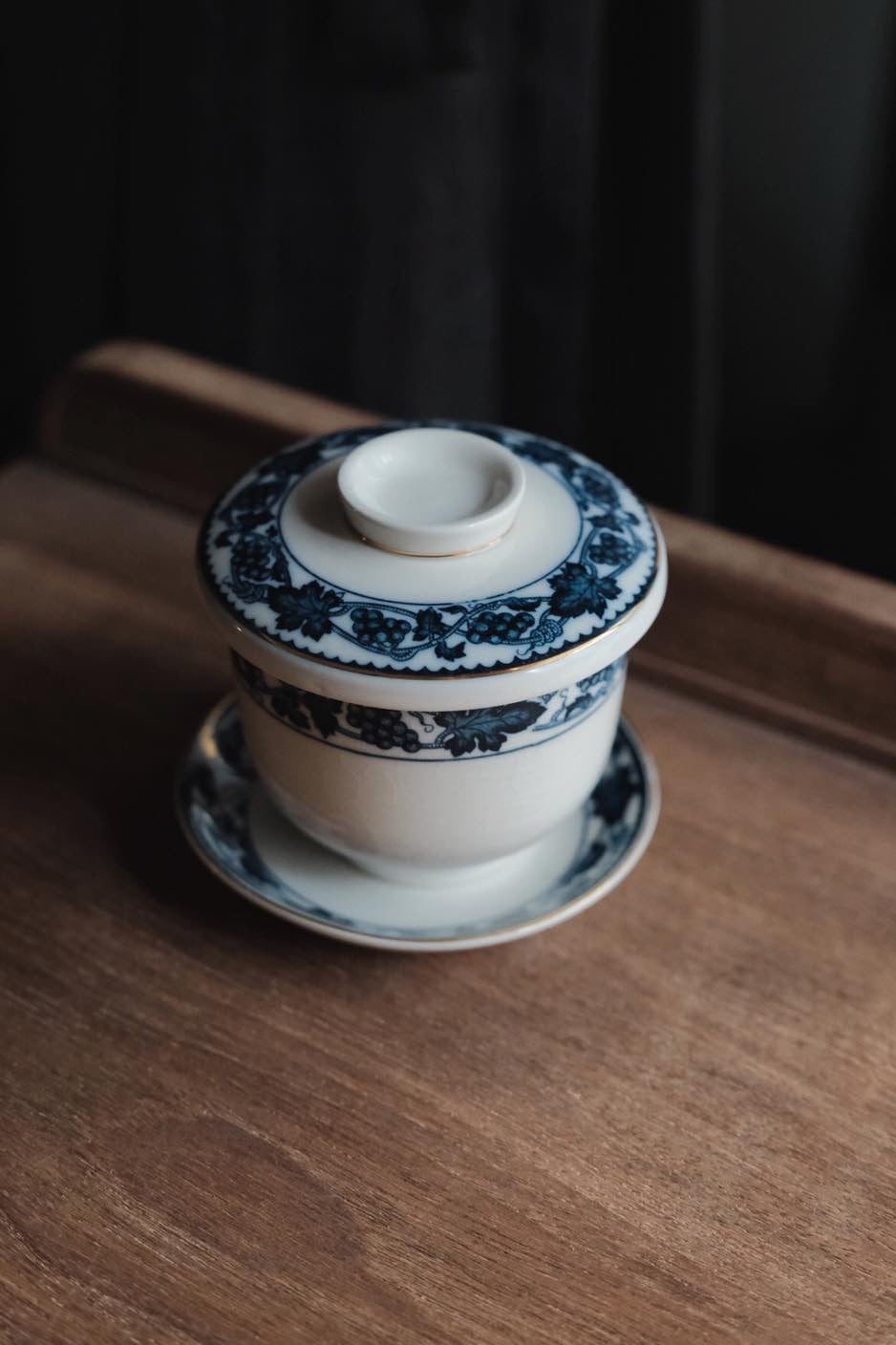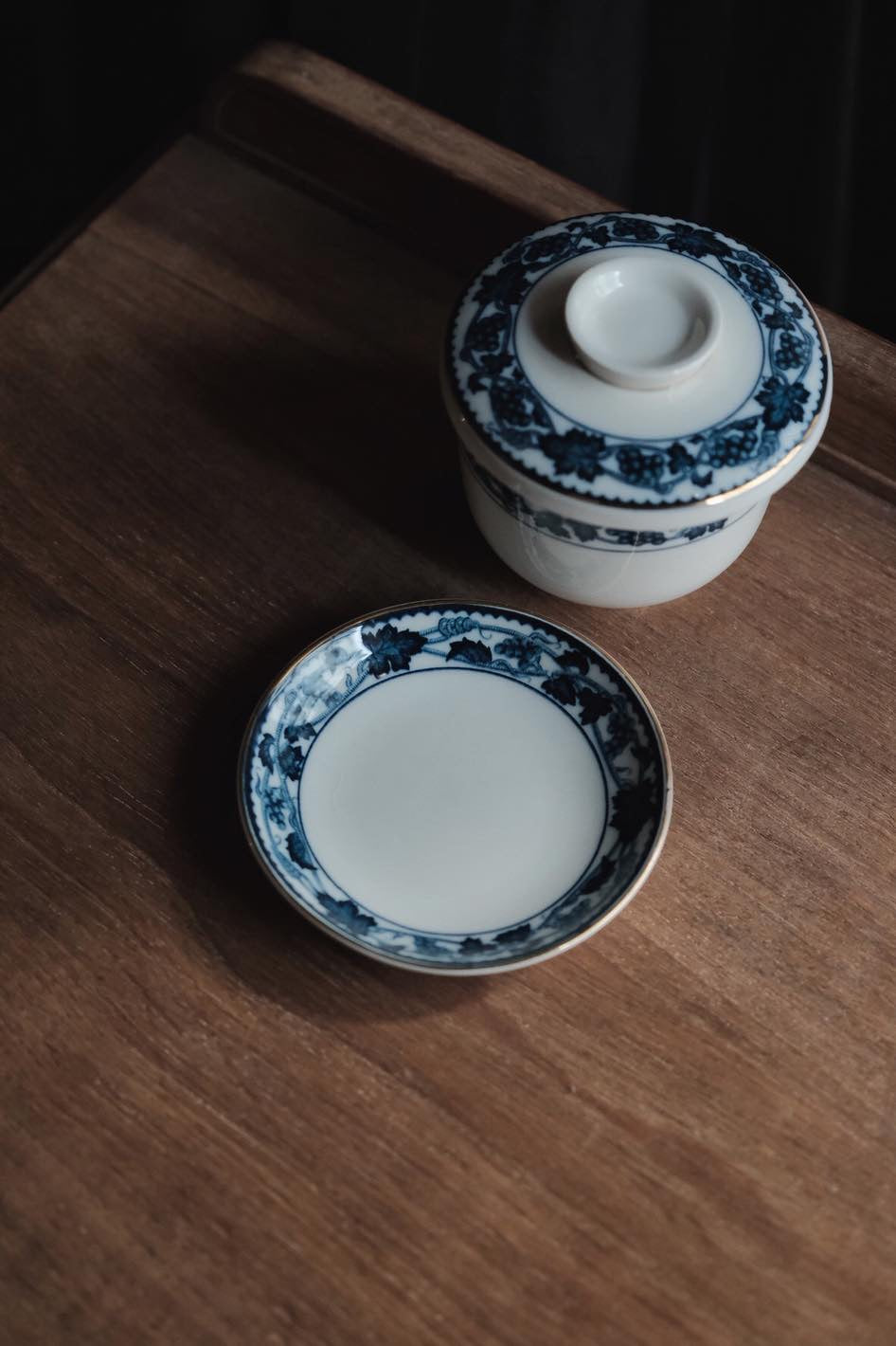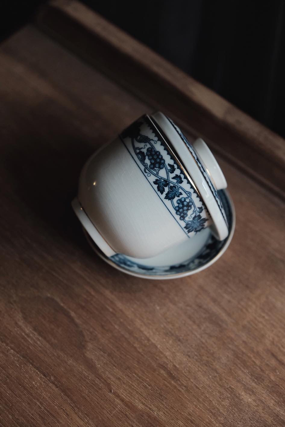 日本製NIKKO骨瓷青付青花付染葡萄藤描金蓋杯連碟(230ml)