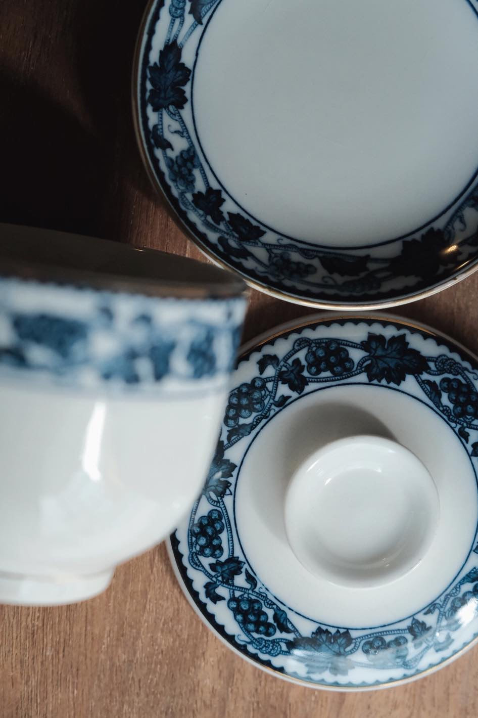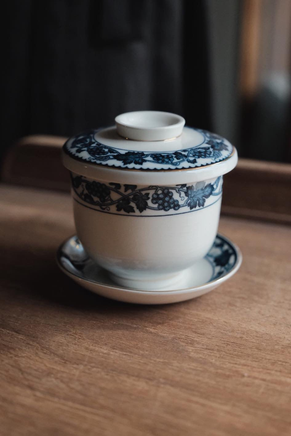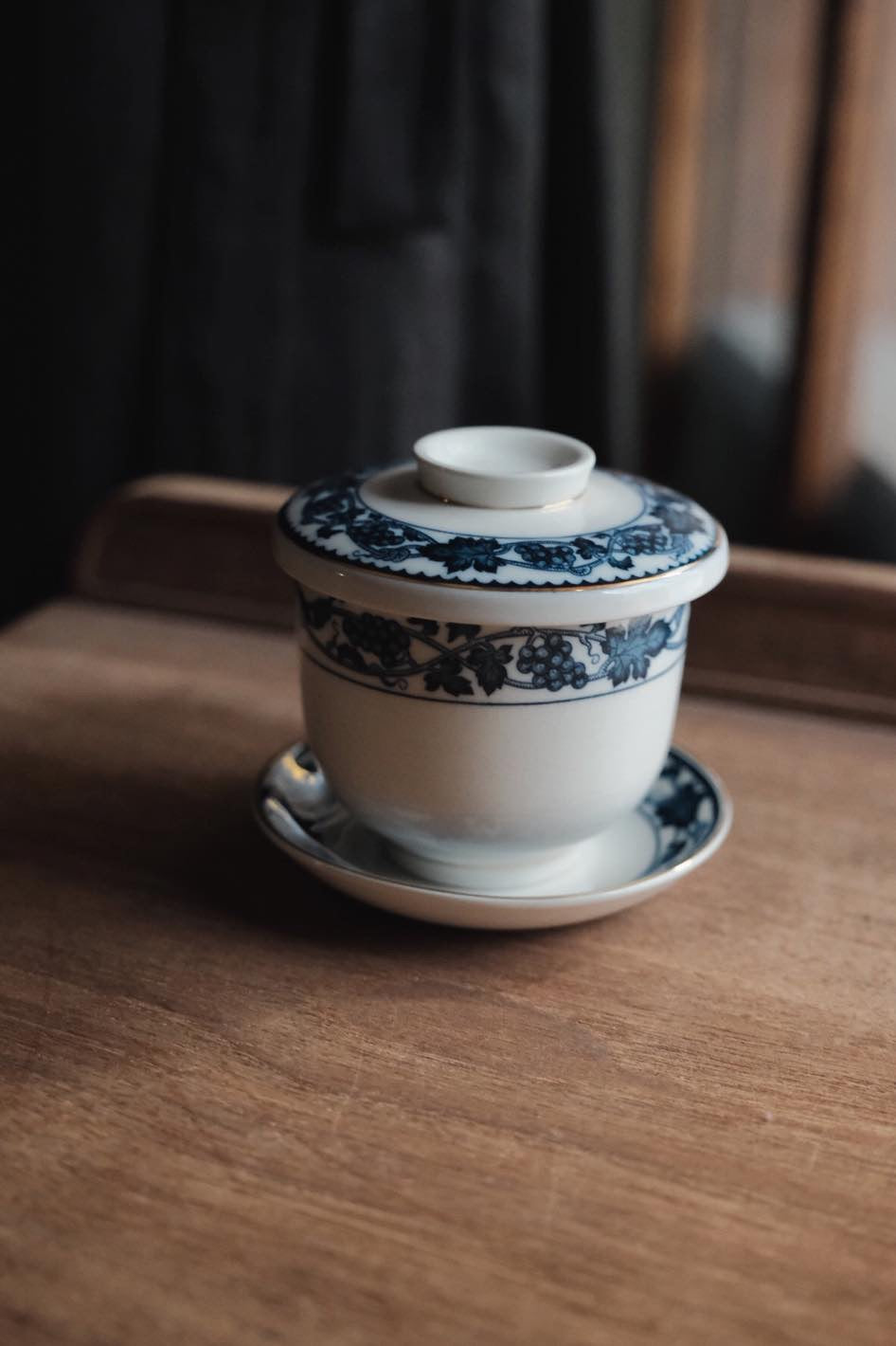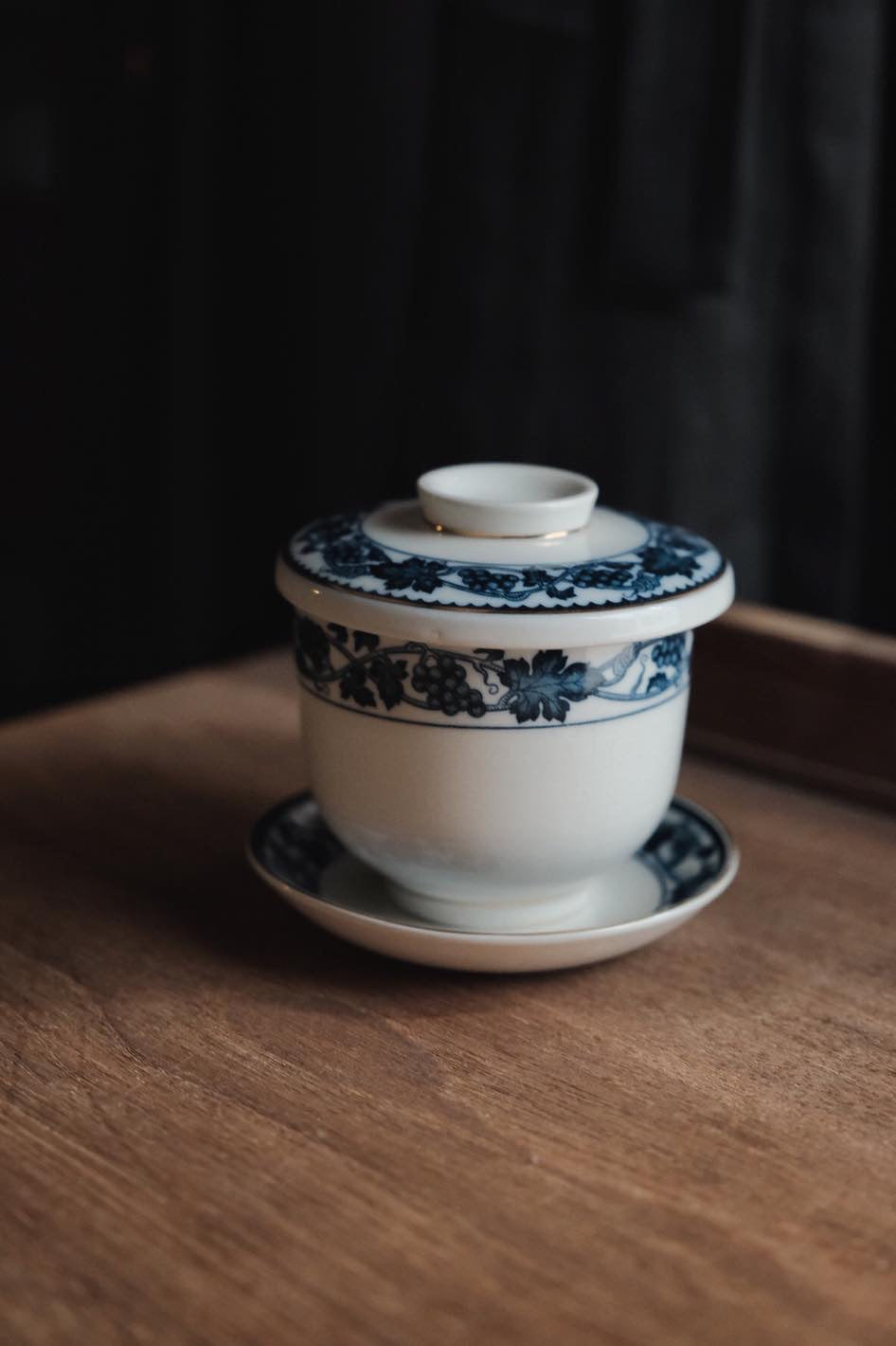 日本製NIKKO骨瓷青付青花付染葡萄藤描金蓋杯連碟(230ml)
