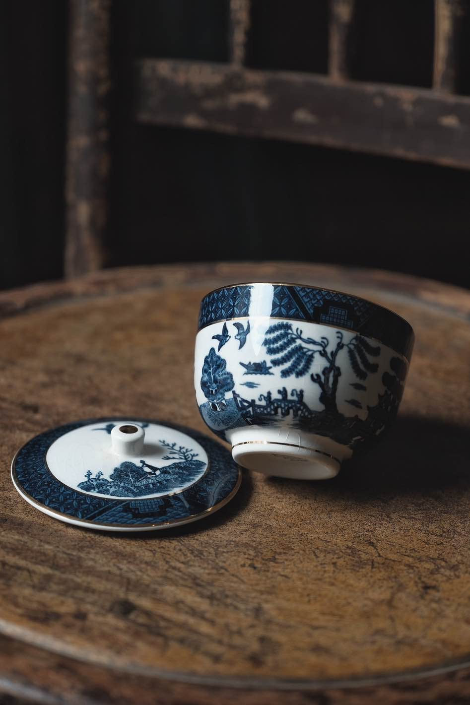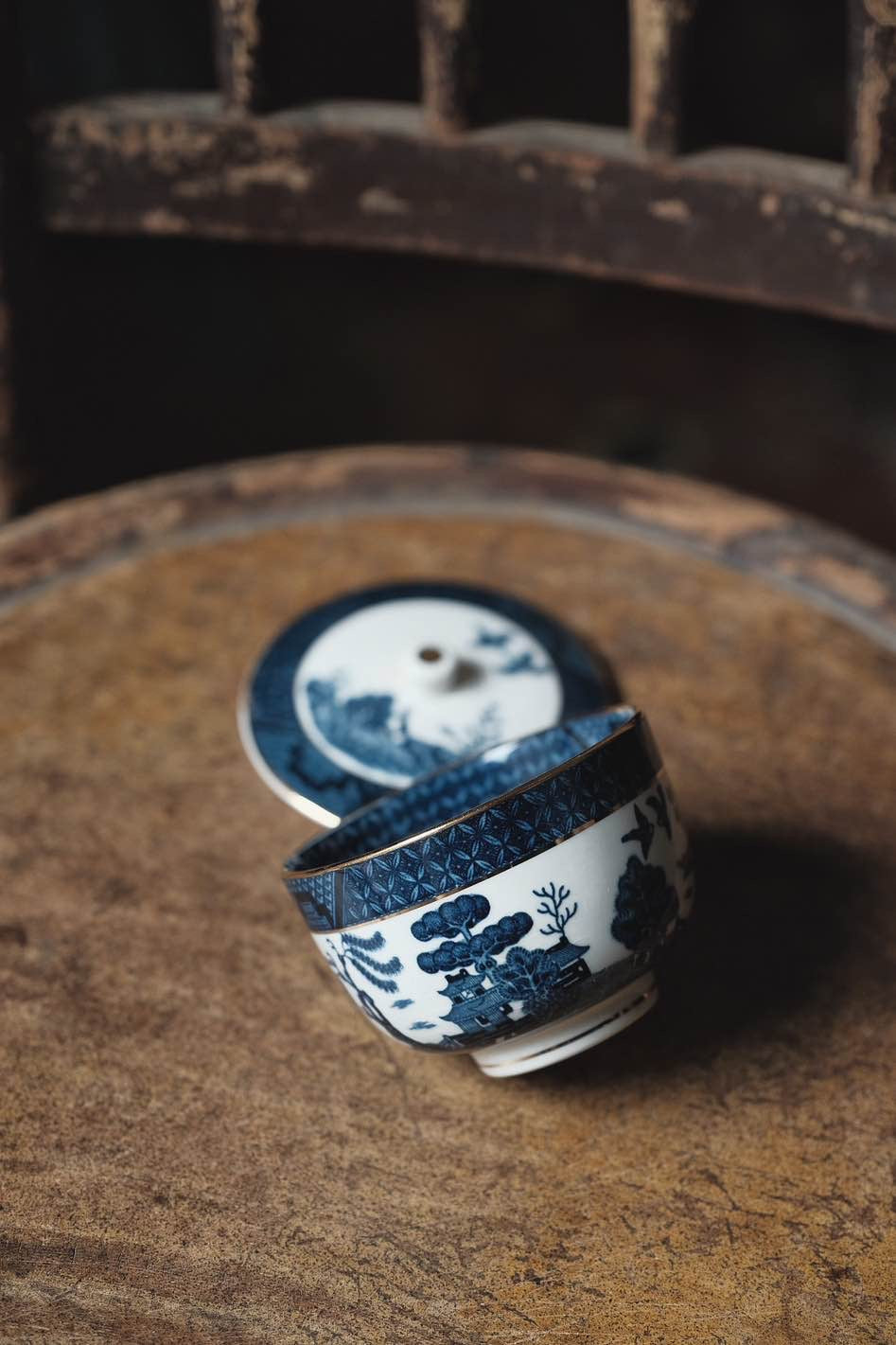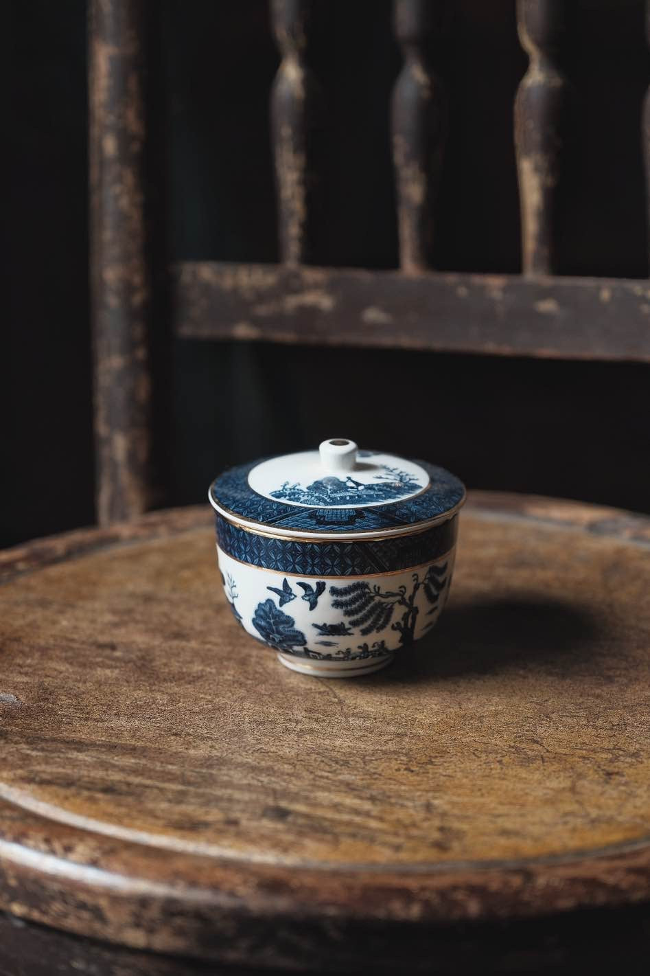 日本製NIKKO骨瓷青花柳樹付染描金三才蓋杯(170ml)