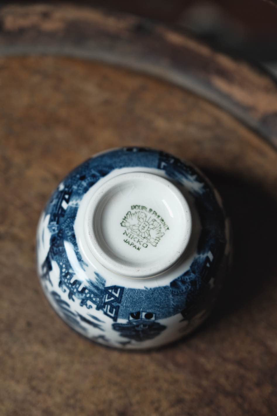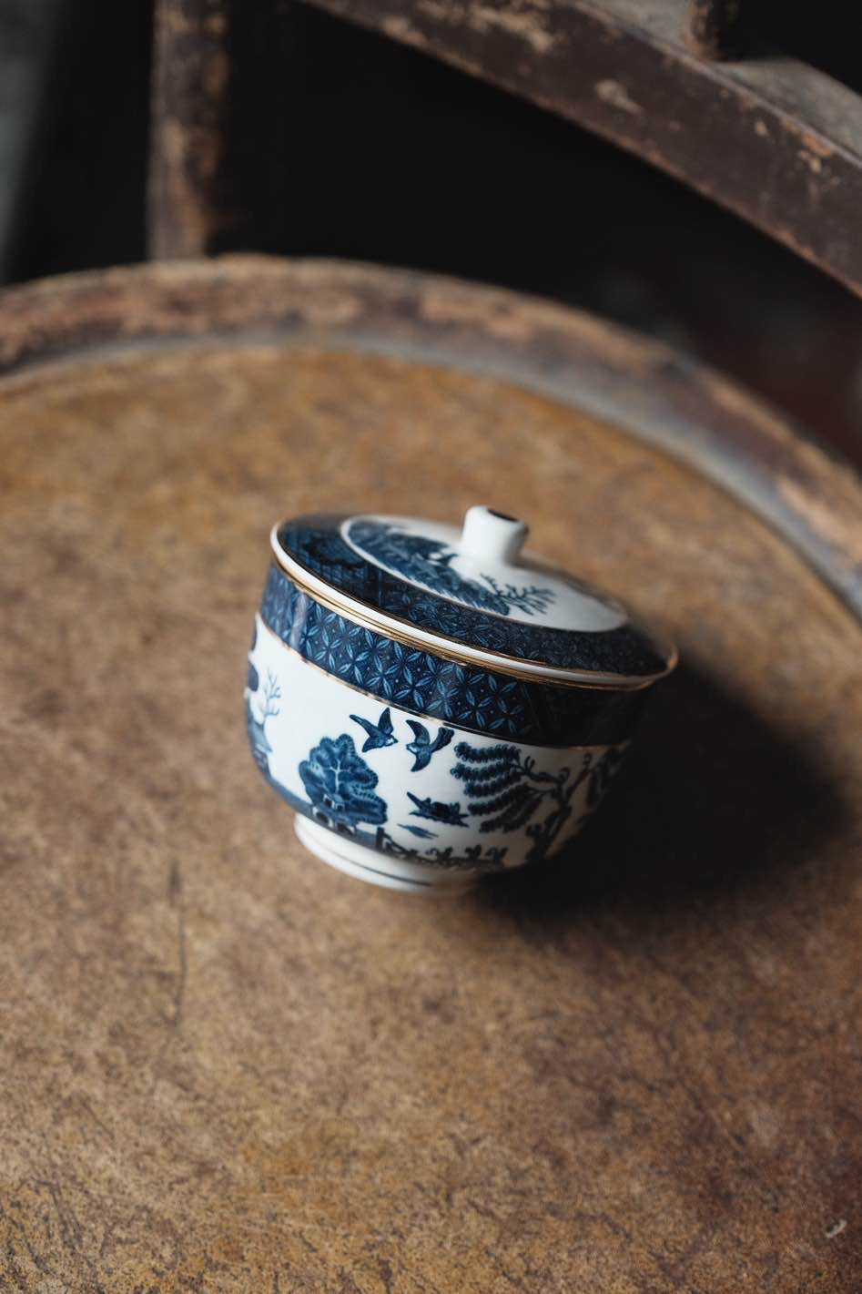 日本製NIKKO骨瓷青花柳樹付染描金三才蓋杯