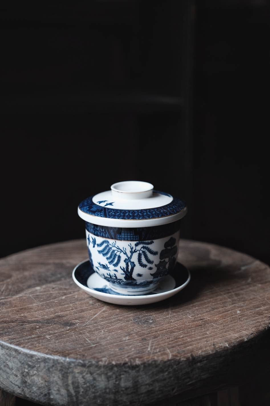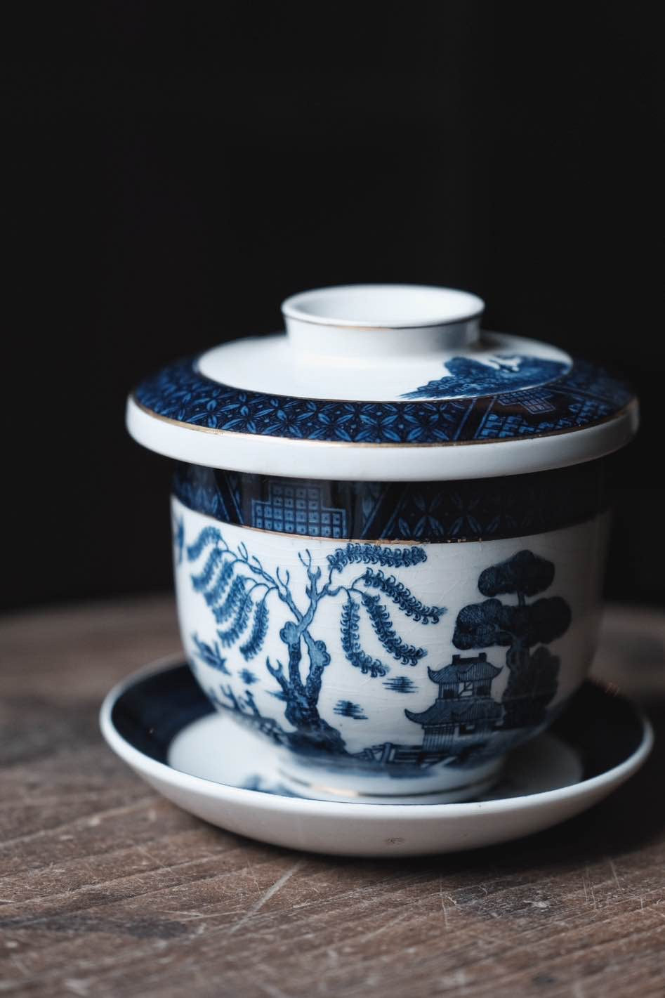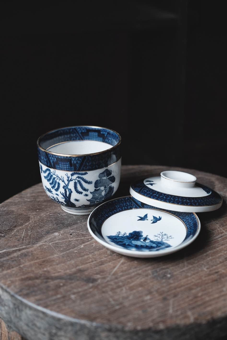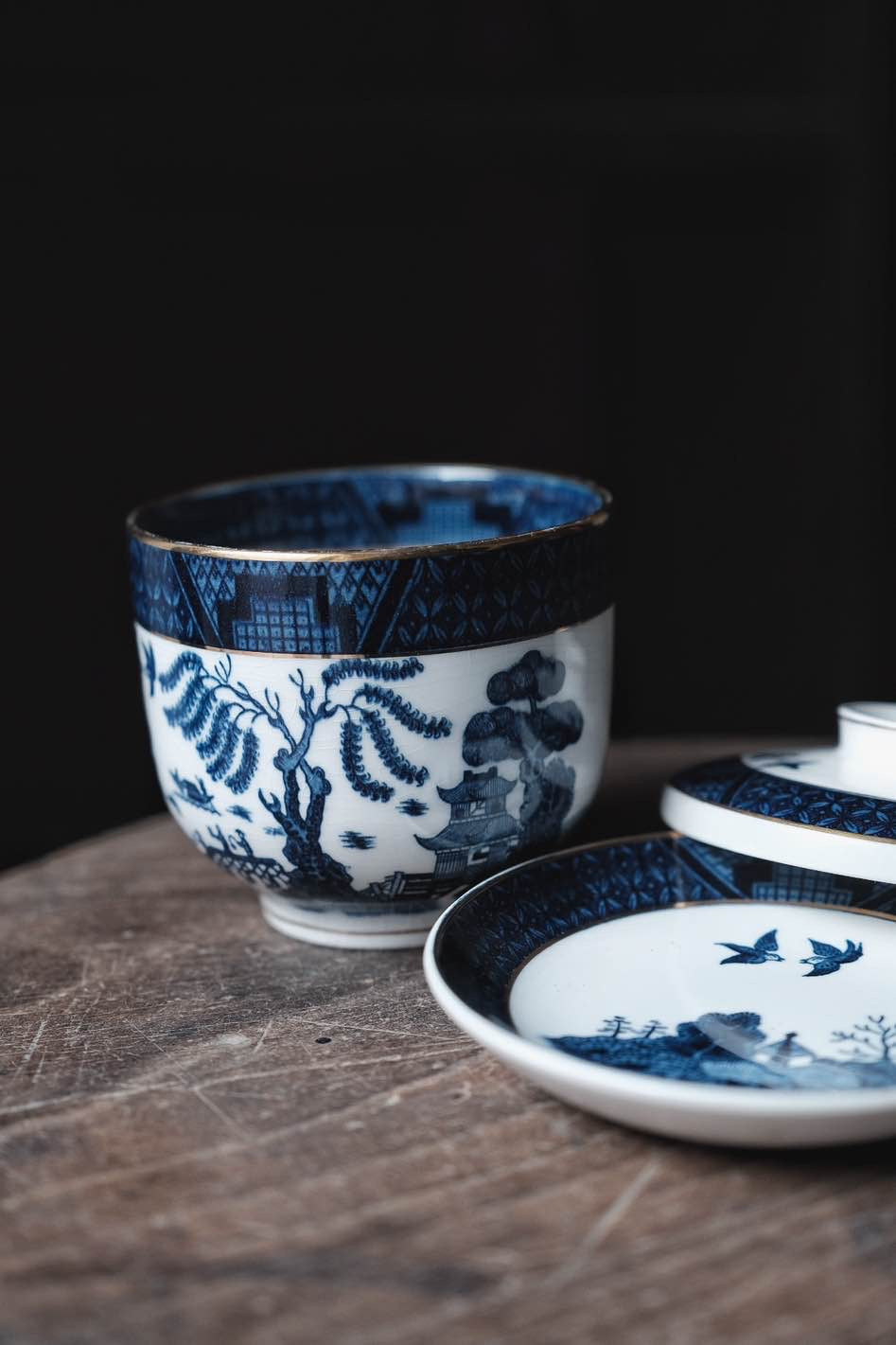 日本製NIKKO骨瓷青花柳樹付染描金三才蓋杯蓋碗(240ml)