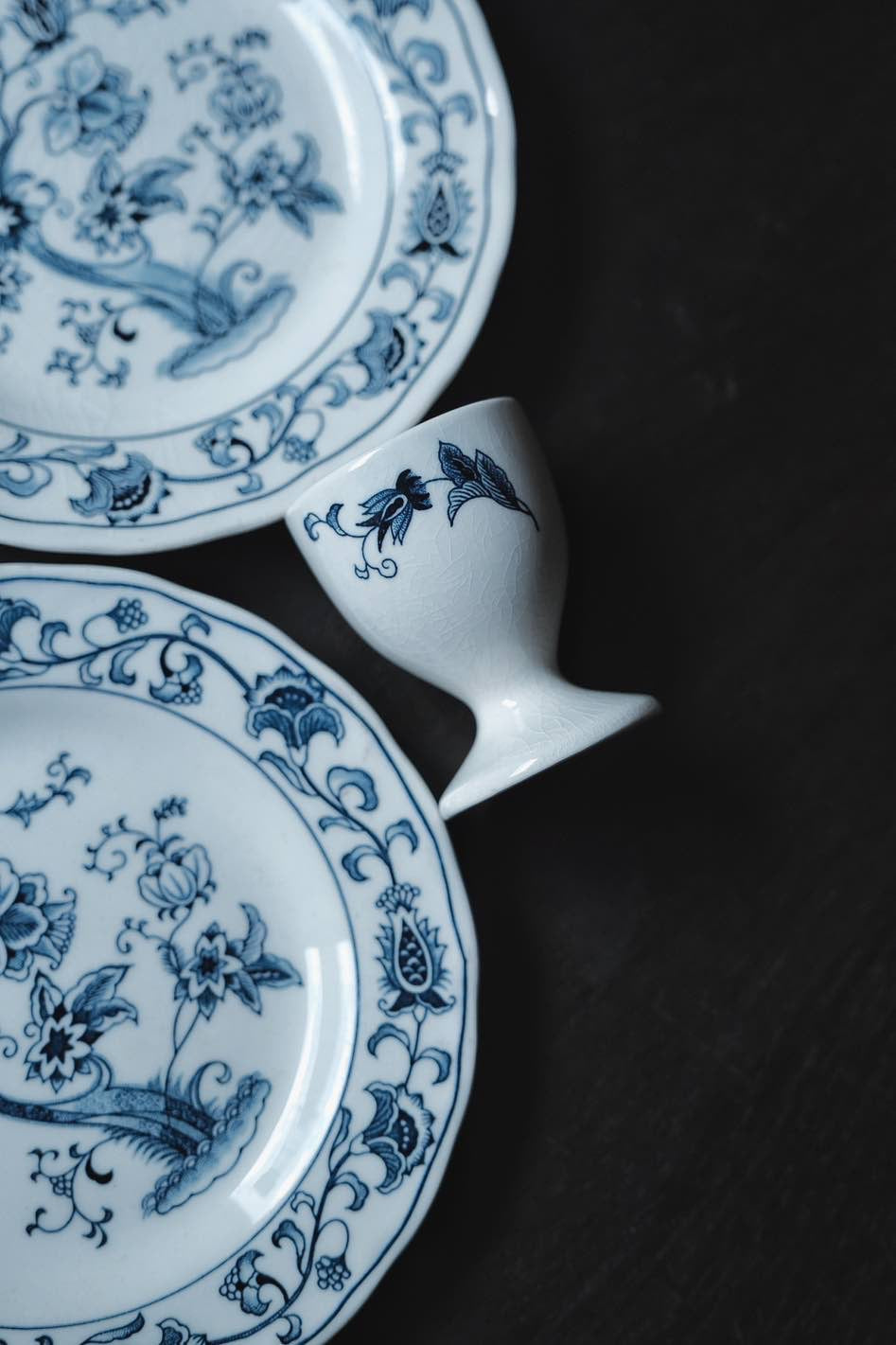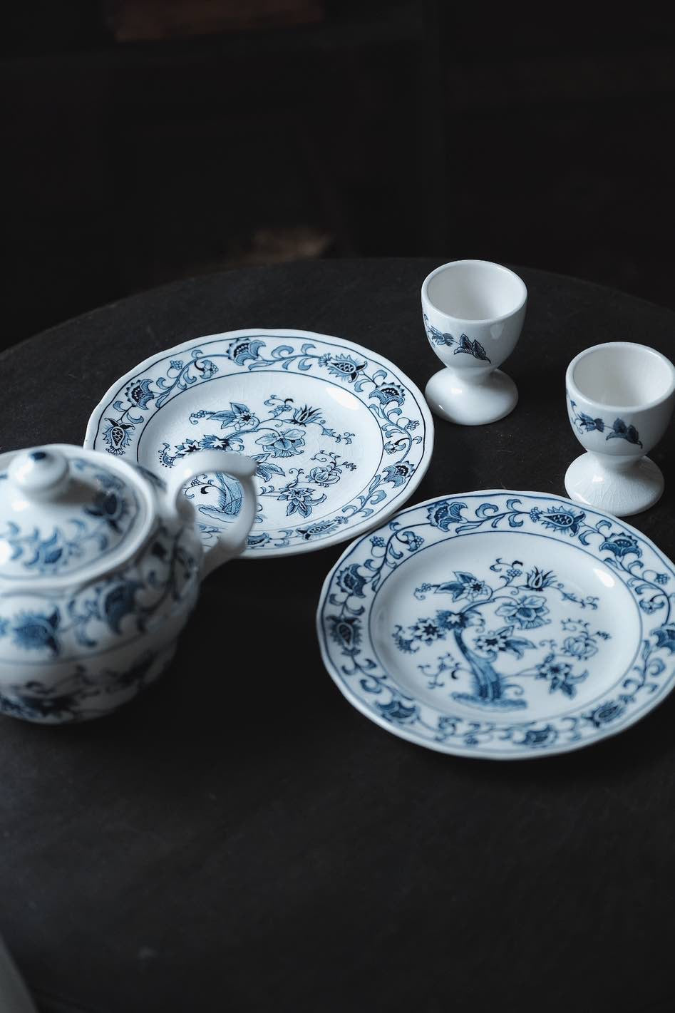 日本製NIKKO骨瓷青花生命之樹餐碟配蛋杯整套