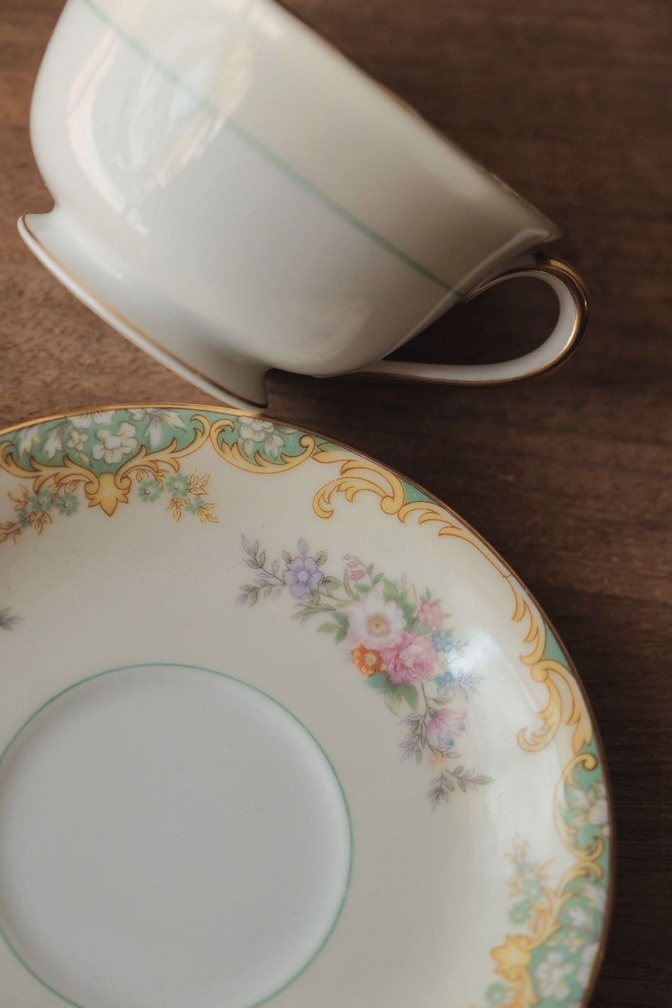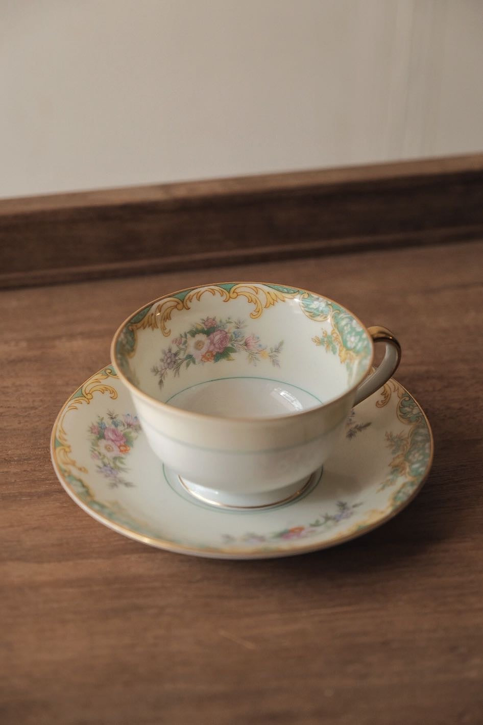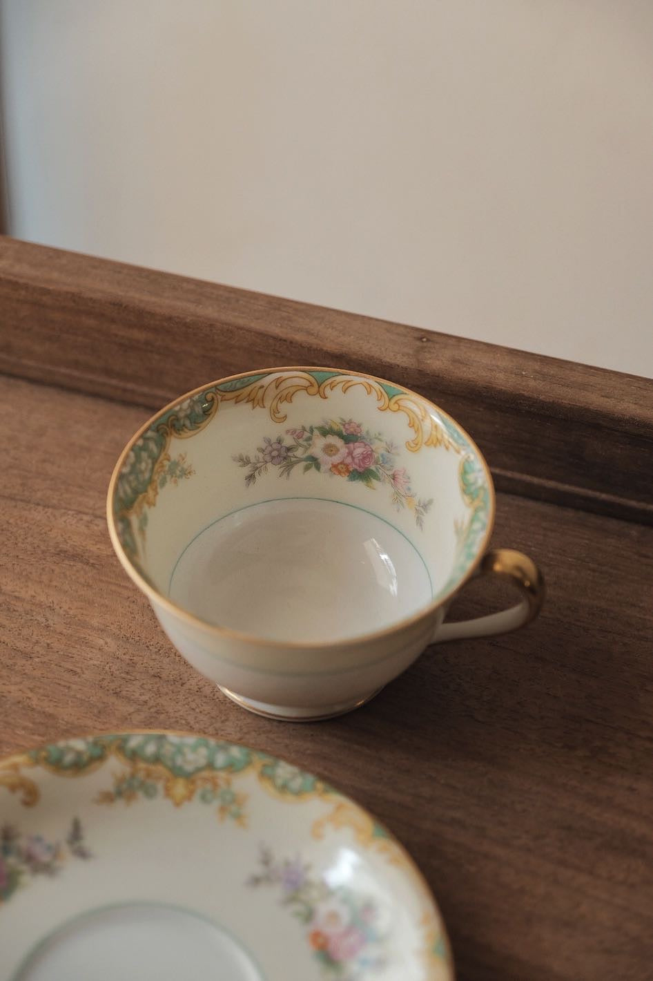 日本製Noritake則武內繪湖水綠描金花咖啡杯