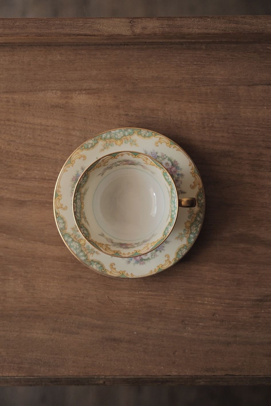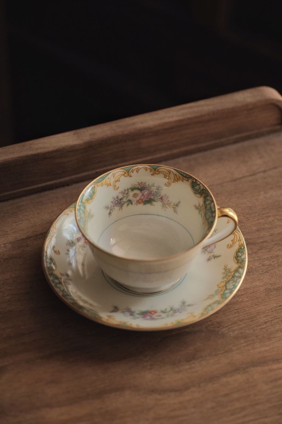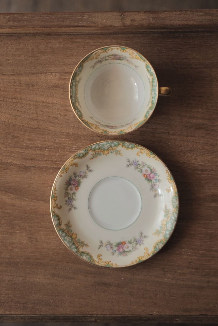日本製Noritake則武內繪湖水綠描金花咖啡杯
