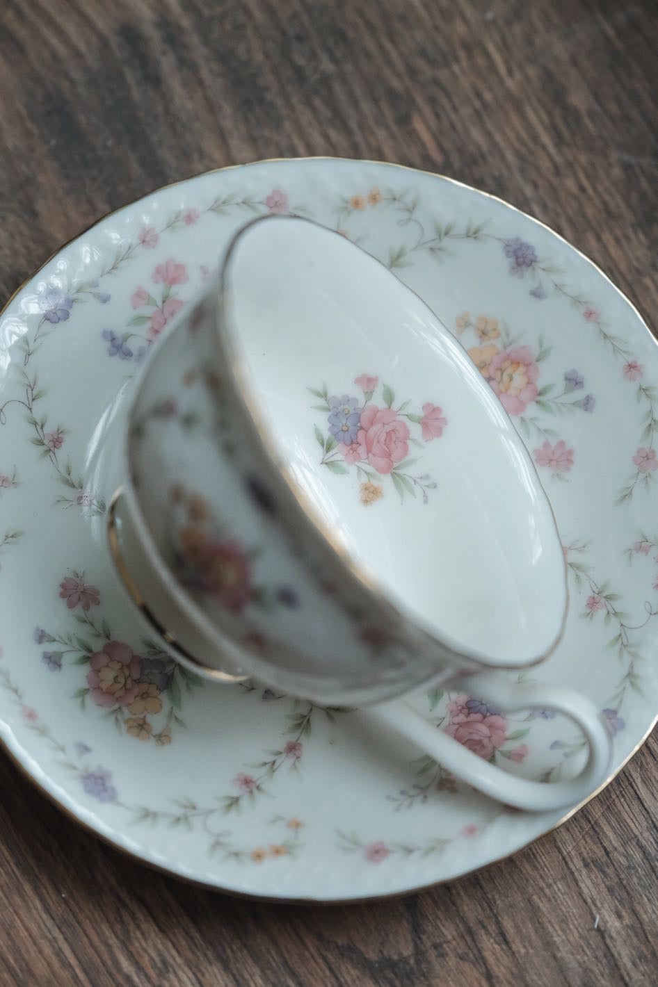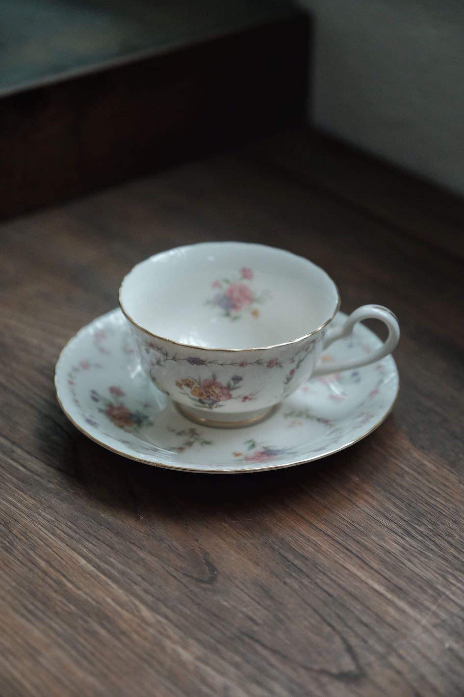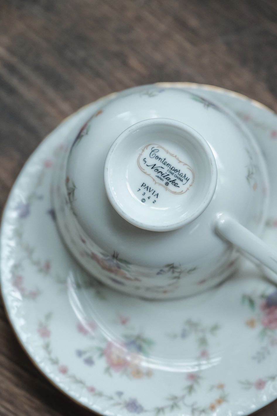 日本製Noritake則武描金花卉圖內繪細瓷杯連碟(180ml)