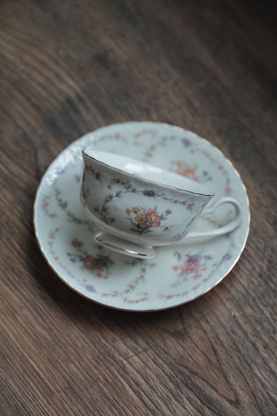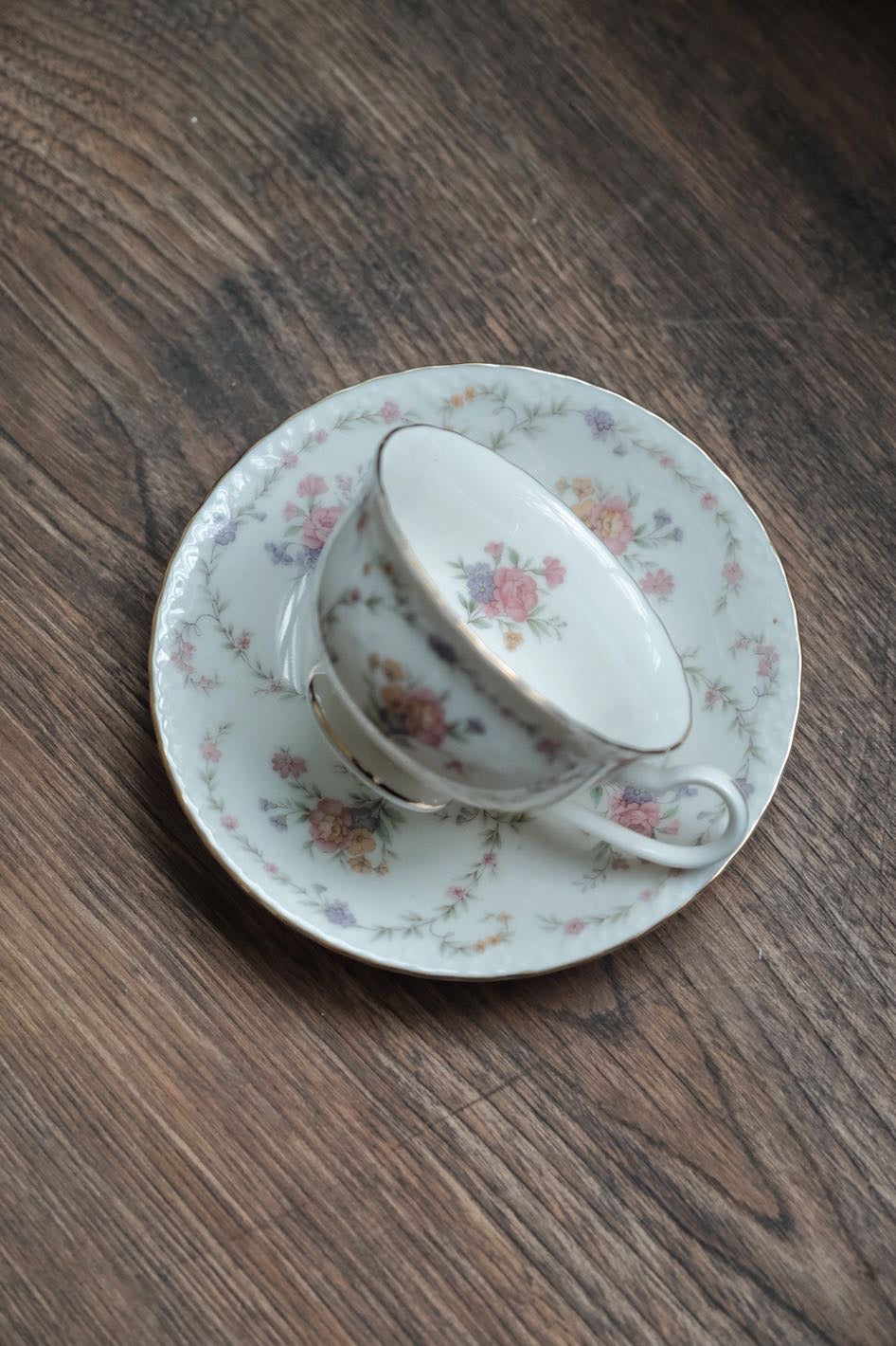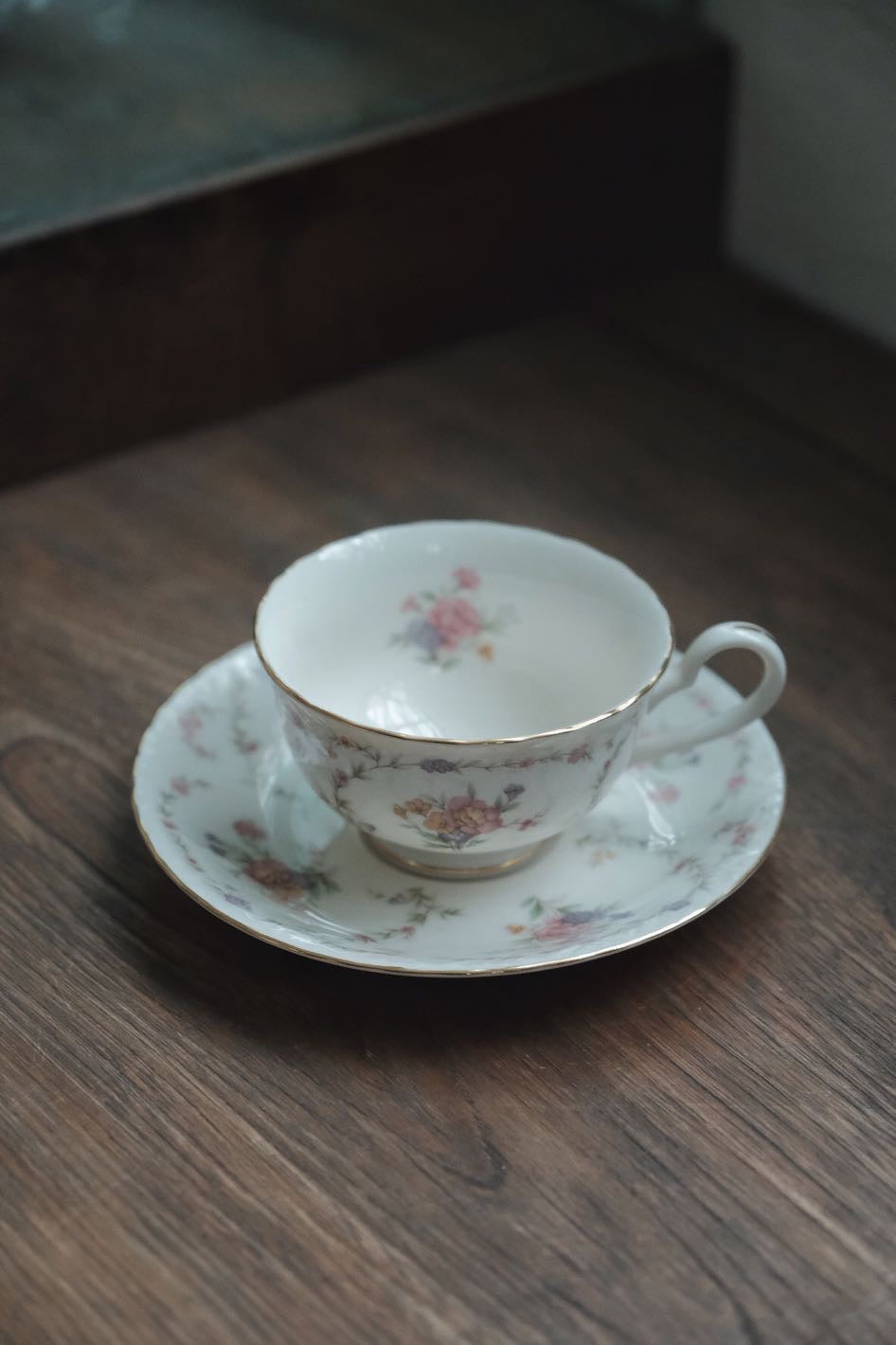 日本製Noritake則武描金花卉圖內繪細瓷杯連碟(180ml)
