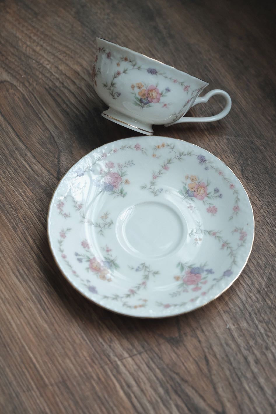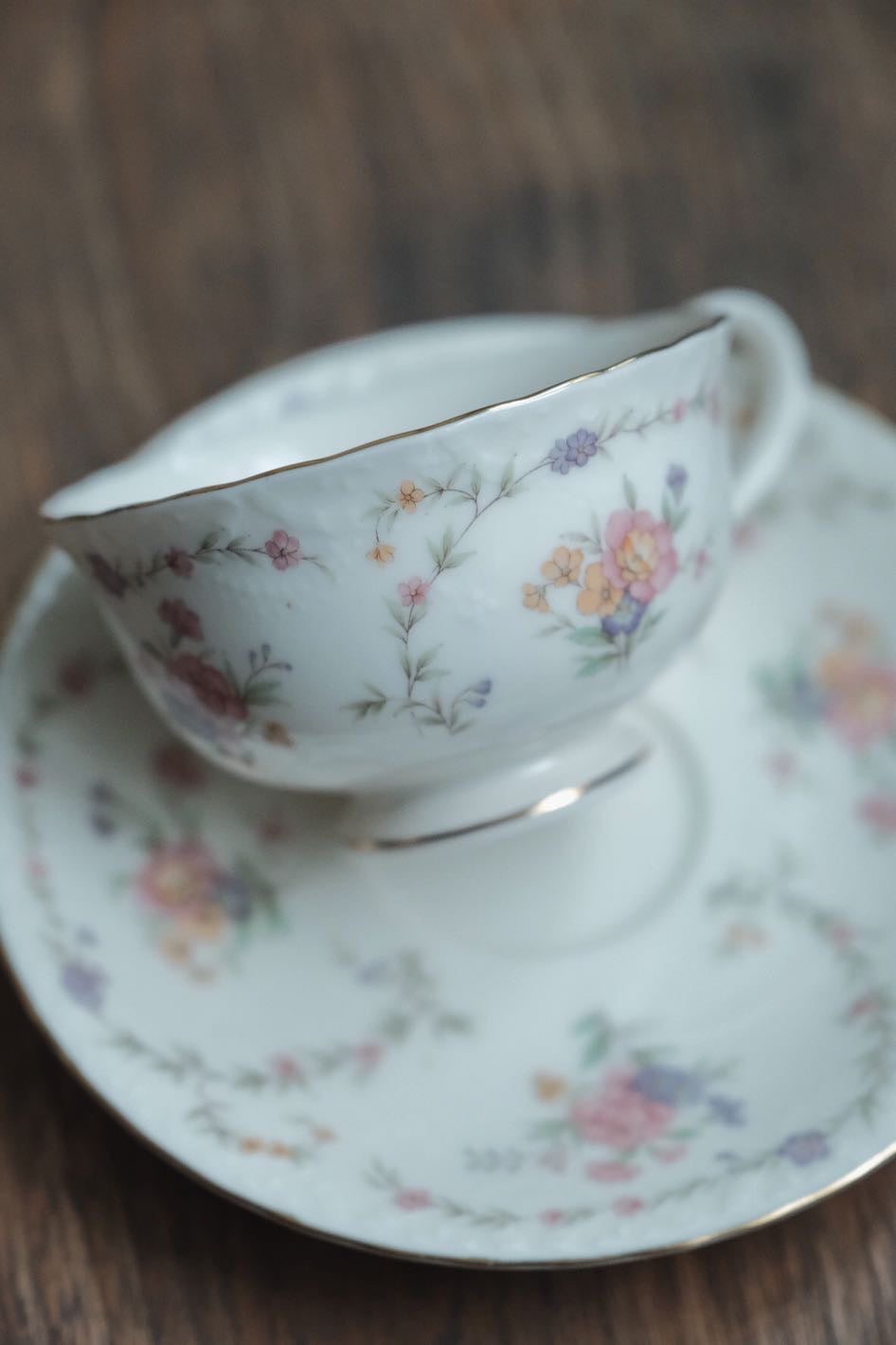 Noritake花卉滿圖,和洋風格,滿花留白,以繁配白,柔和色調,有浮雕紋增立體感