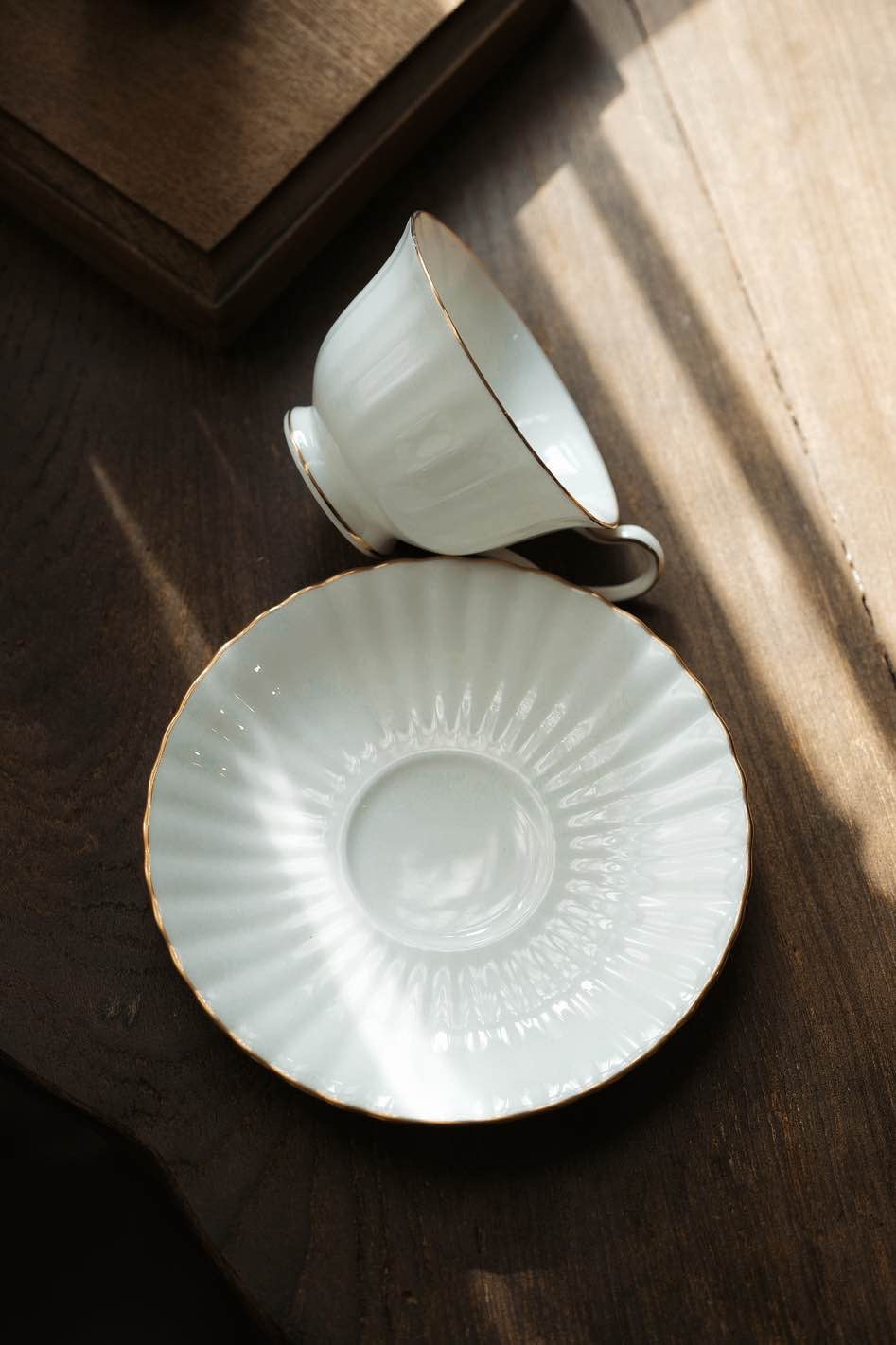 少有立體素白顏色,骨瓷透徹,直間貝殼型杯身,花型碟邊