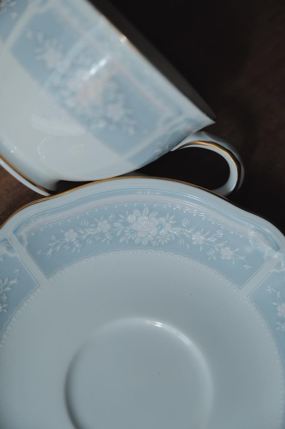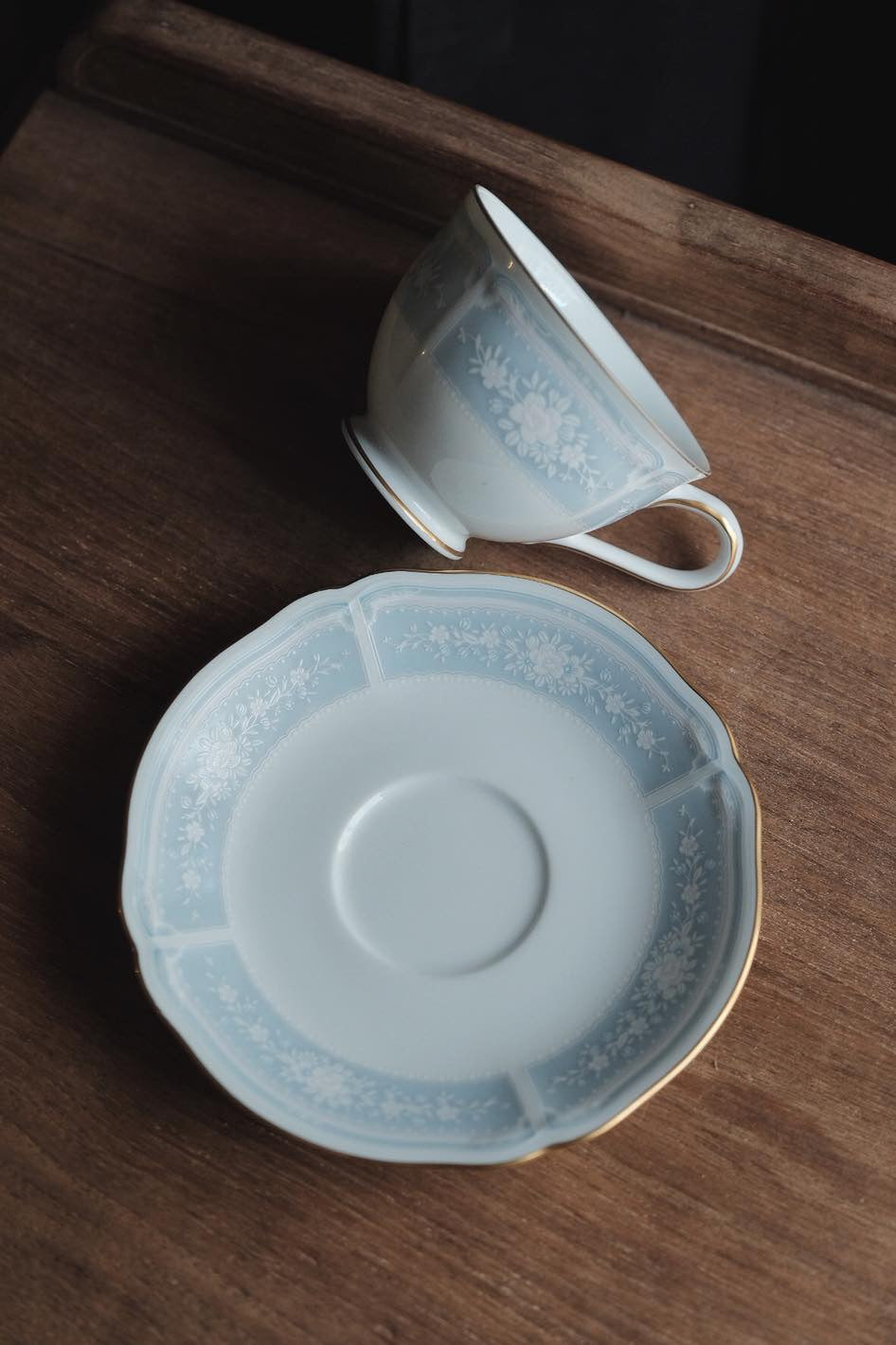 日本製Noritake則武Lacewood浮雕描金婚紗系杯碟(210ml)