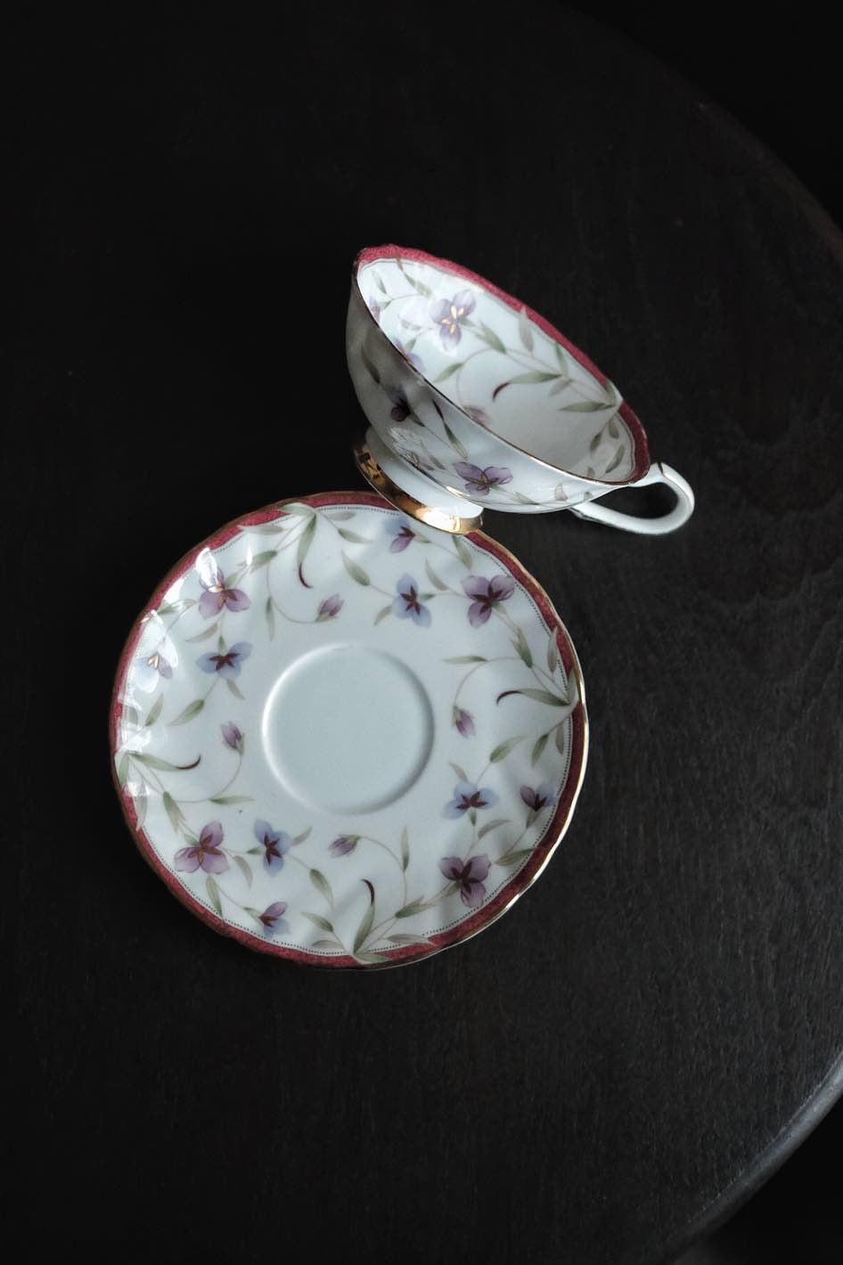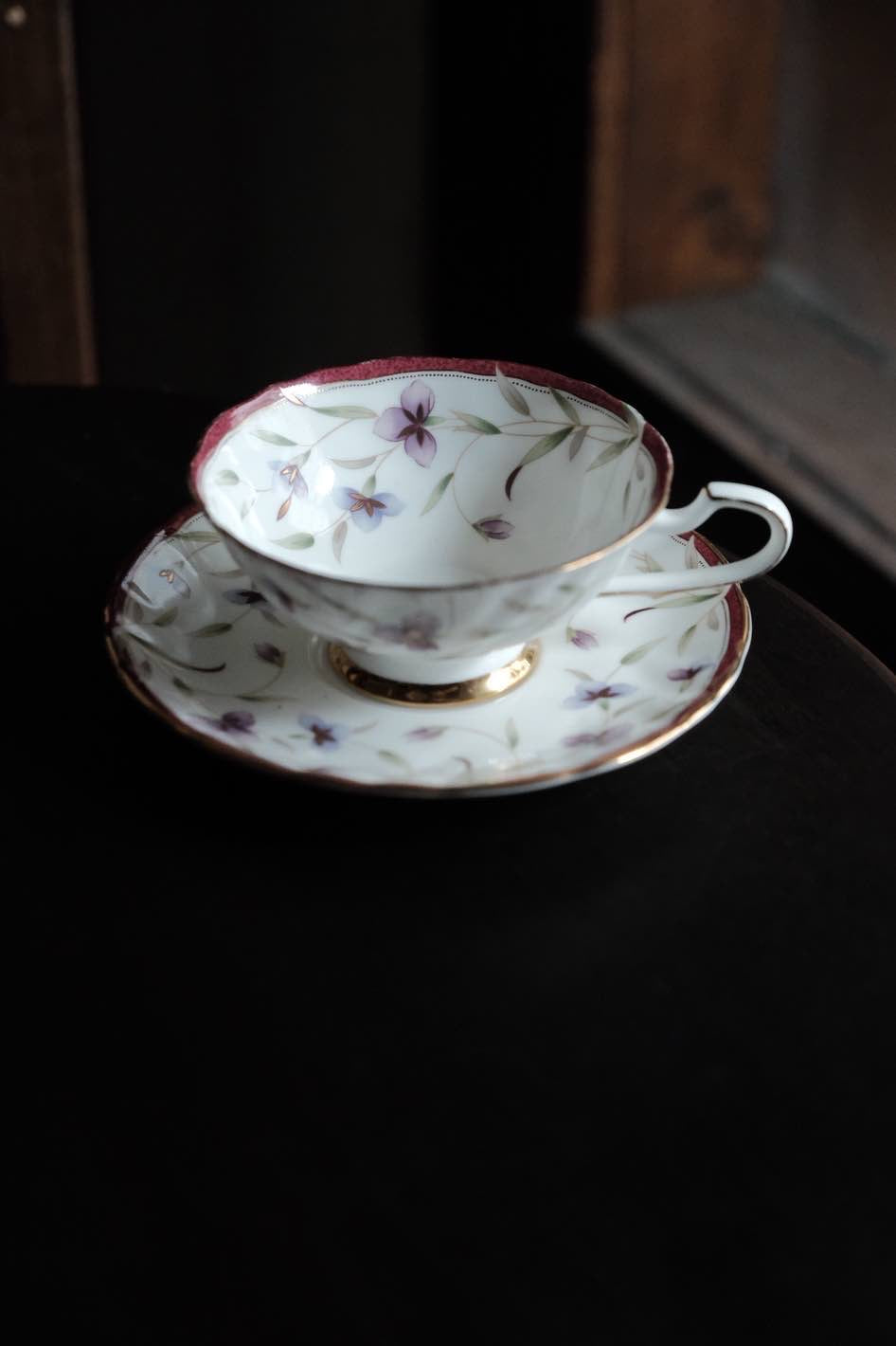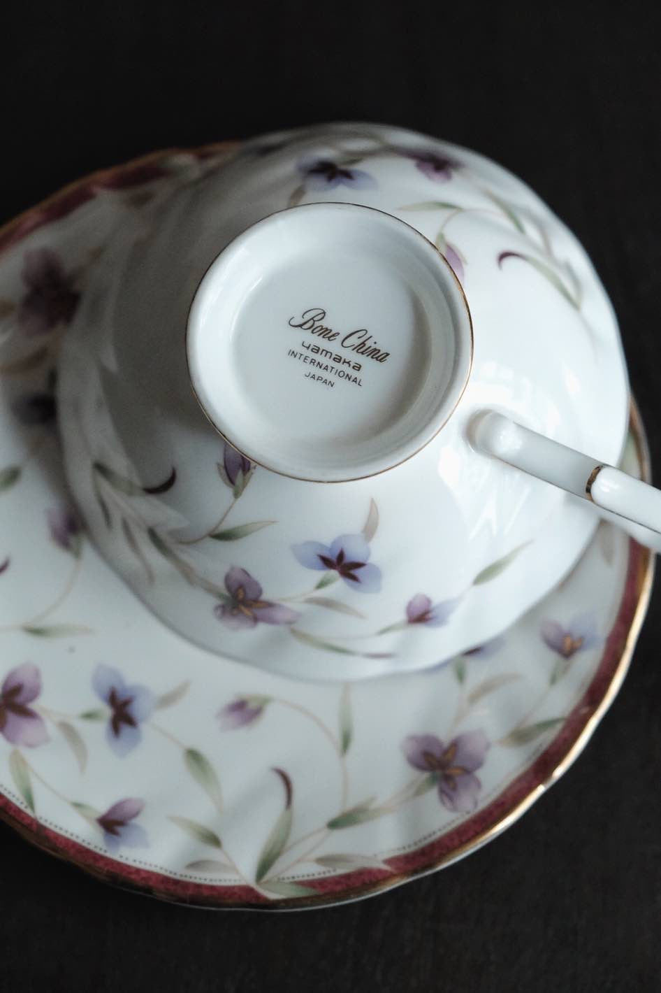 日本製Yamaha 紫紅繪花内繪描金骨瓷咖啡杯紅茶杯(200ml)