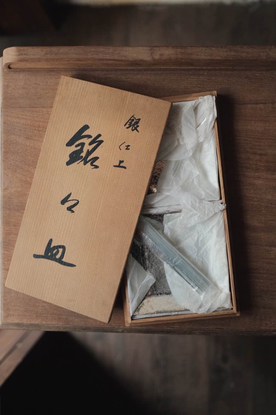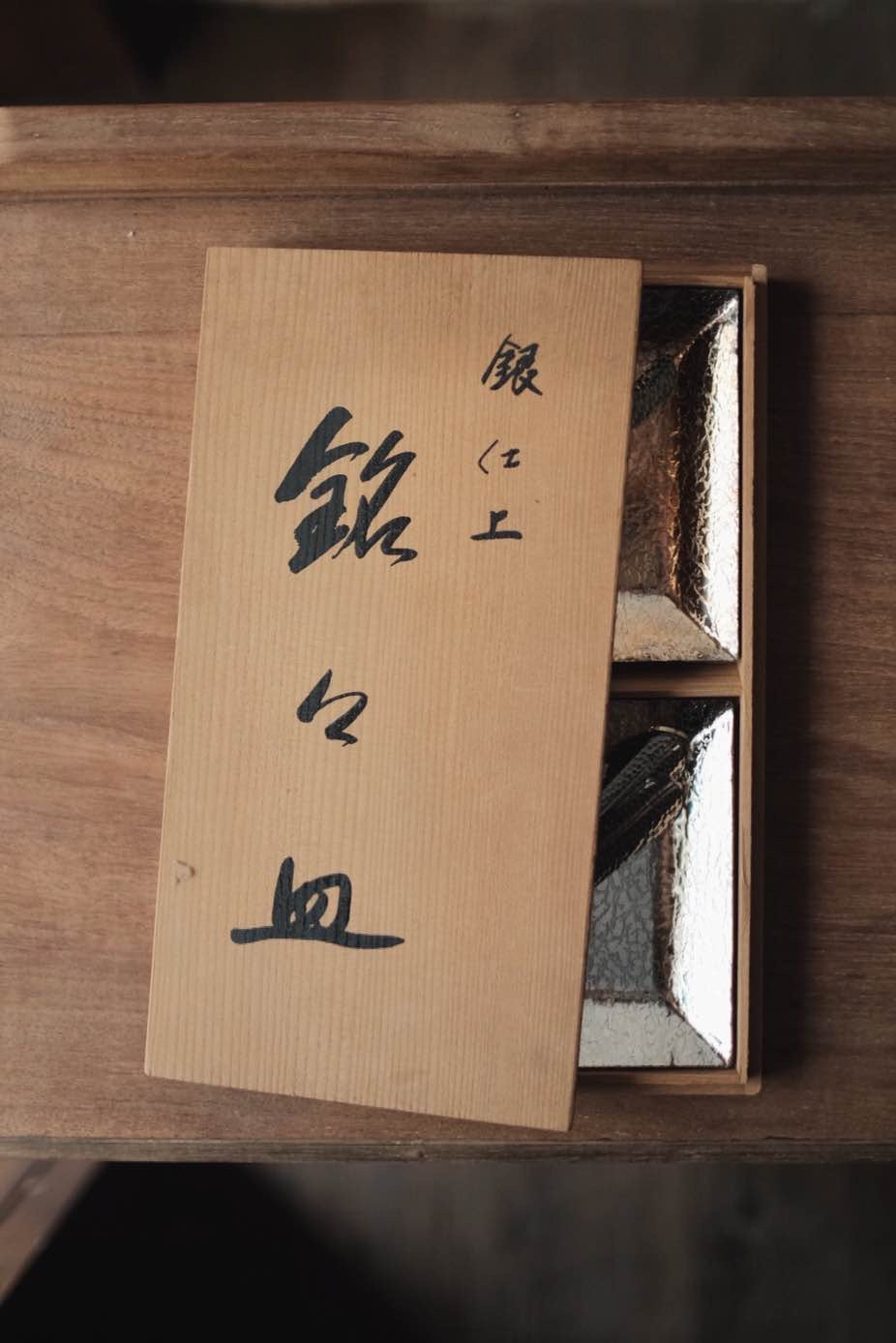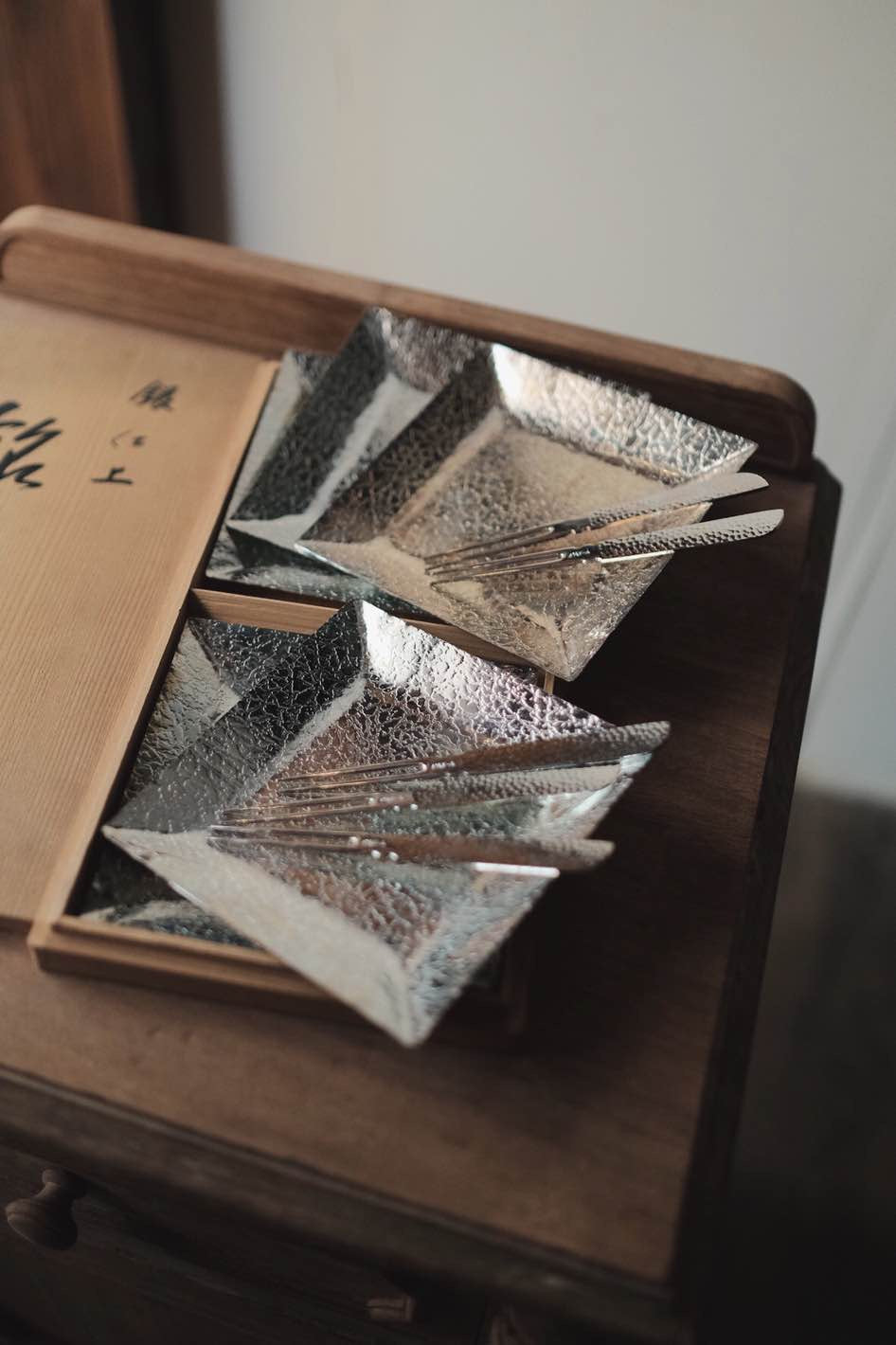 日本銀仕上點心碟餐叉(五客)連原木盒