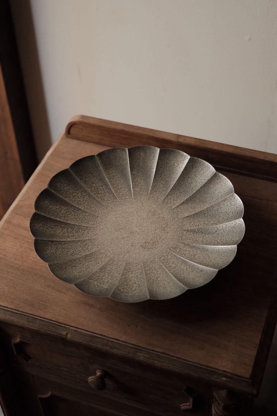 葵口盛器,表面有氧化痕跡,無傷大雅,盤上放上生果能提升家中氛圍。