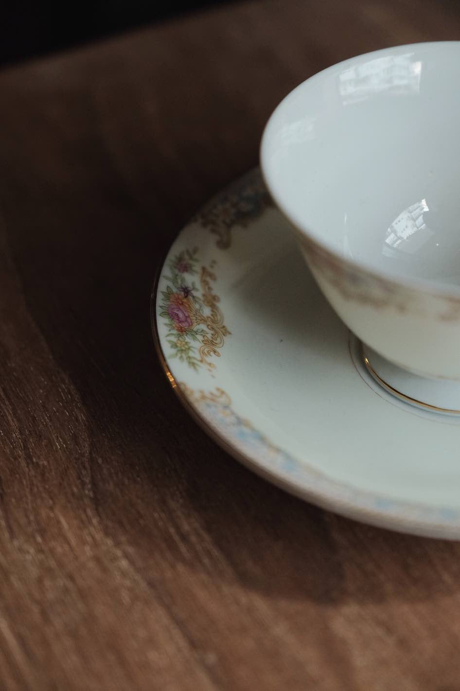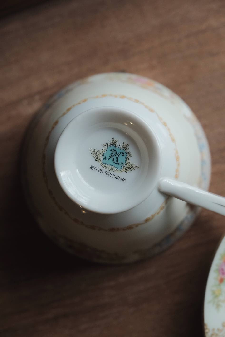 洋風玫瑰唐草花紋加上奶油的色感,低調溫柔的典雅。 舊品牌底標。