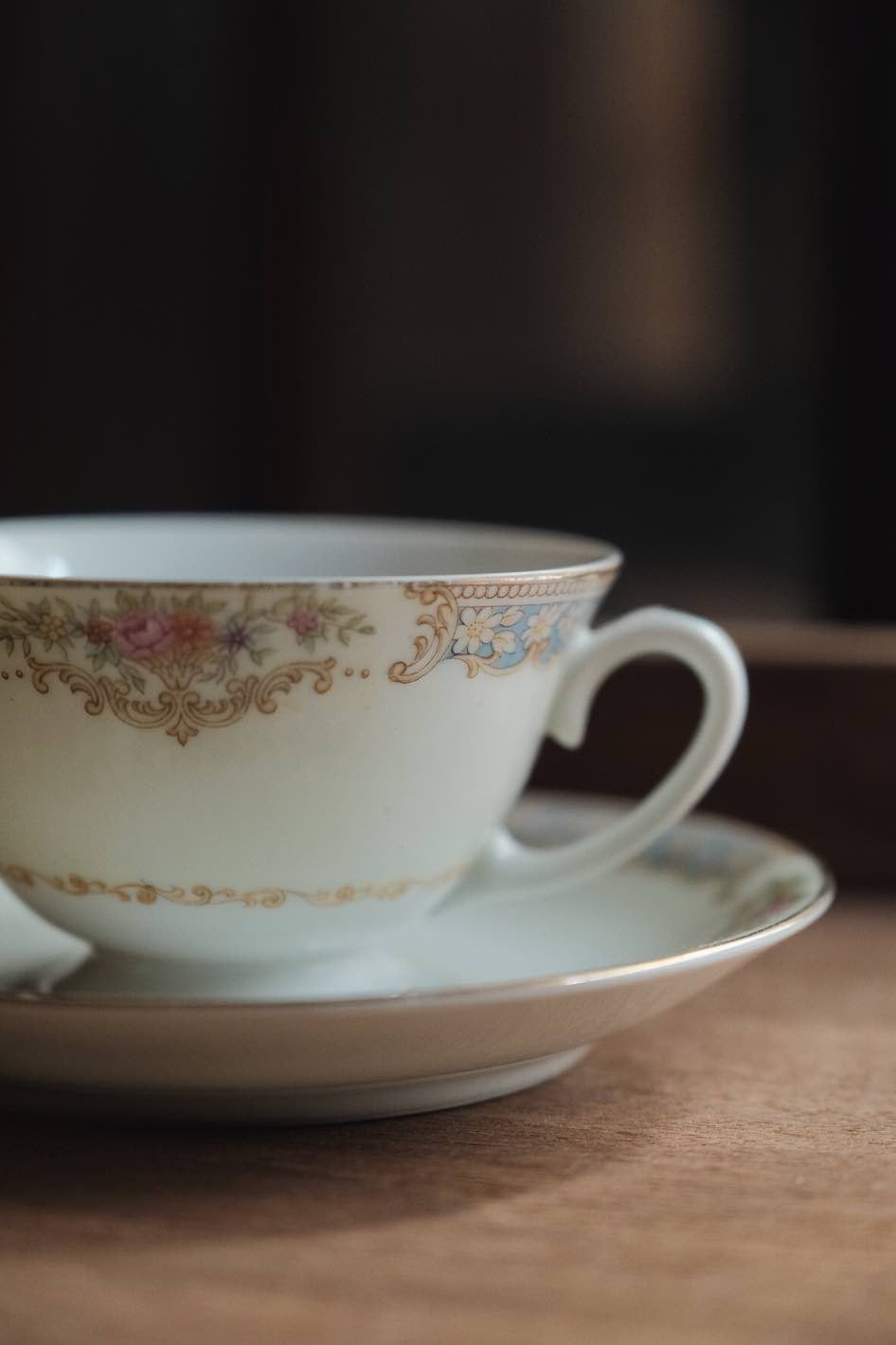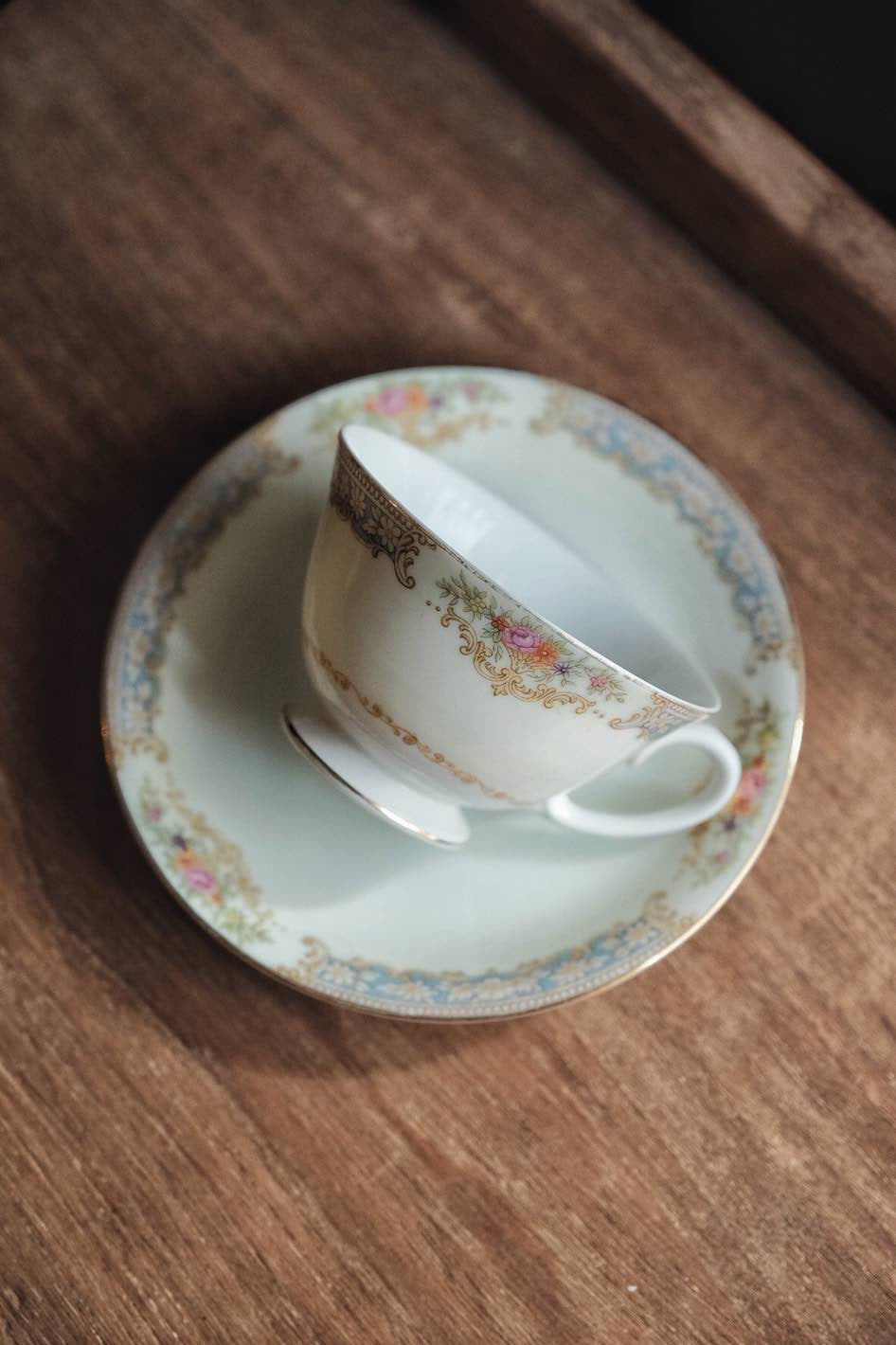 日本Noritake則武RC舊標奶油彩玫瑰花唐草描金茶杯(170ml)