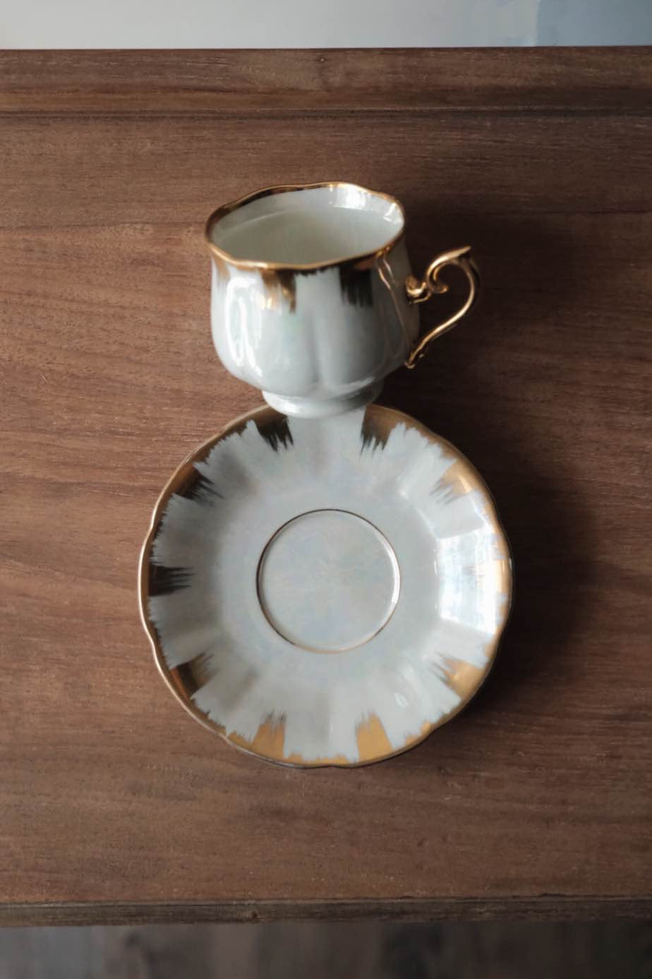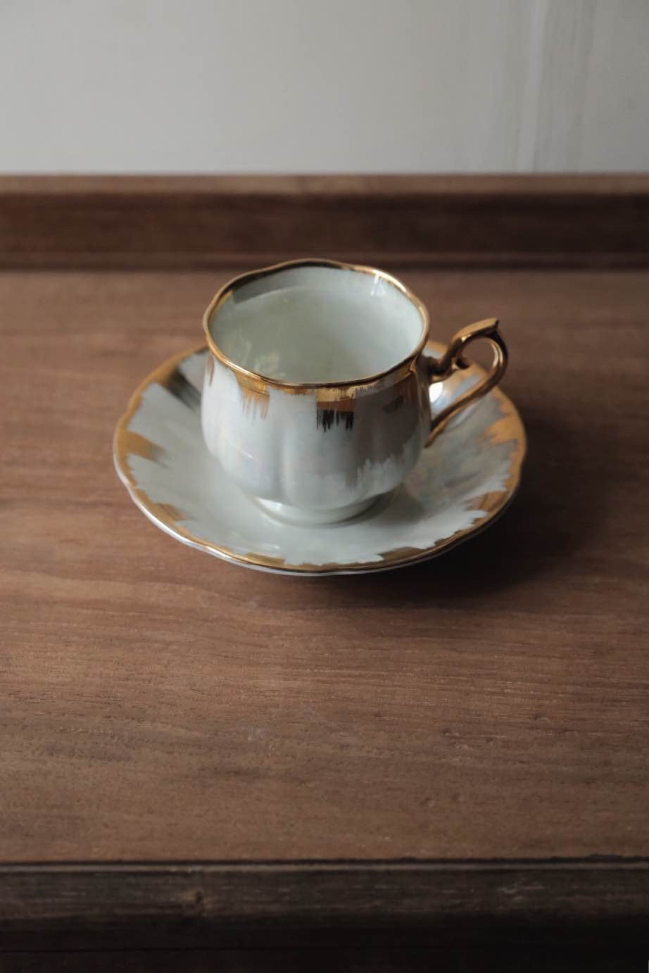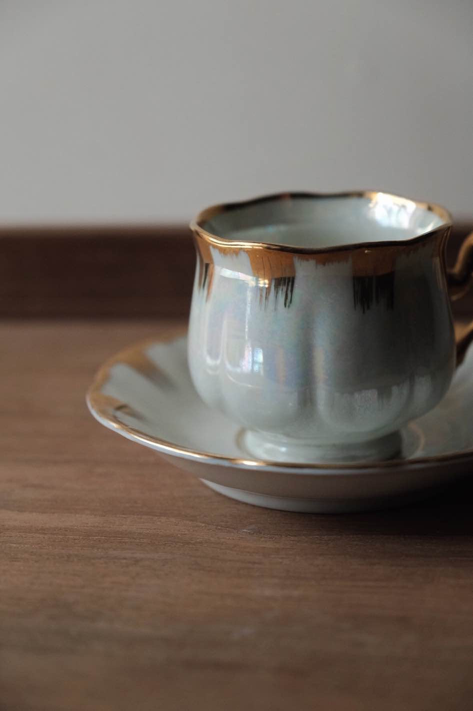 咖啡杯把手及杯口套有杯碟有重繪描金,