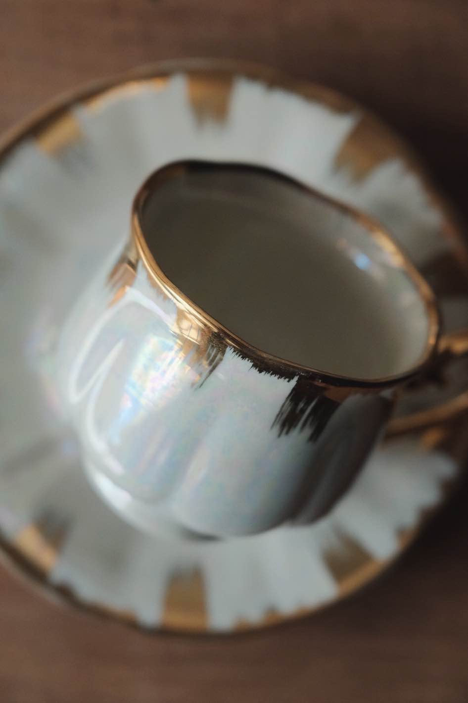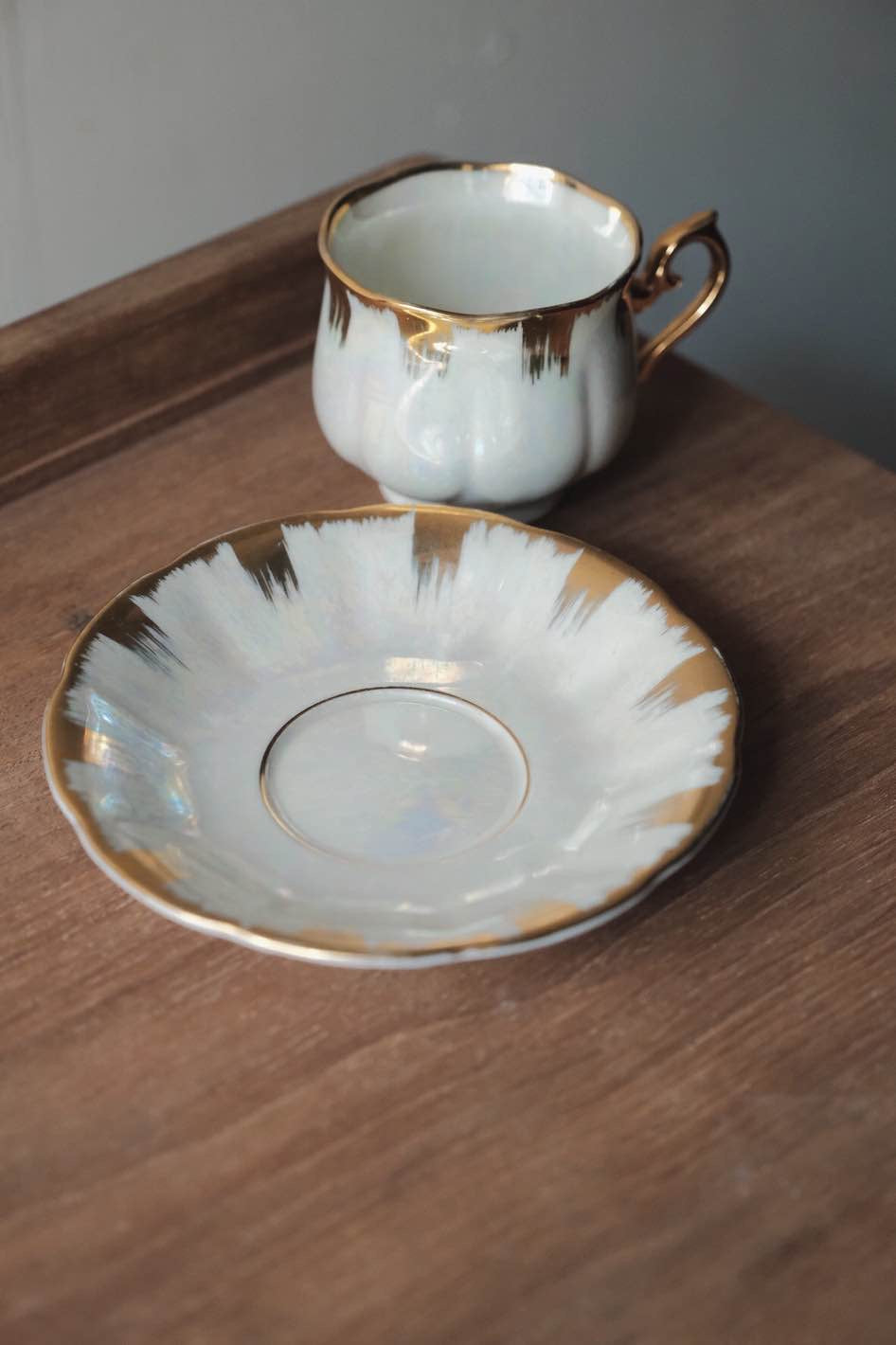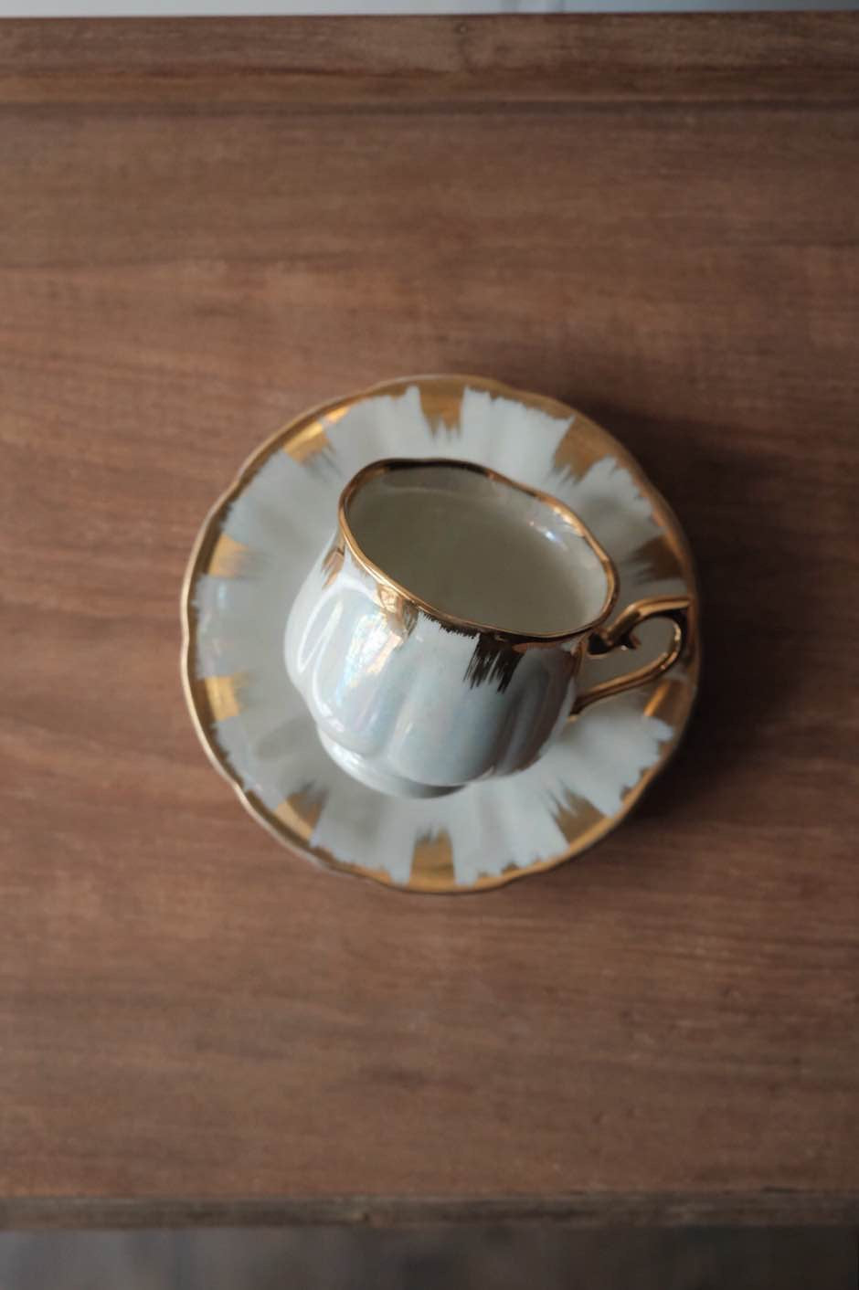 咖啡杯把手及杯口套有杯碟有重繪描金,