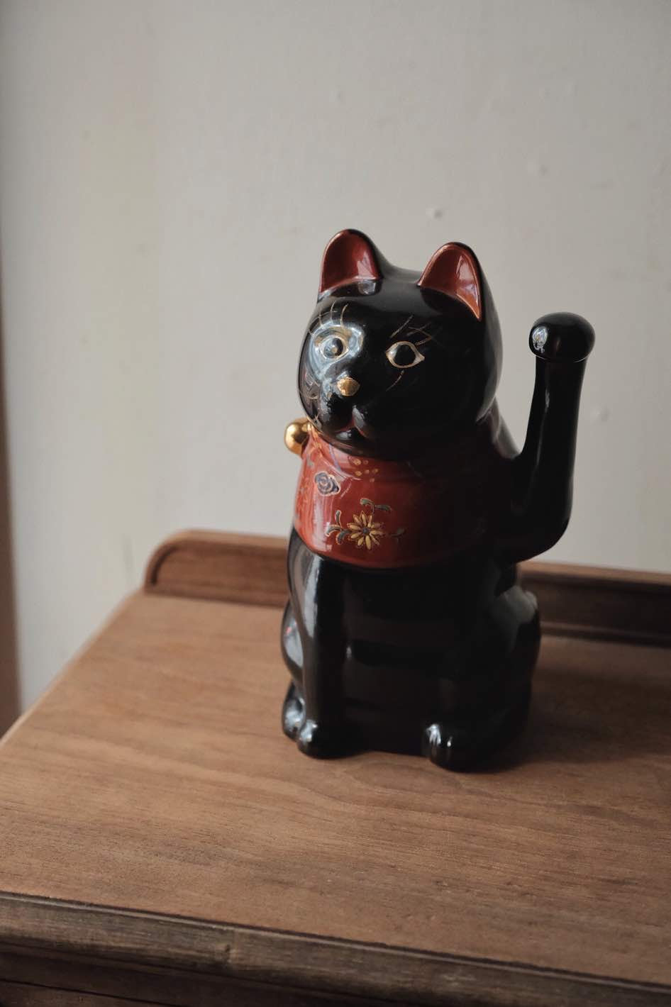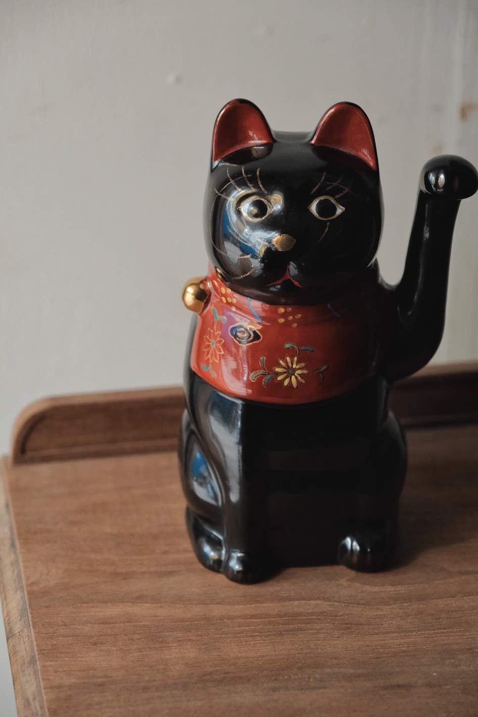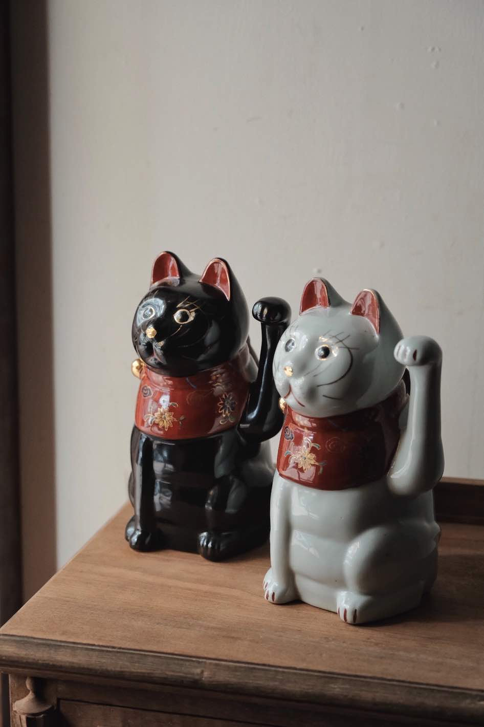 全手繪陶瓷製,滿滿和風,古瓷質感,舊招財貓會較有昭和感,黑白色各一