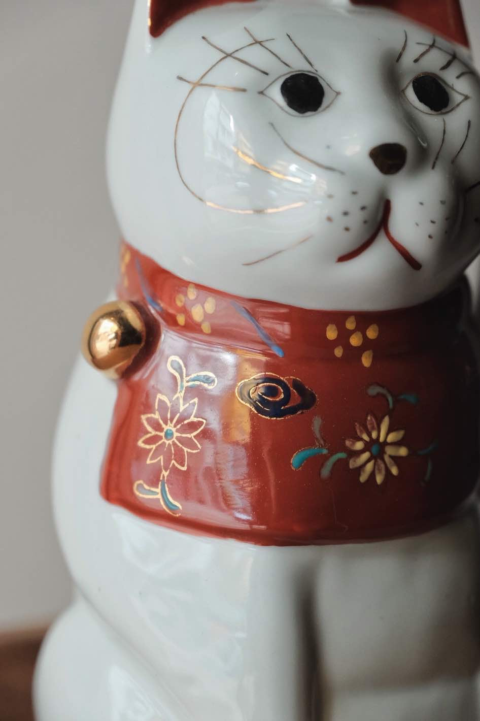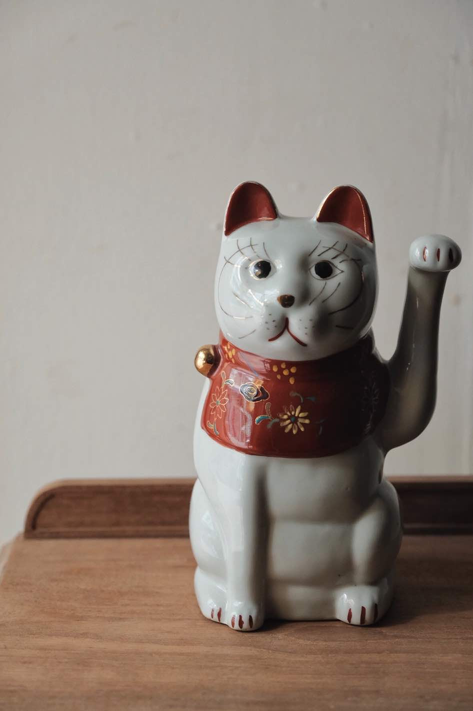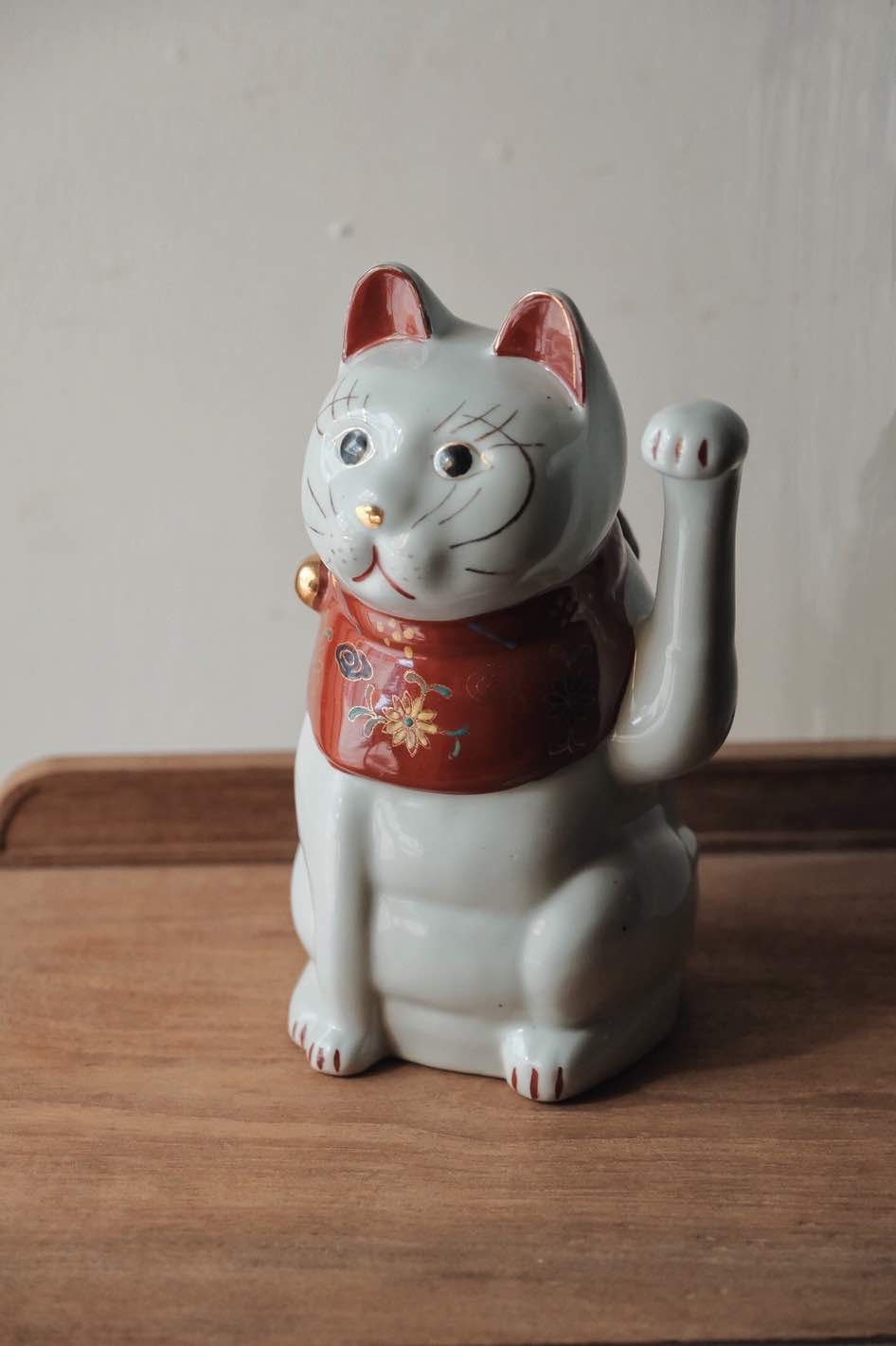 全手繪陶瓷製,滿滿和風,古瓷質感,舊招財貓會較有昭和感,黑白色各一