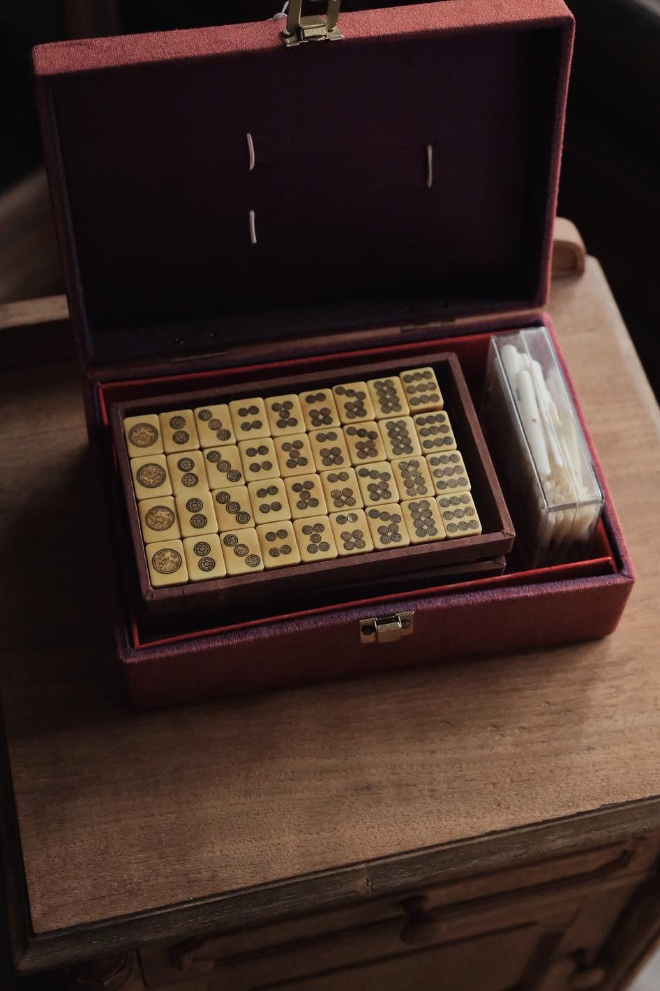 (特惠)日本昭和手雕行書字體小型竹背麻雀連盒
