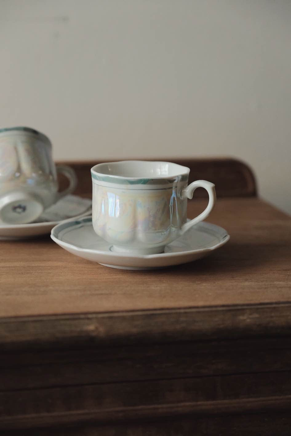 日本製·湖水綠貝殼釉骨瓷咖啡杯
