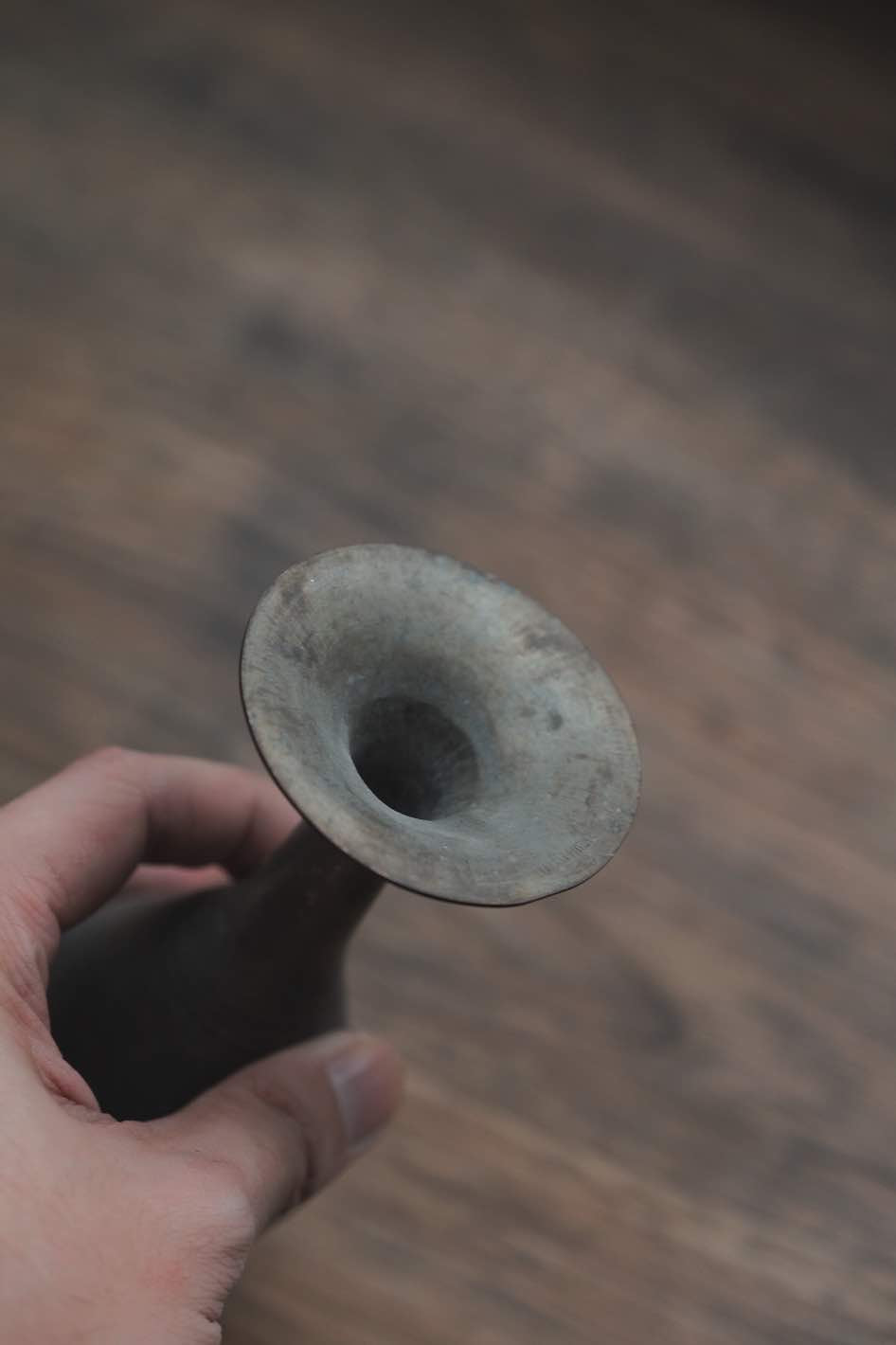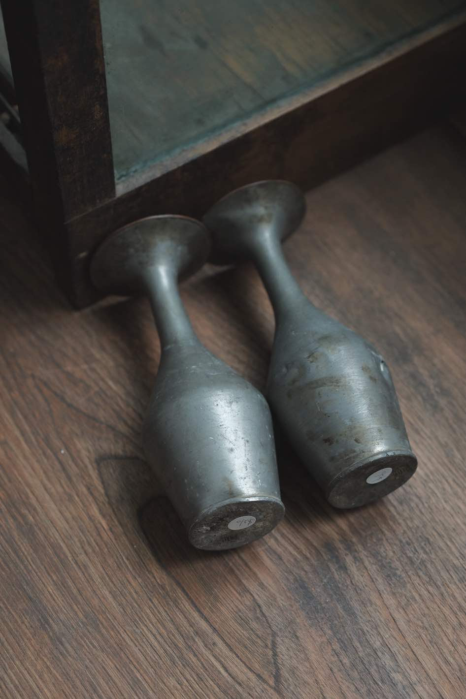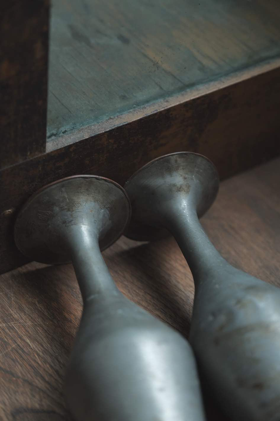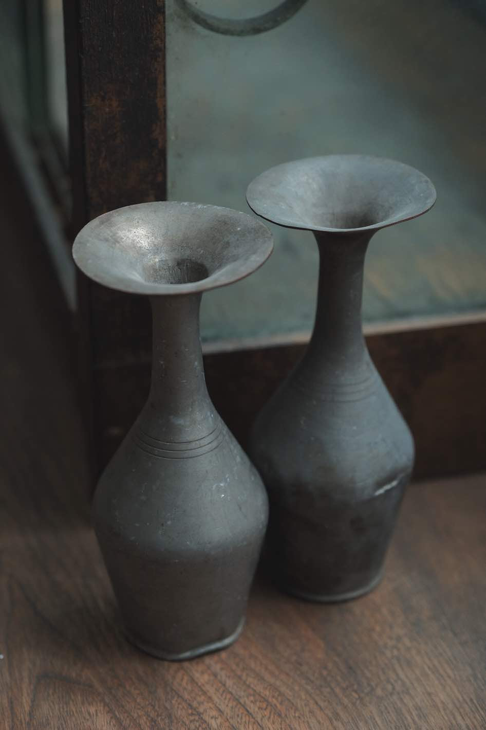配搭單支紅花,錫金屬氧化後的成色古樸有層次,非常適合用作餐枱上的裝飾花瓶。